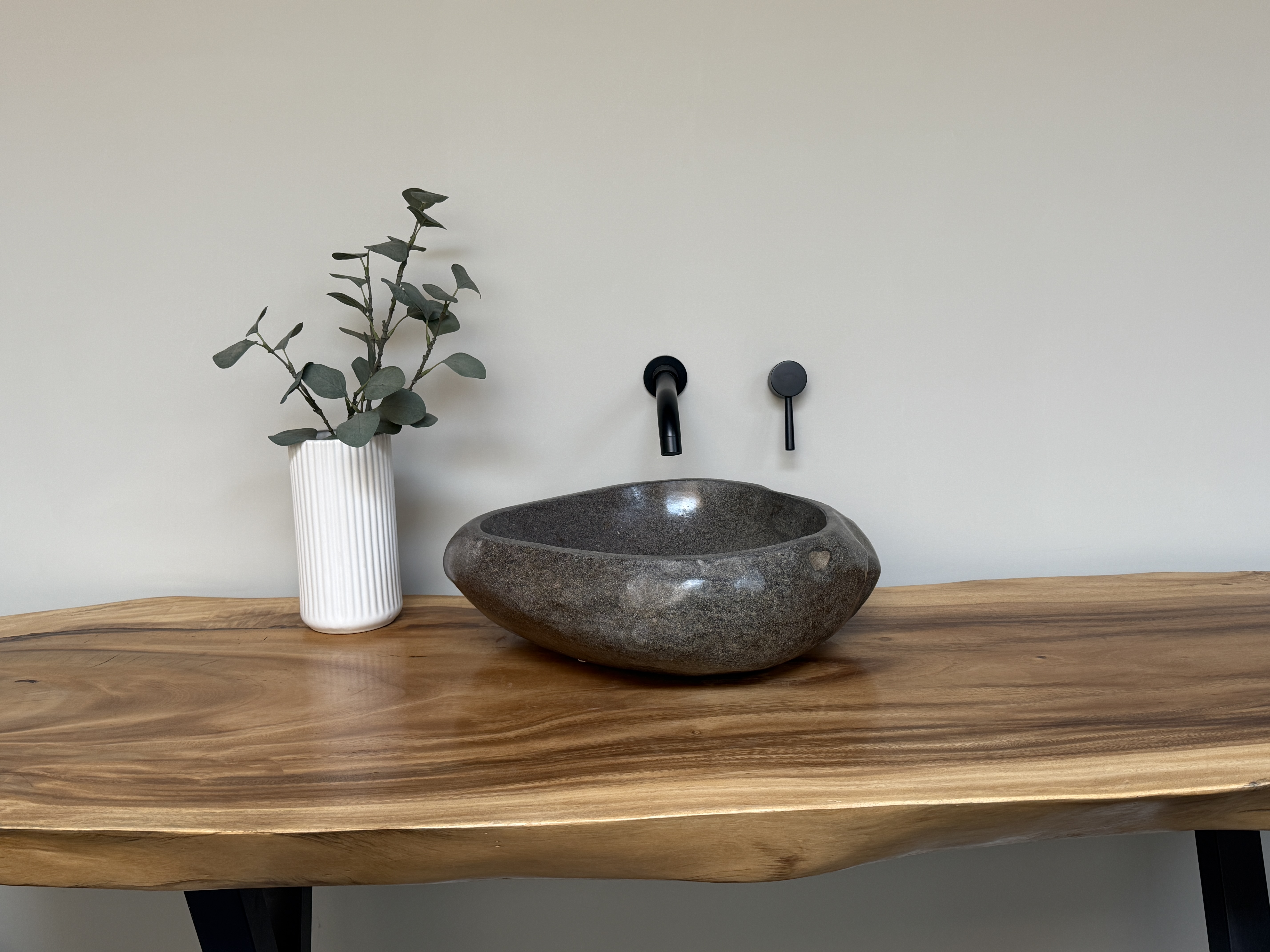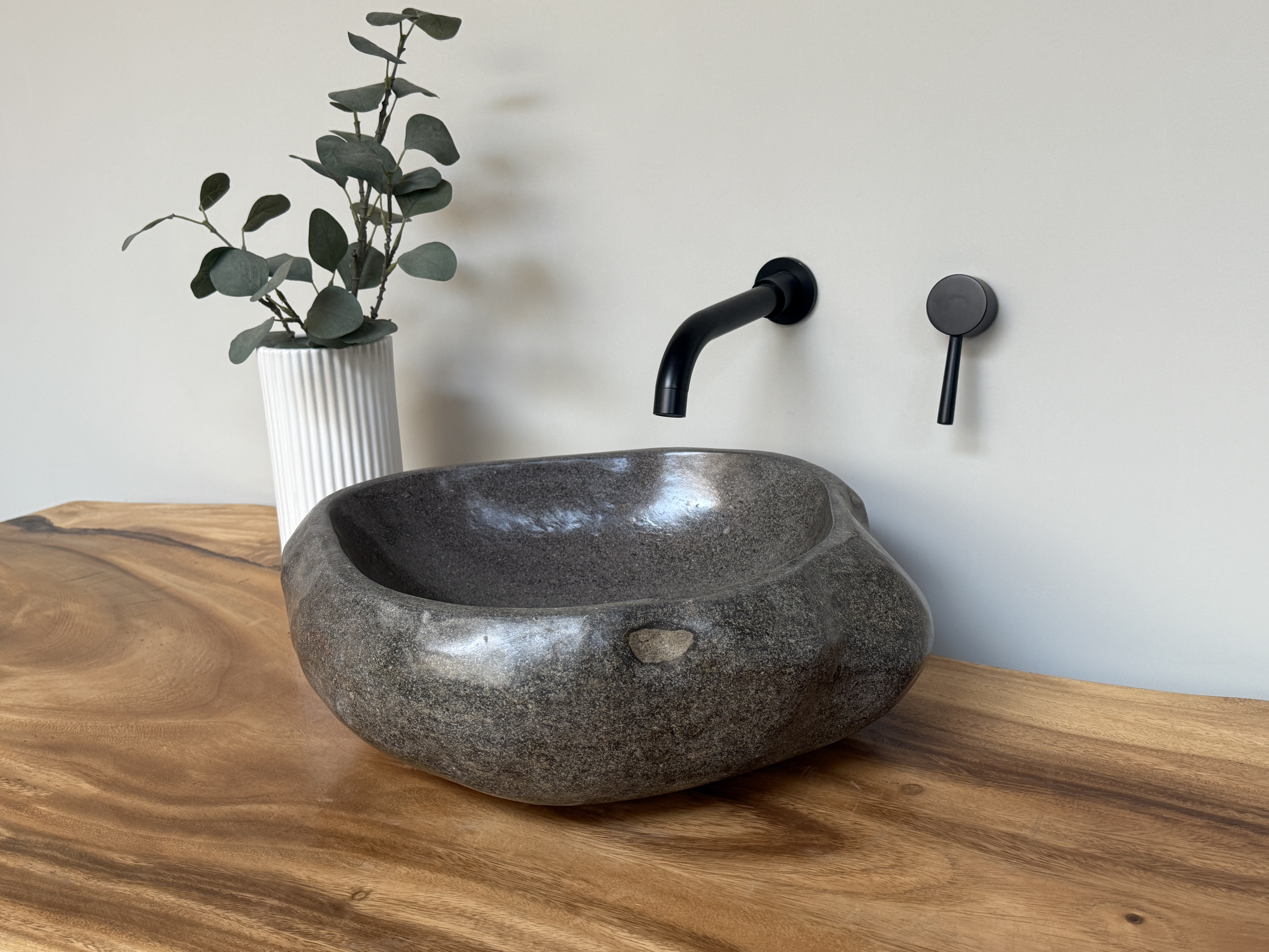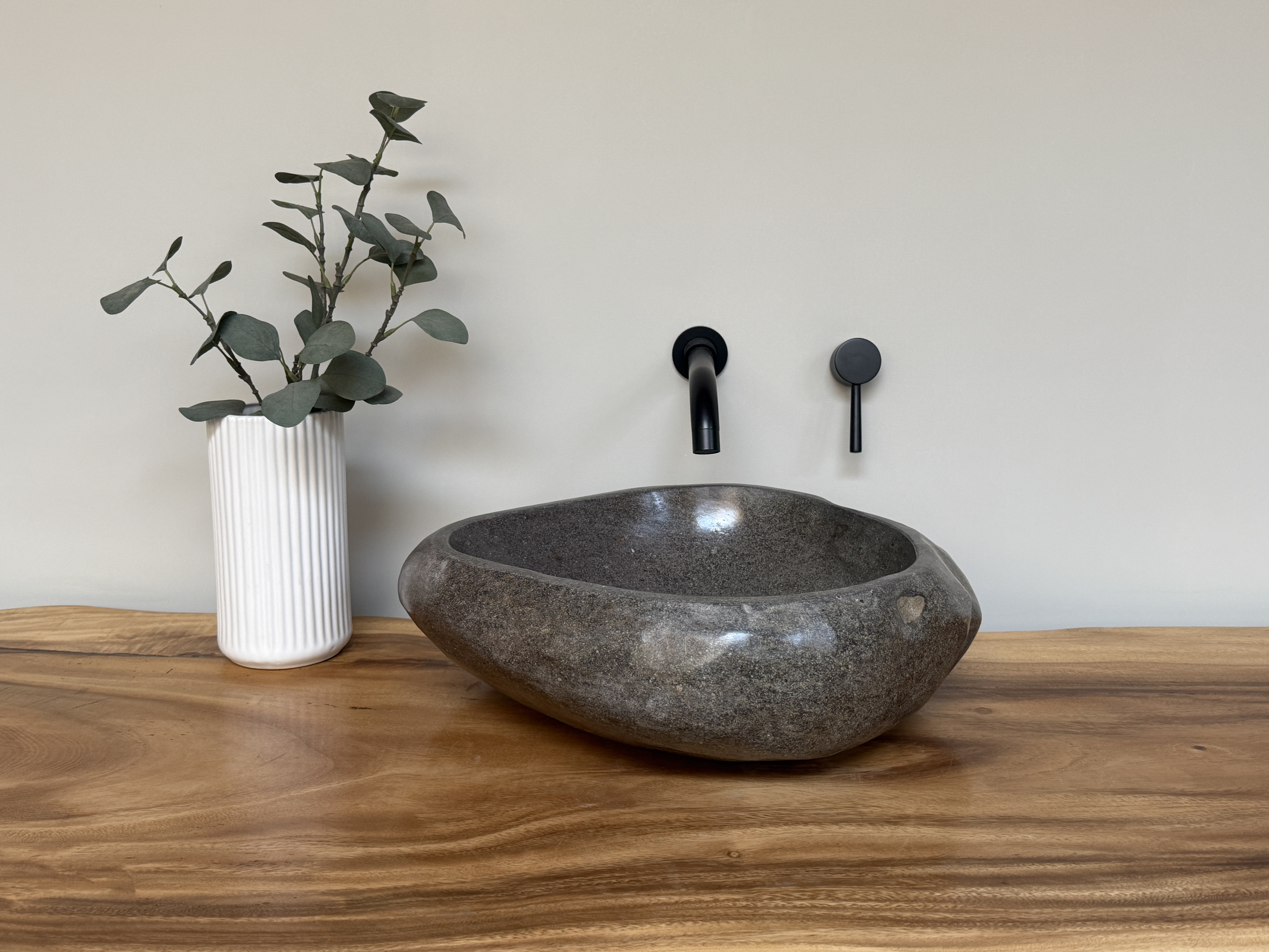 Nach einem Jahrzehnt langen Weg durch die Flüsse Indonesiens, rund gewaschen von der Strömung des Wassers, kommt es nun direkt zu dir in dein Badezimmer. Unterschiede in der Form, Farbgebung, Schattierung und Struktur sind Zeichen für die Individualität eines Waschbeckens aus Flussstein.