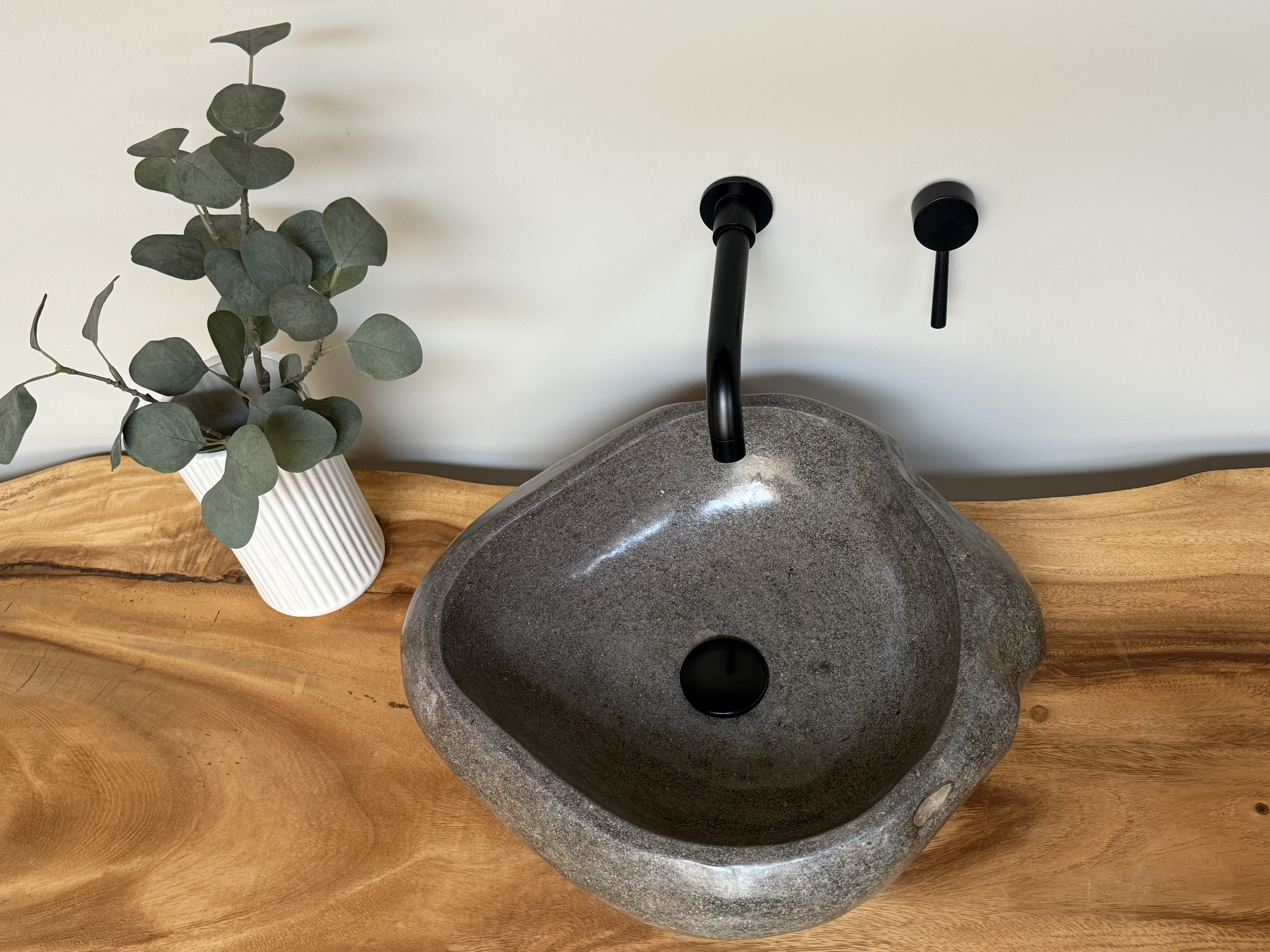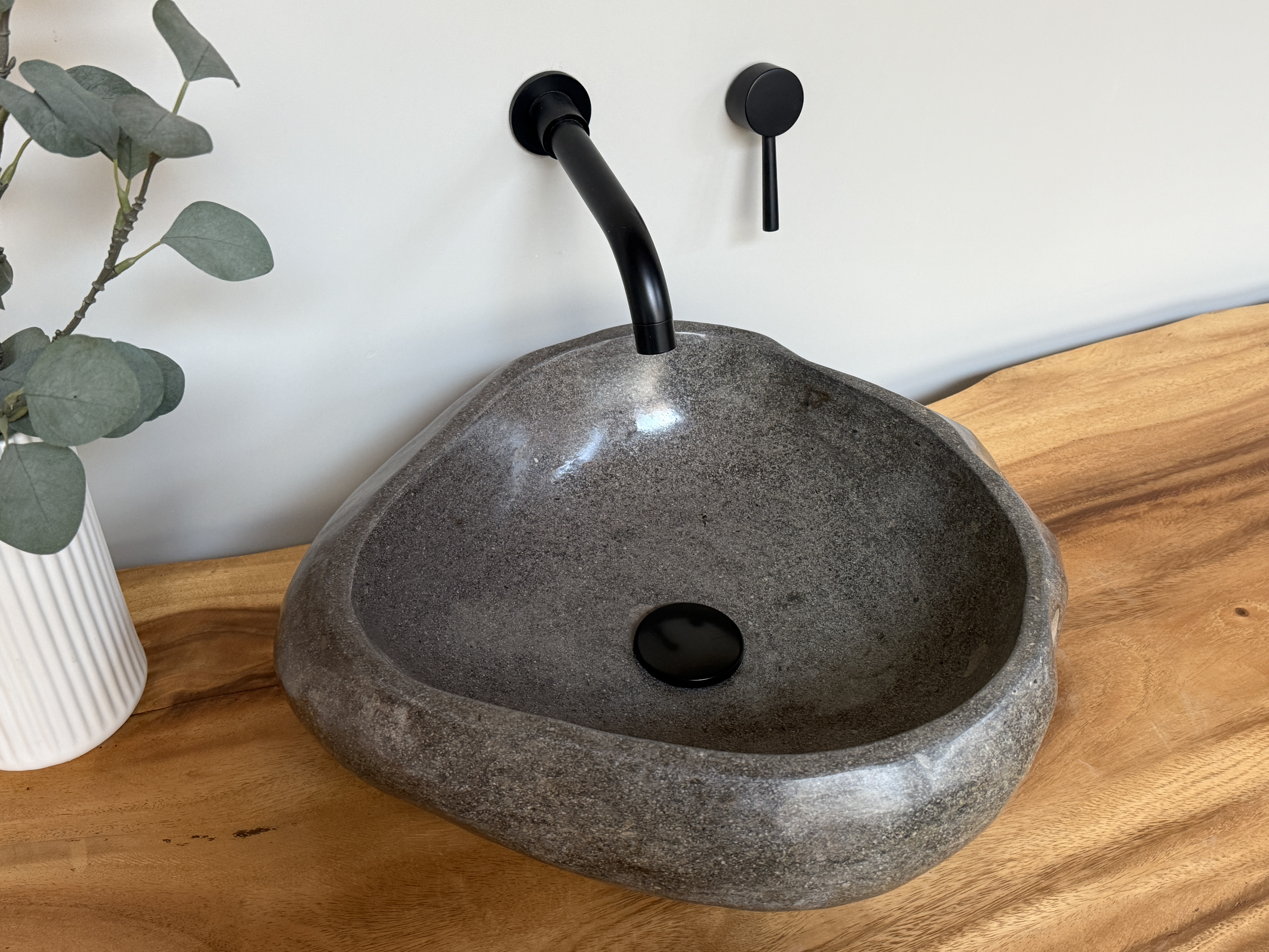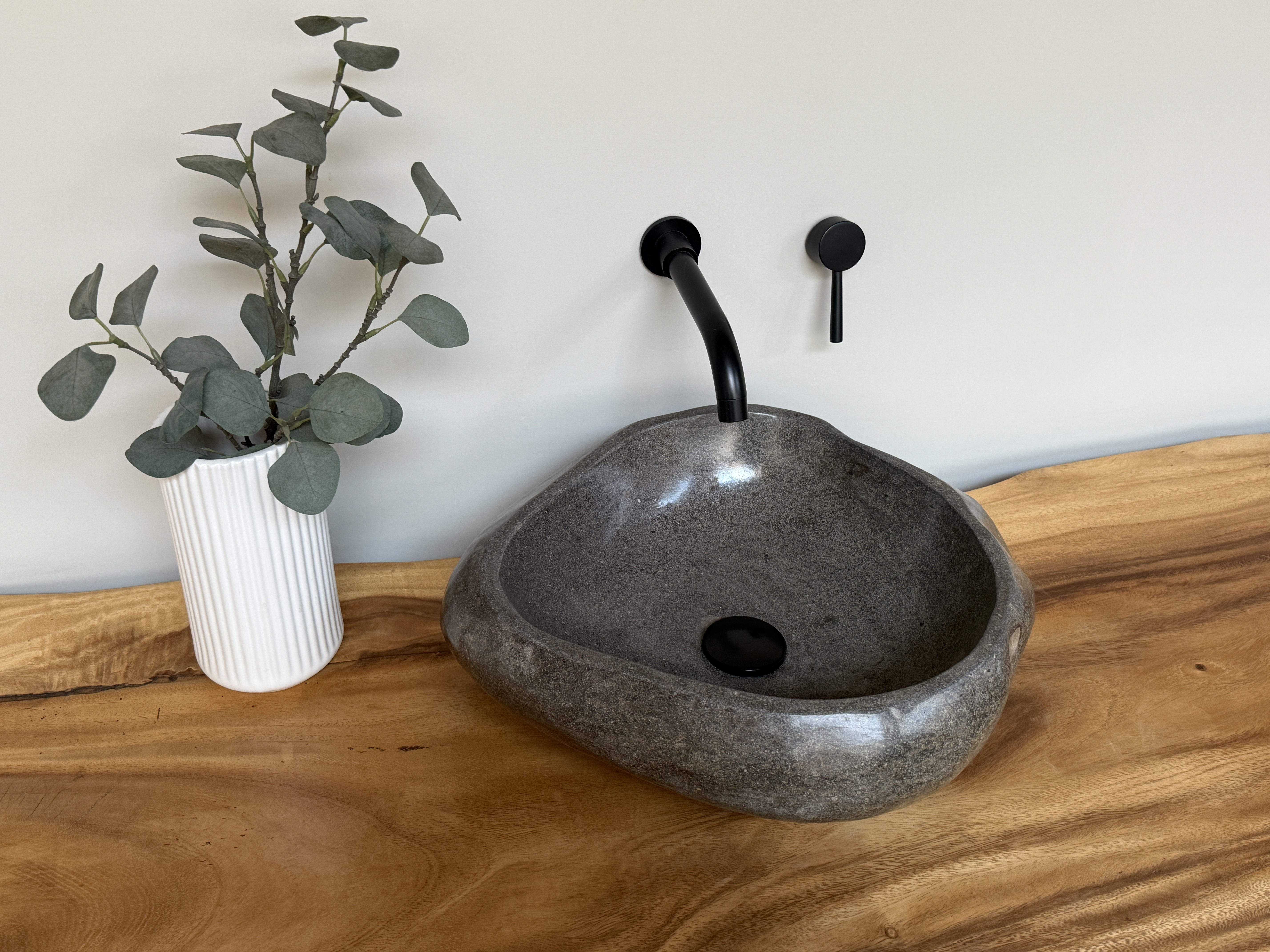 Nach einem Jahrzehnt langen Weg durch die Flüsse Indonesiens, rund gewaschen von der Strömung des Wassers, kommt es nun direkt zu dir in dein Badezimmer. Unterschiede in der Form, Farbgebung, Schattierung und Struktur sind Zeichen für die Individualität eines Waschbeckens aus Flussstein.