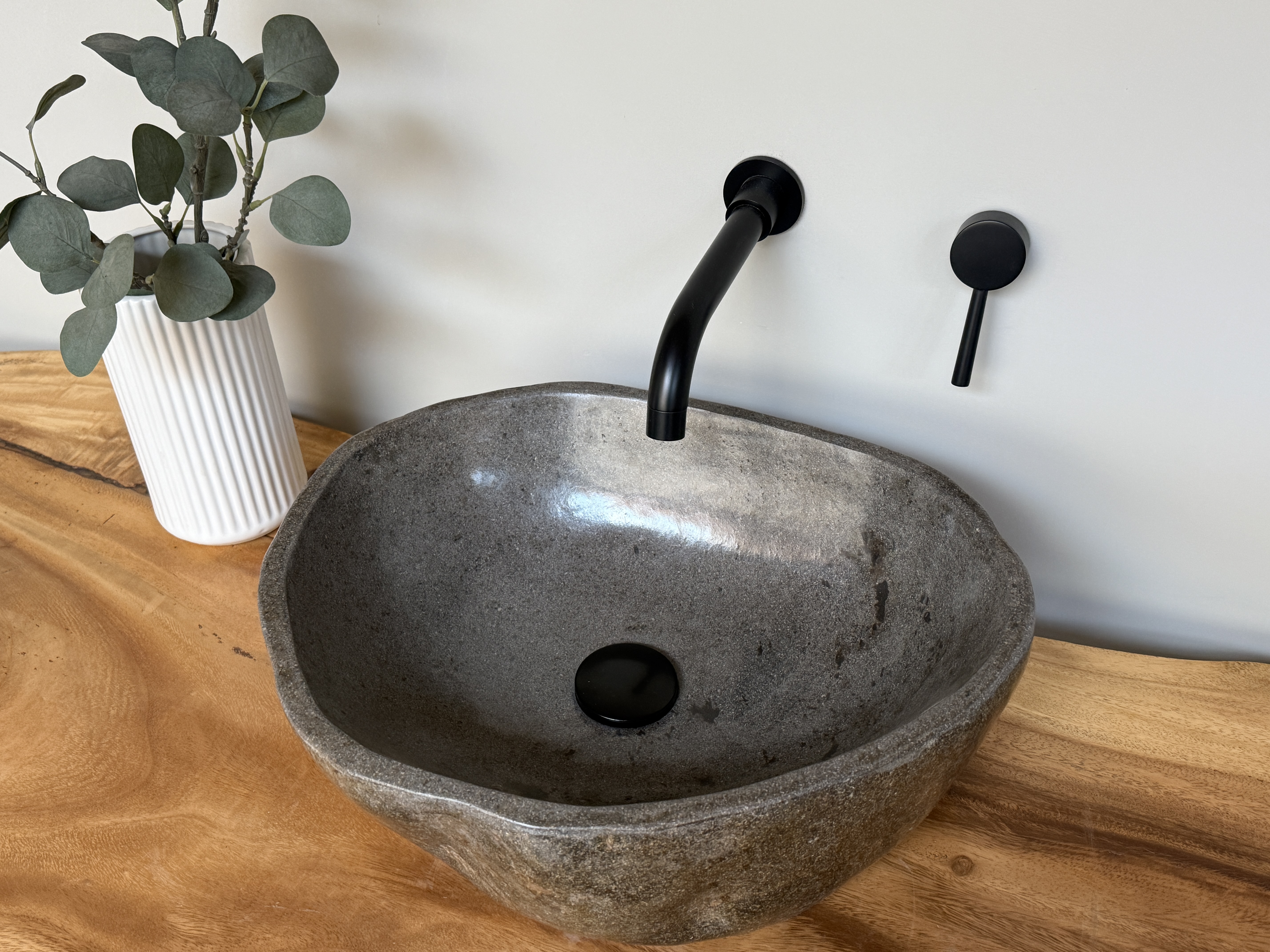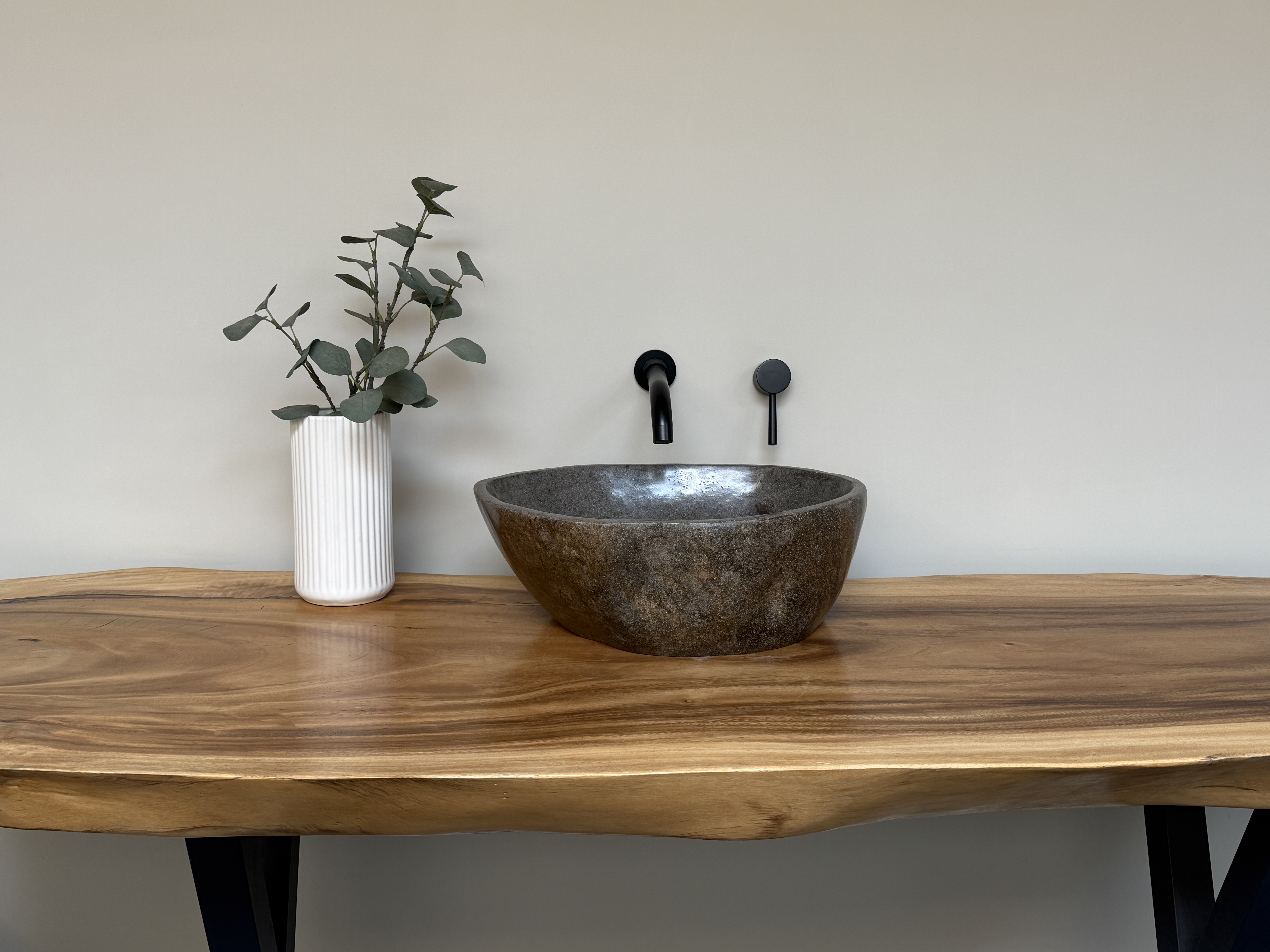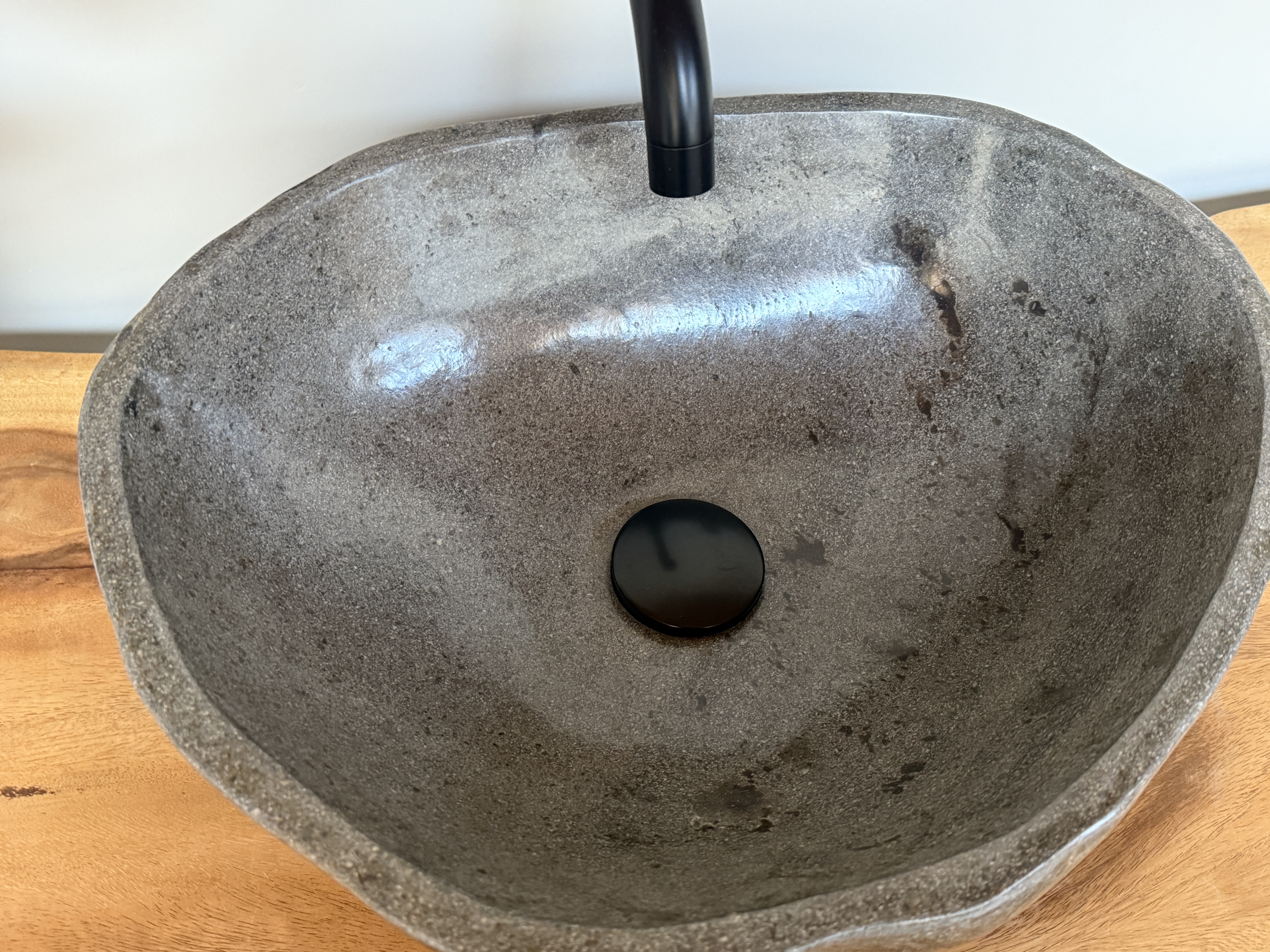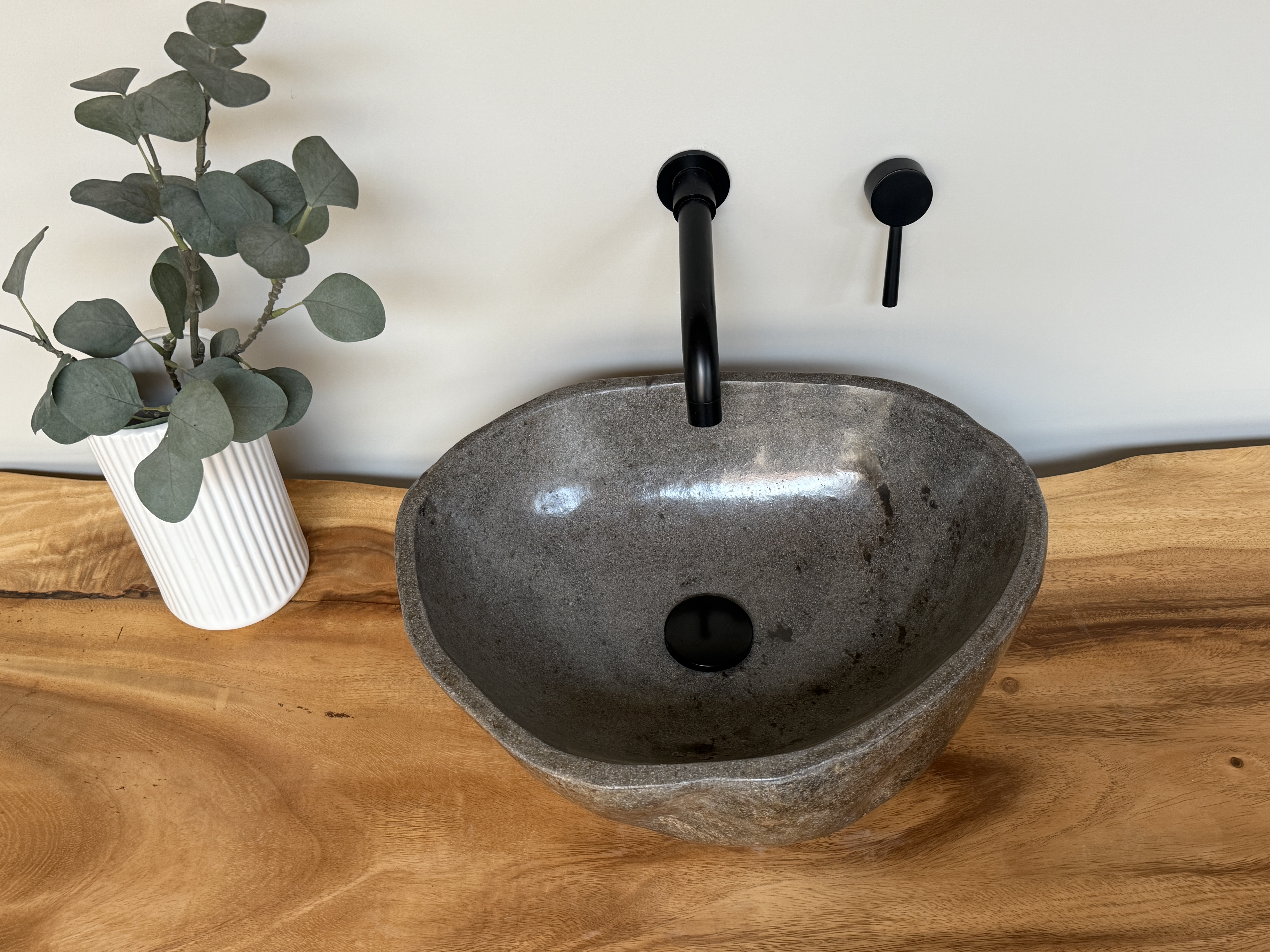 Nach einem Jahrzehnt langen Weg durch die Flüsse Indonesiens, rund gewaschen von der Strömung des Wassers, kommt es nun direkt zu dir in dein Badezimmer. Unterschiede in der Form, Farbgebung, Schattierung und Struktur sind Zeichen für die Individualität eines Waschbeckens aus Flussstein.