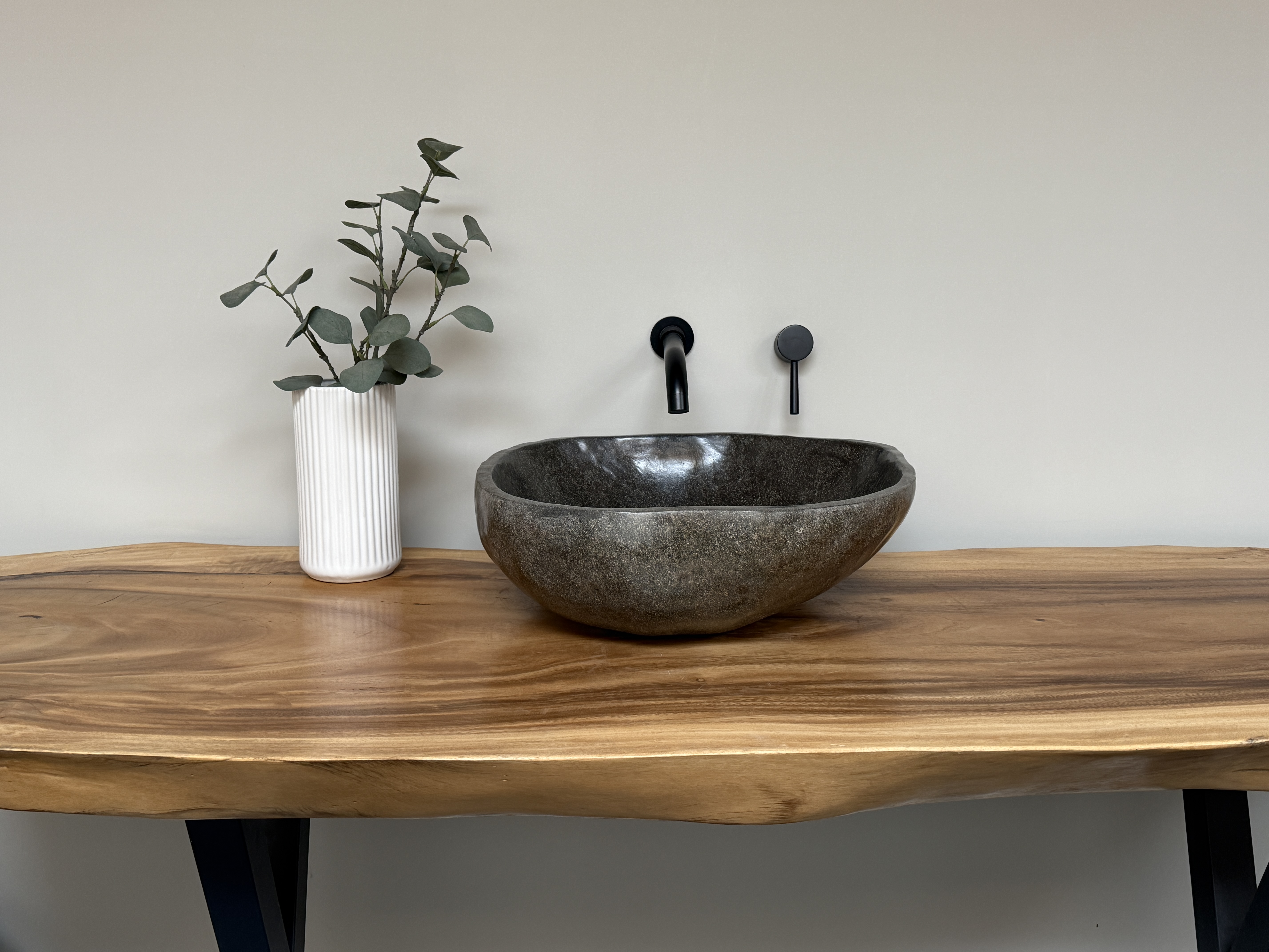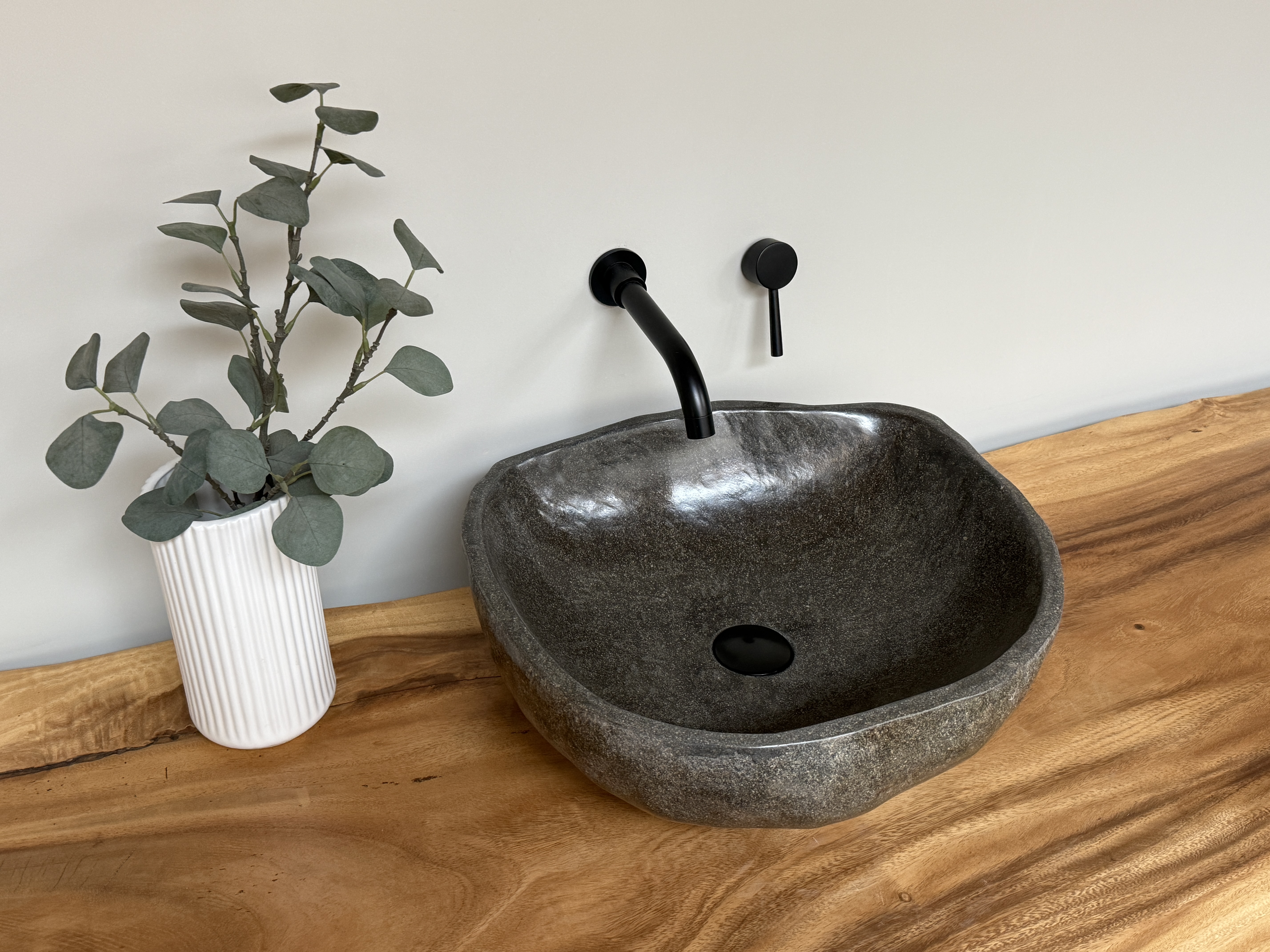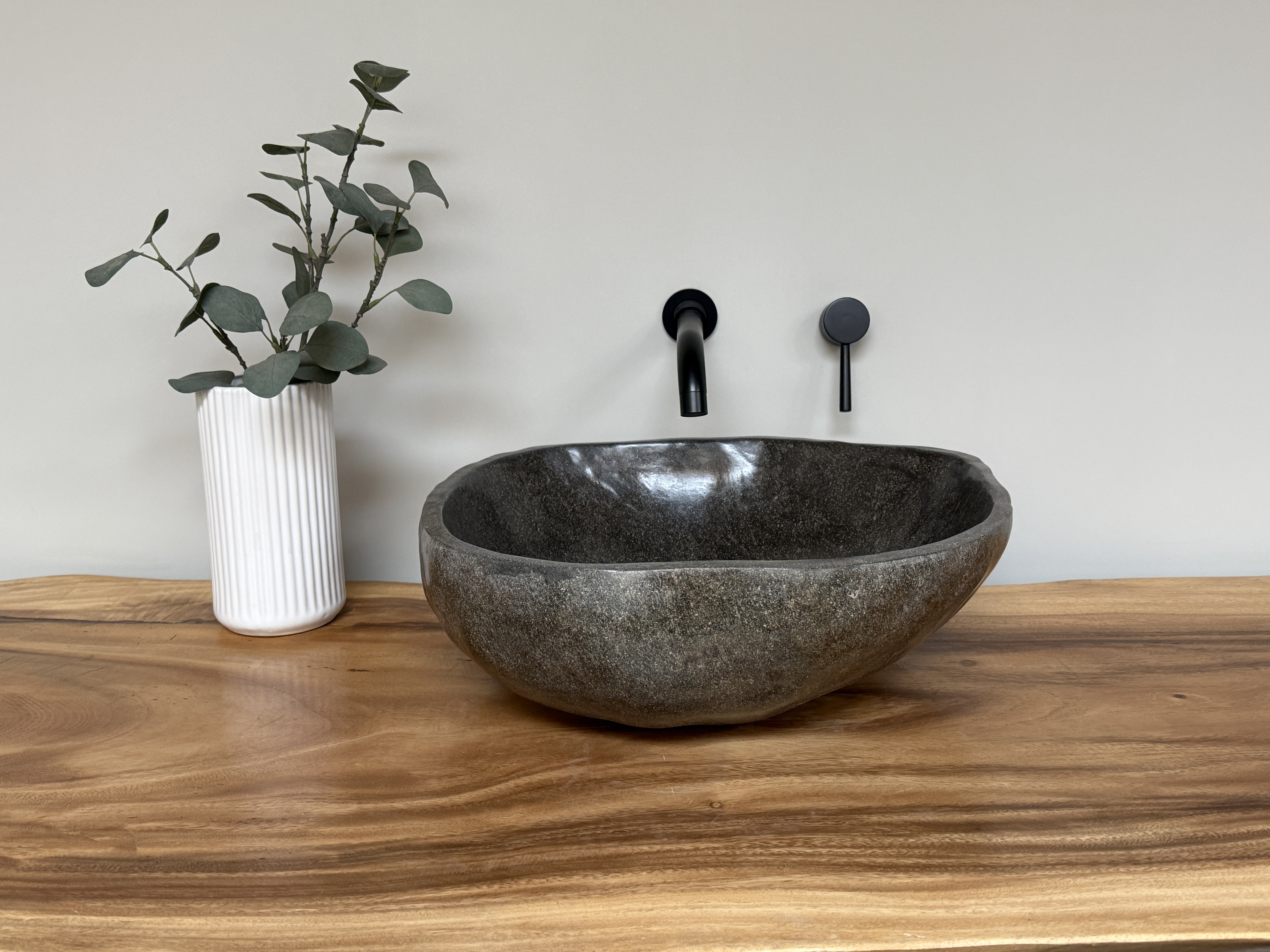 Nach einem Jahrzehnt langen Weg durch die Flüsse Indonesiens, rund gewaschen von der Strömung des Wassers, kommt es nun direkt zu dir in dein Badezimmer. Unterschiede in der Form, Farbgebung, Schattierung und Struktur sind Zeichen für die Individualität eines Waschbeckens aus Flussstein.