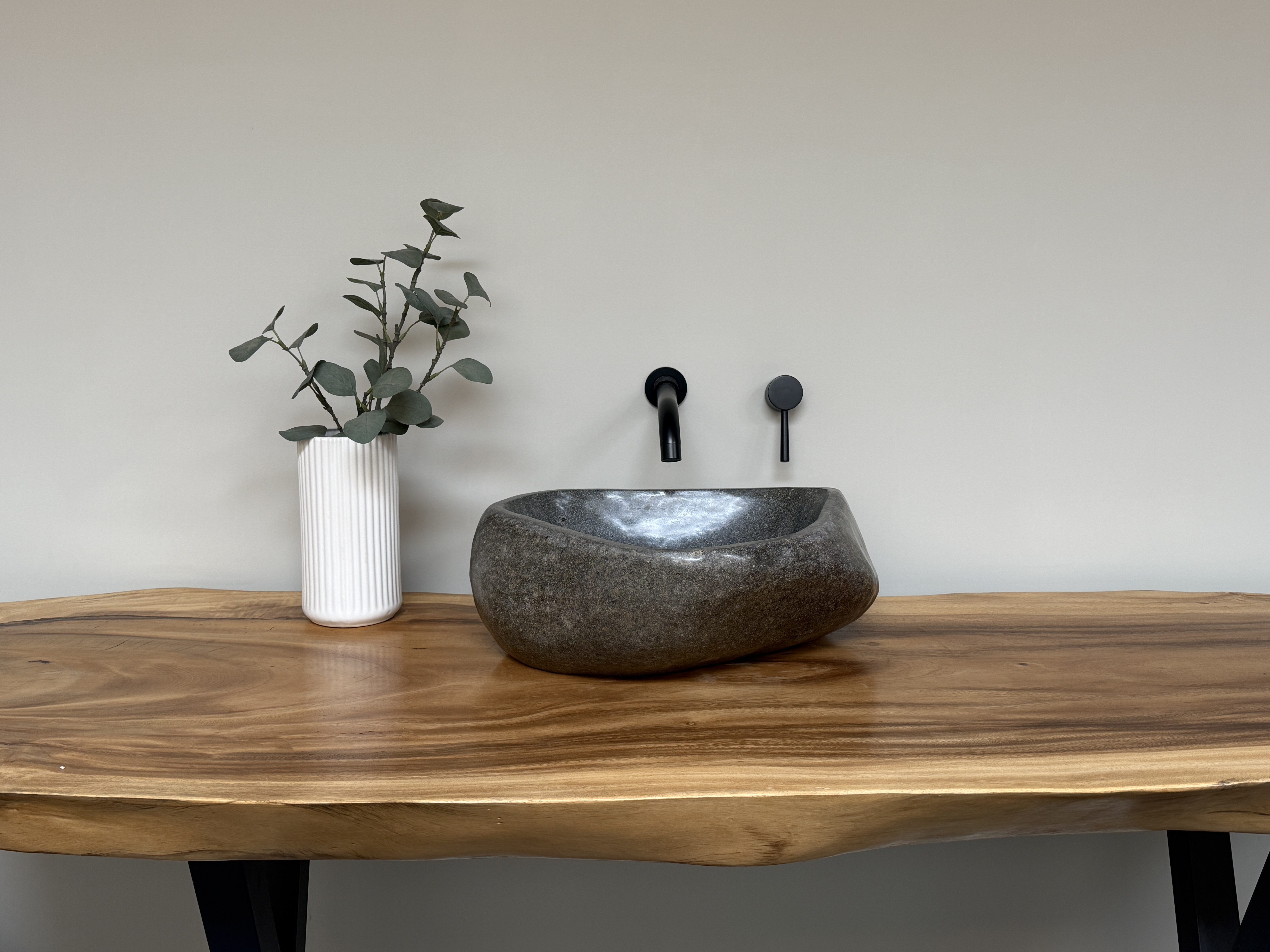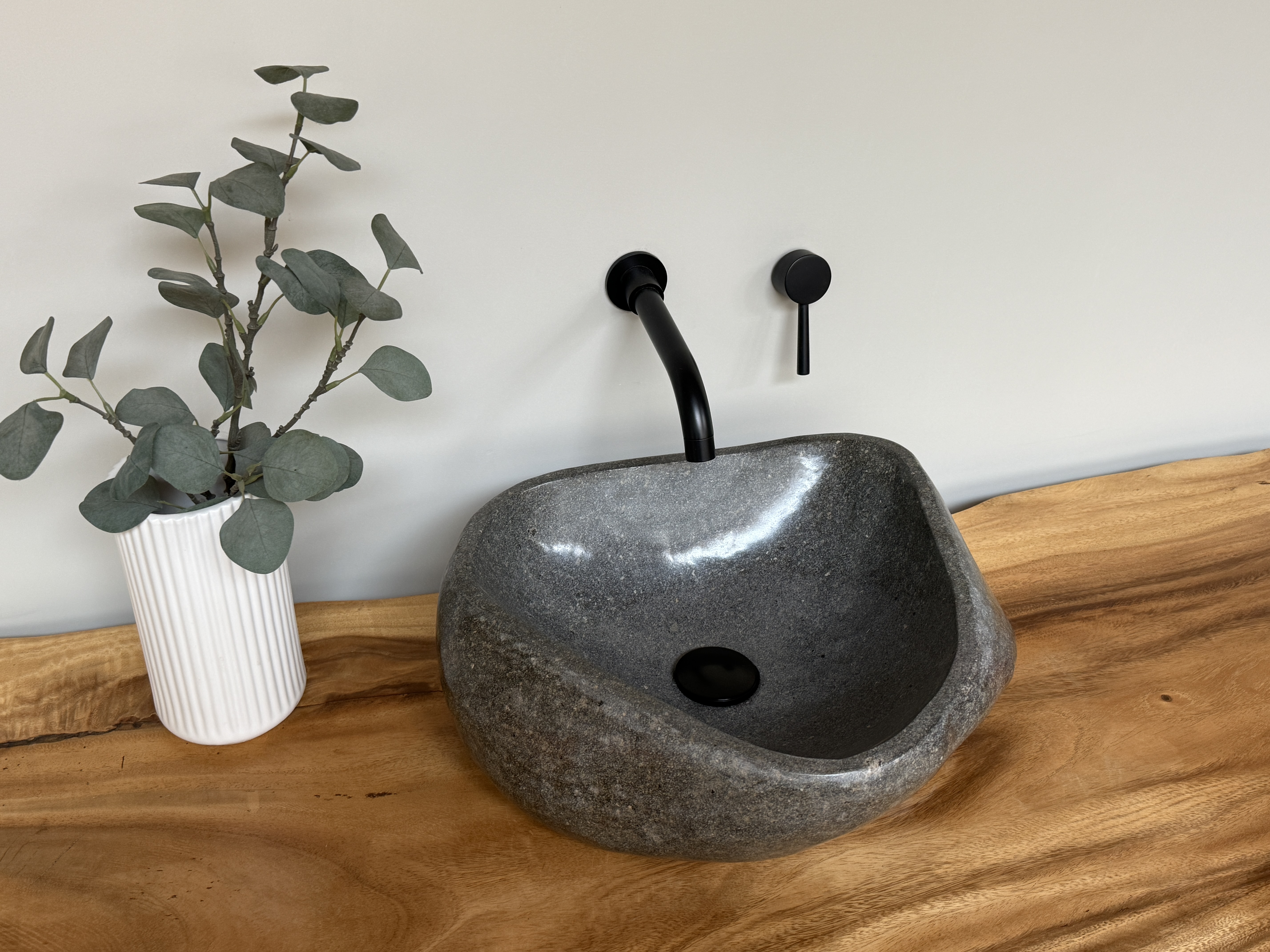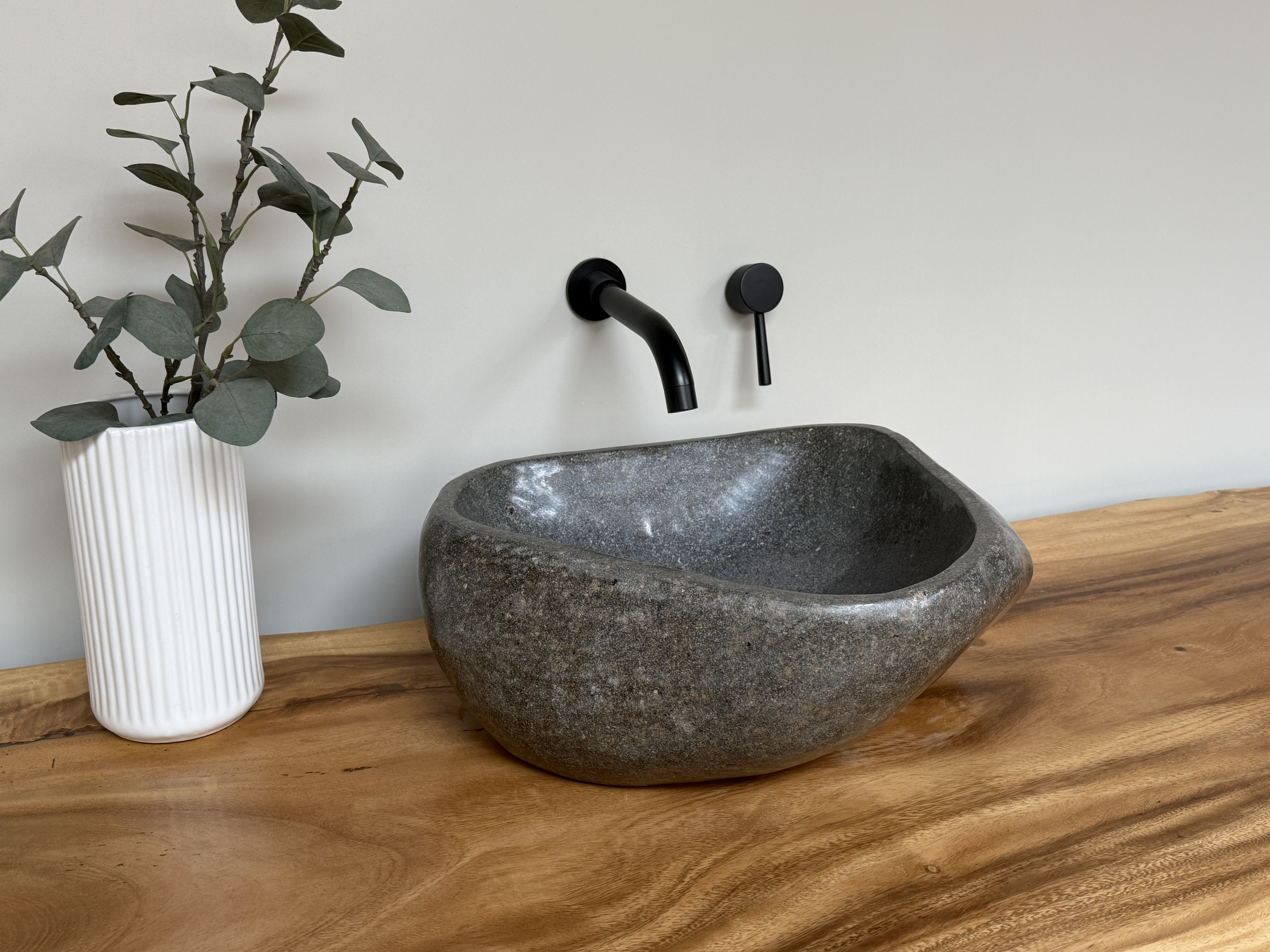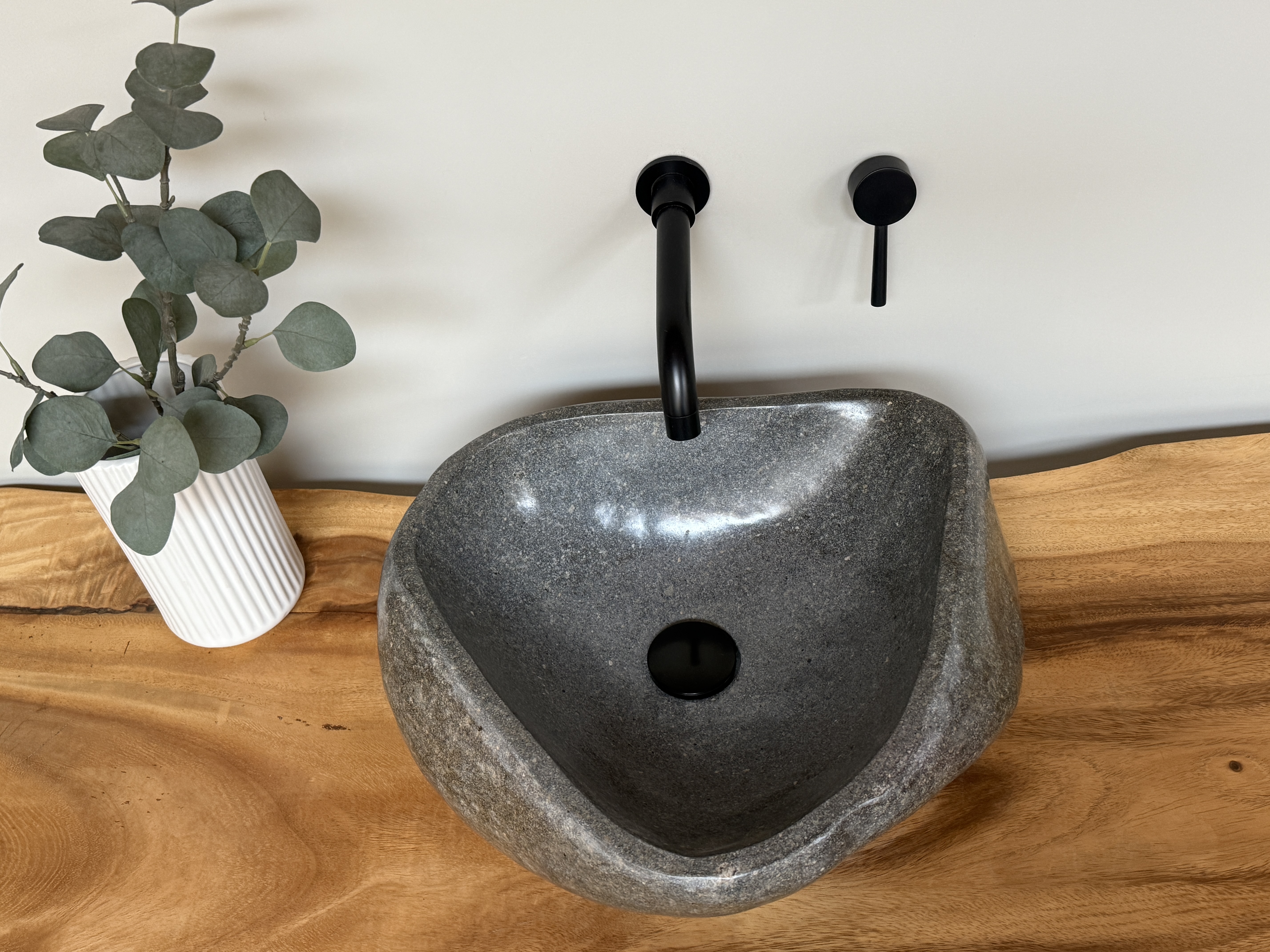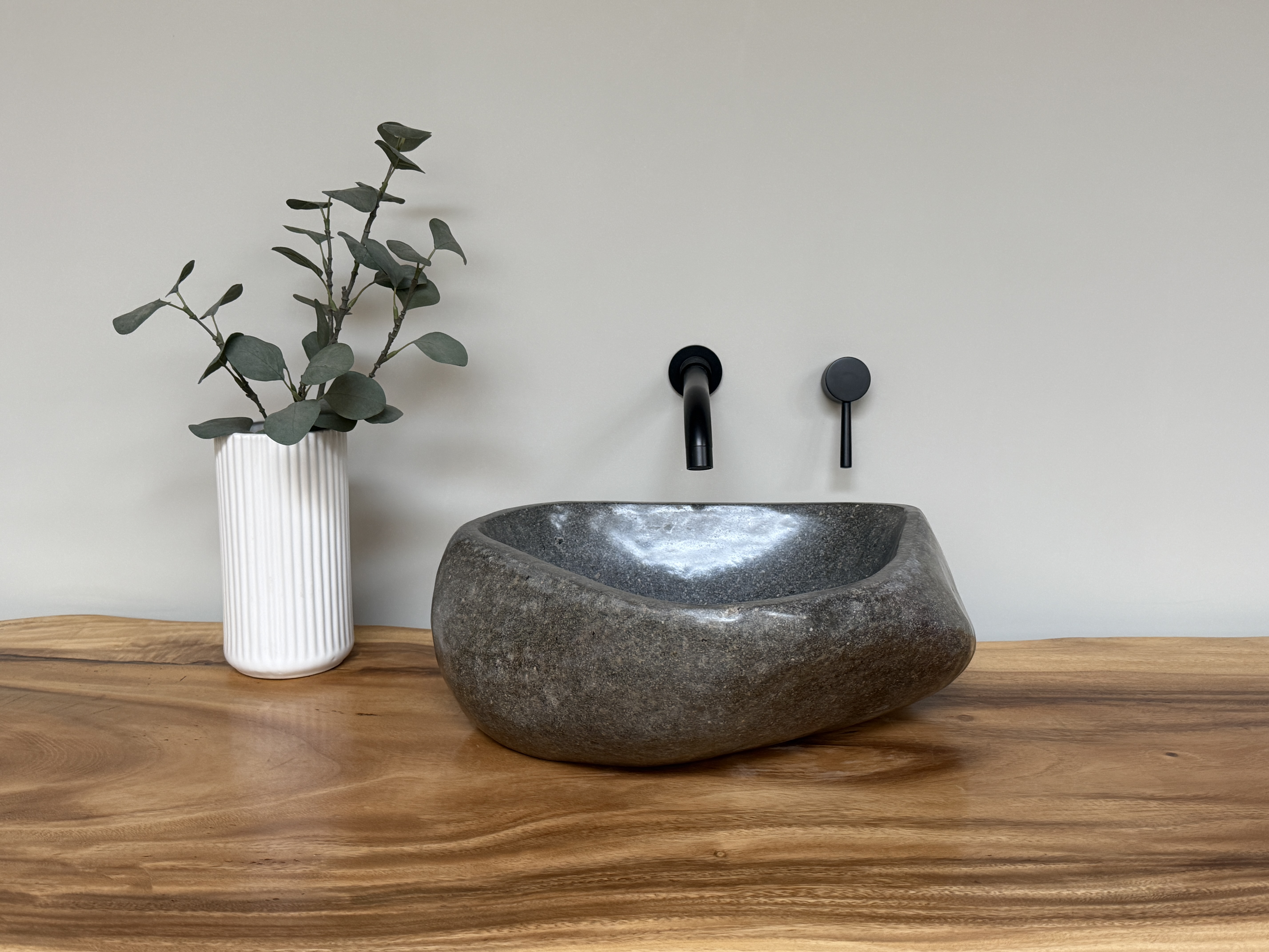 Nach einem Jahrzehnt langen Weg durch die Flüsse Indonesiens, rund gewaschen von der Strömung des Wassers, kommt es nun direkt zu dir in dein Badezimmer. Unterschiede in der Form, Farbgebung, Schattierung und Struktur sind Zeichen für die Individualität eines Waschbeckens aus Flussstein.
