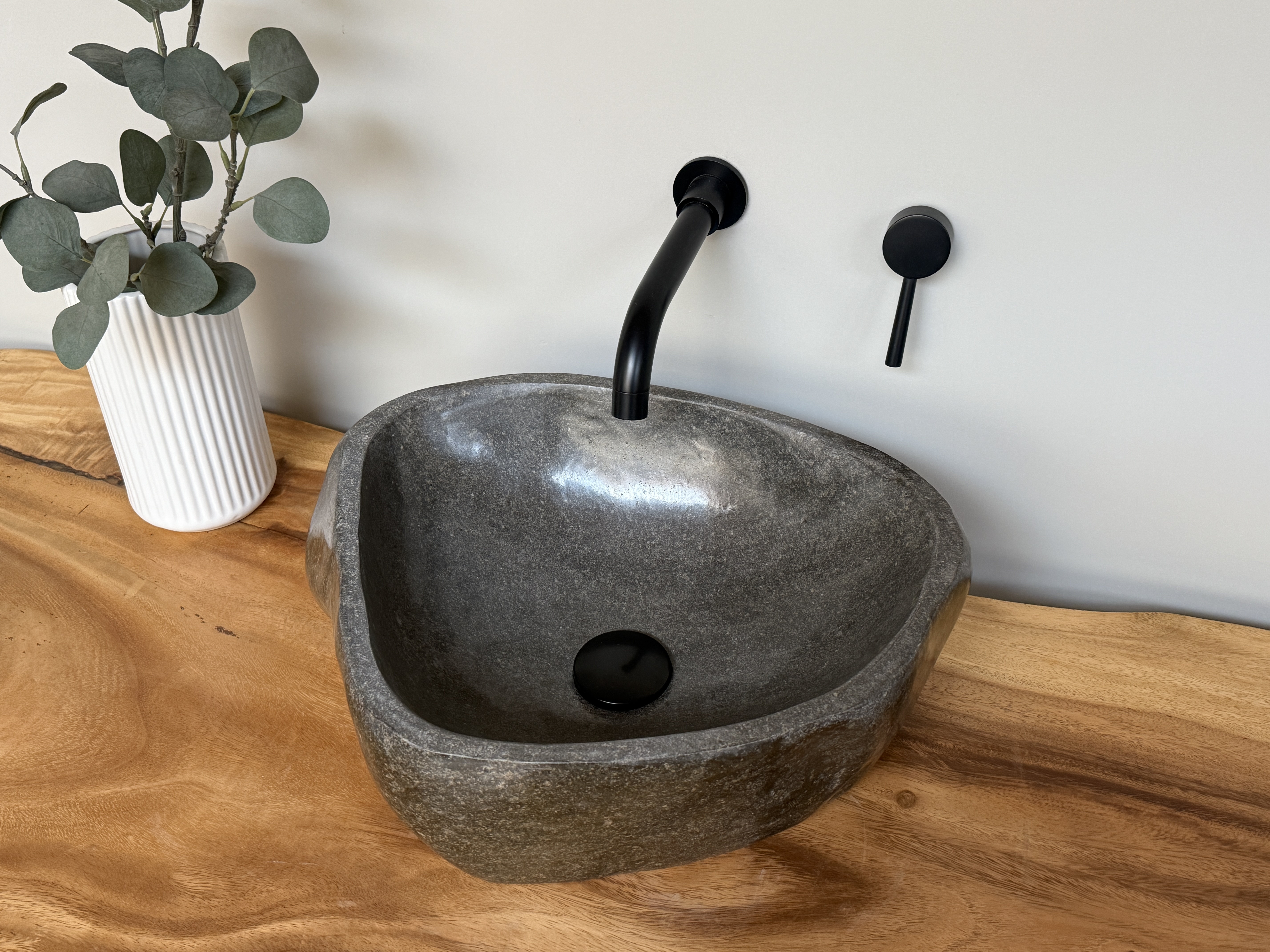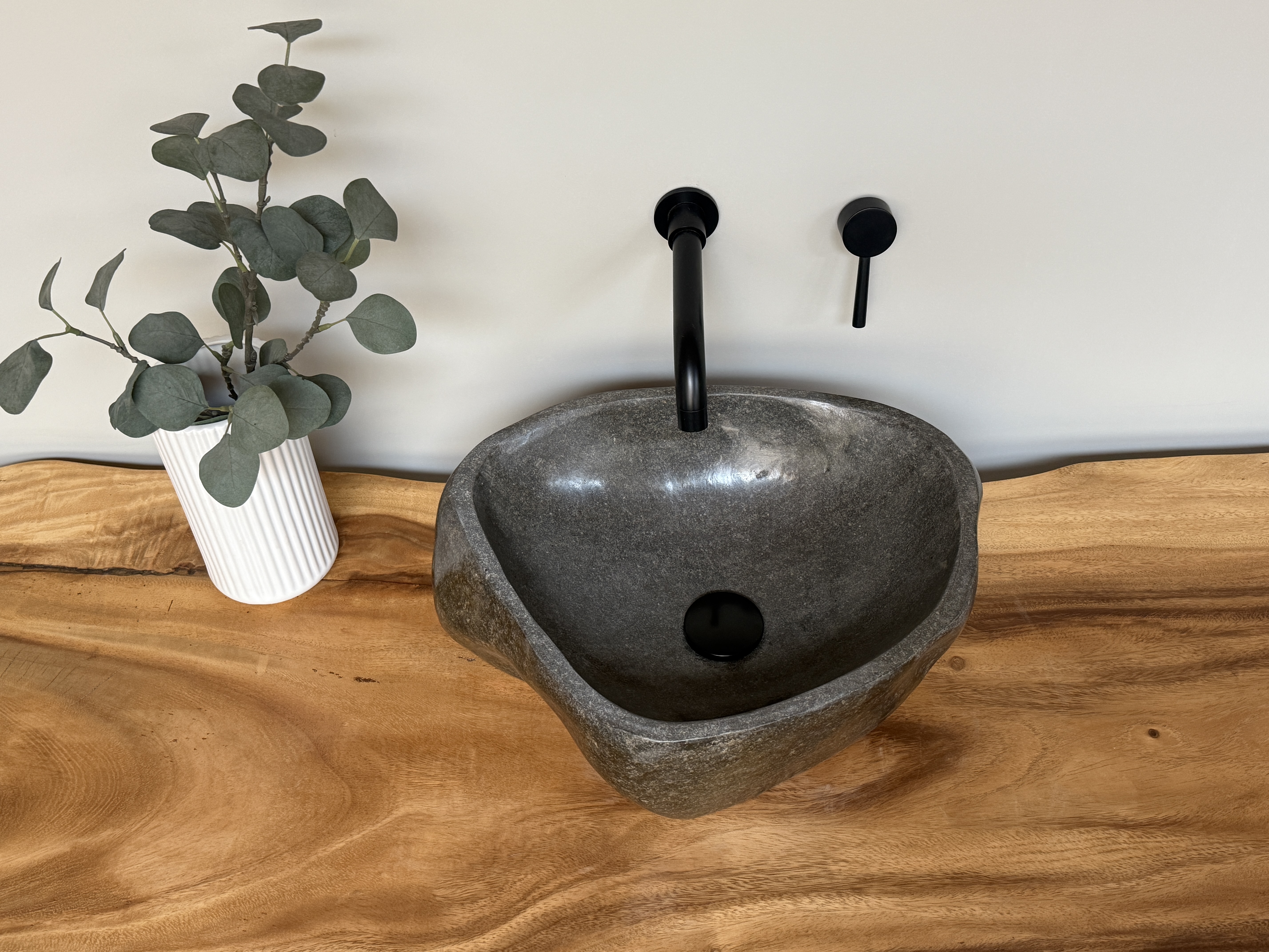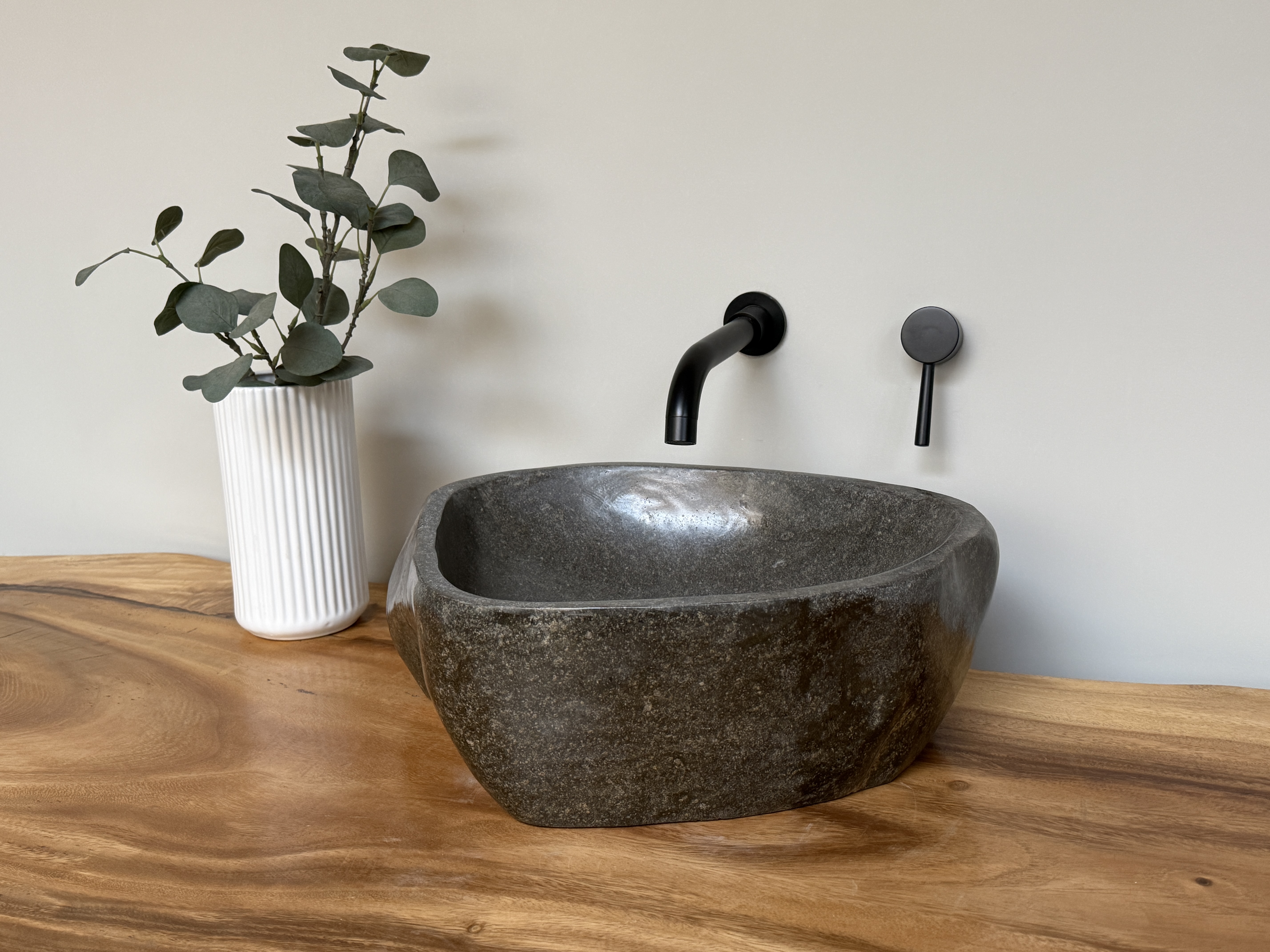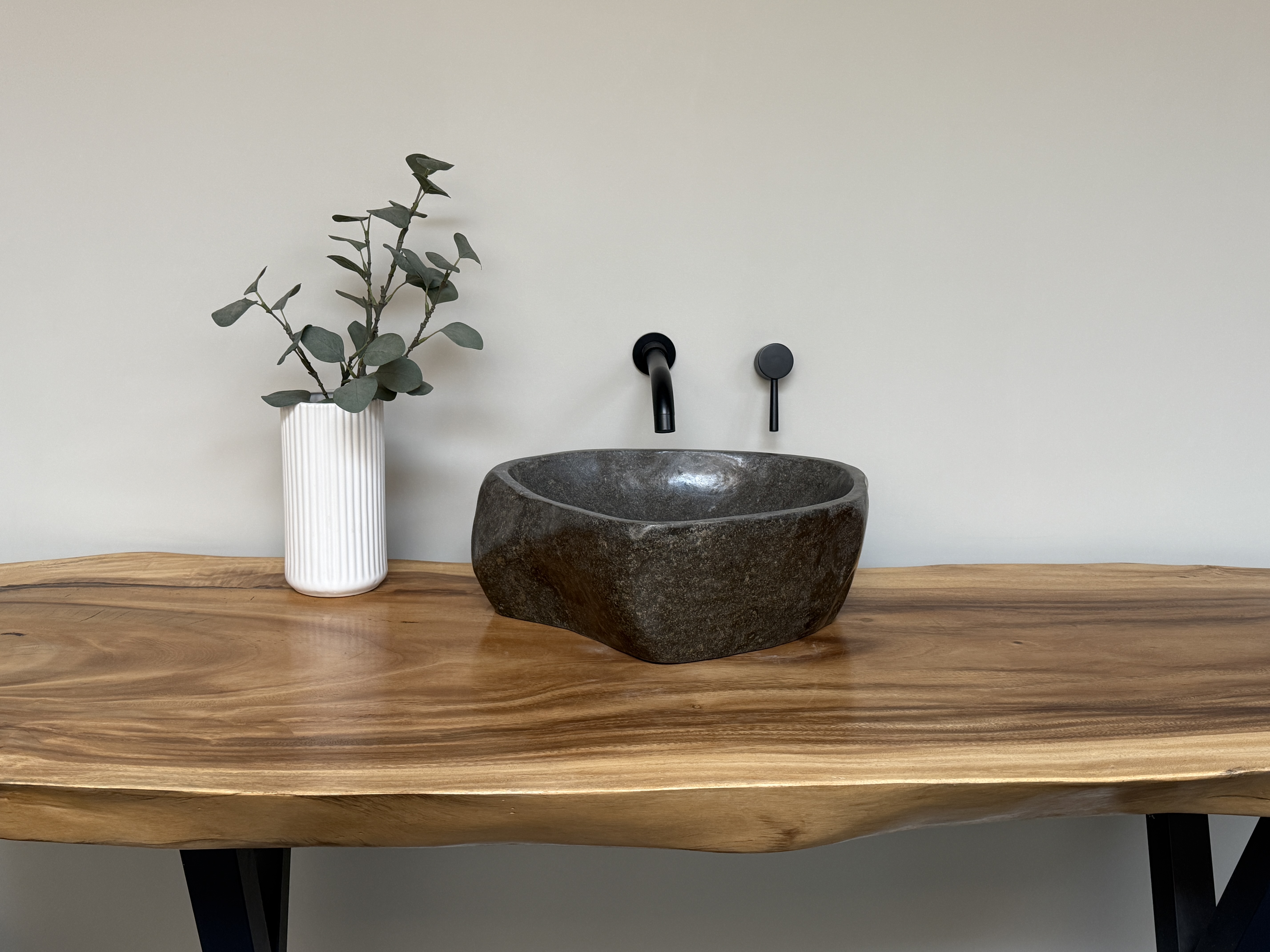 Nach einem Jahrzehnt langen Weg durch die Flüsse Indonesiens, rund gewaschen von der Strömung des Wassers, kommt es nun direkt zu dir in dein Badezimmer. Unterschiede in der Form, Farbgebung, Schattierung und Struktur sind Zeichen für die Individualität eines Waschbeckens aus Flussstein.