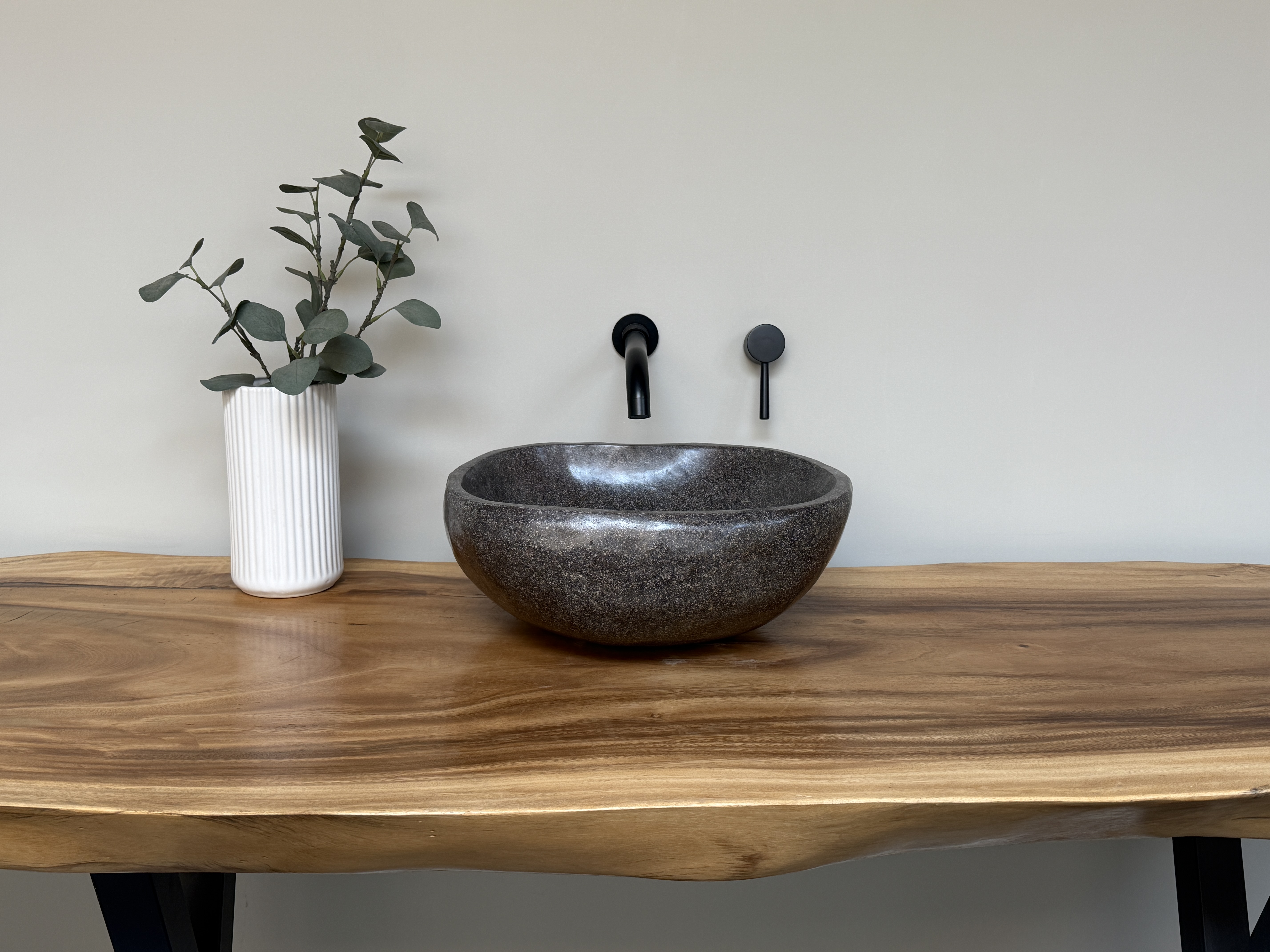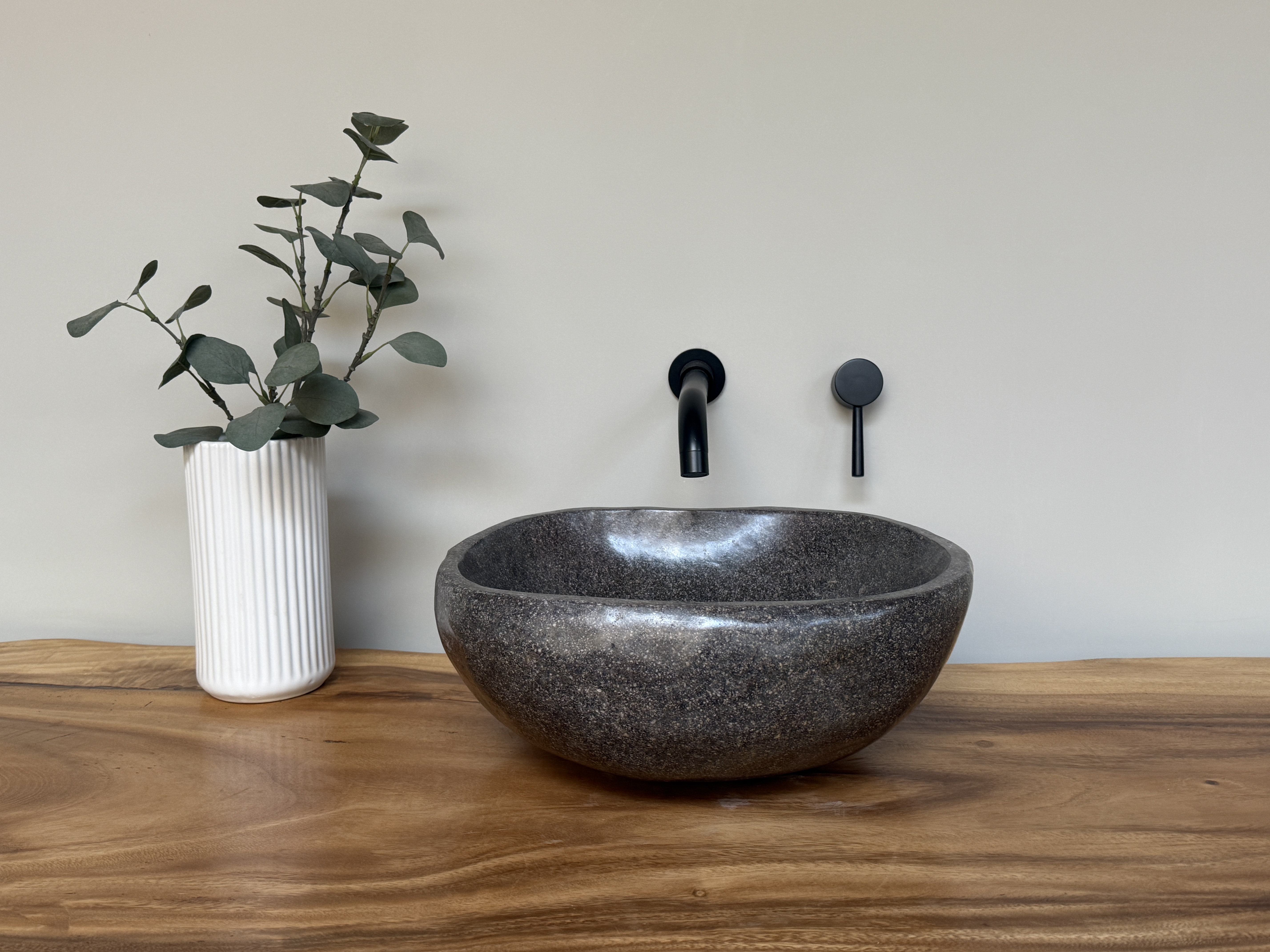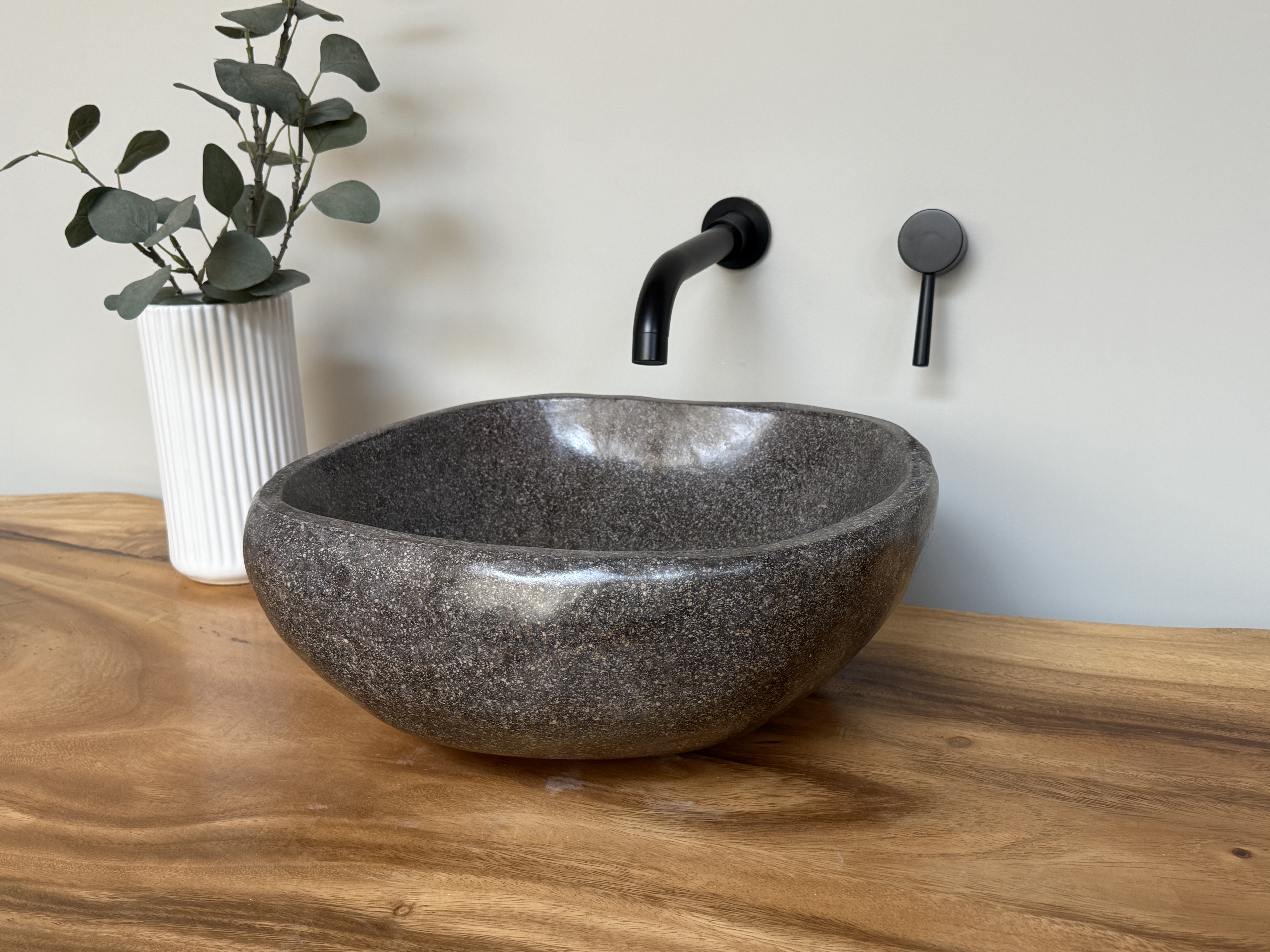 Nach einem Jahrzehnt langen Weg durch die Flüsse Indonesiens, rund gewaschen von der Strömung des Wassers, kommt es nun direkt zu dir in dein Badezimmer. Unterschiede in der Form, Farbgebung, Schattierung und Struktur sind Zeichen für die Individualität eines Waschbeckens aus Flussstein.