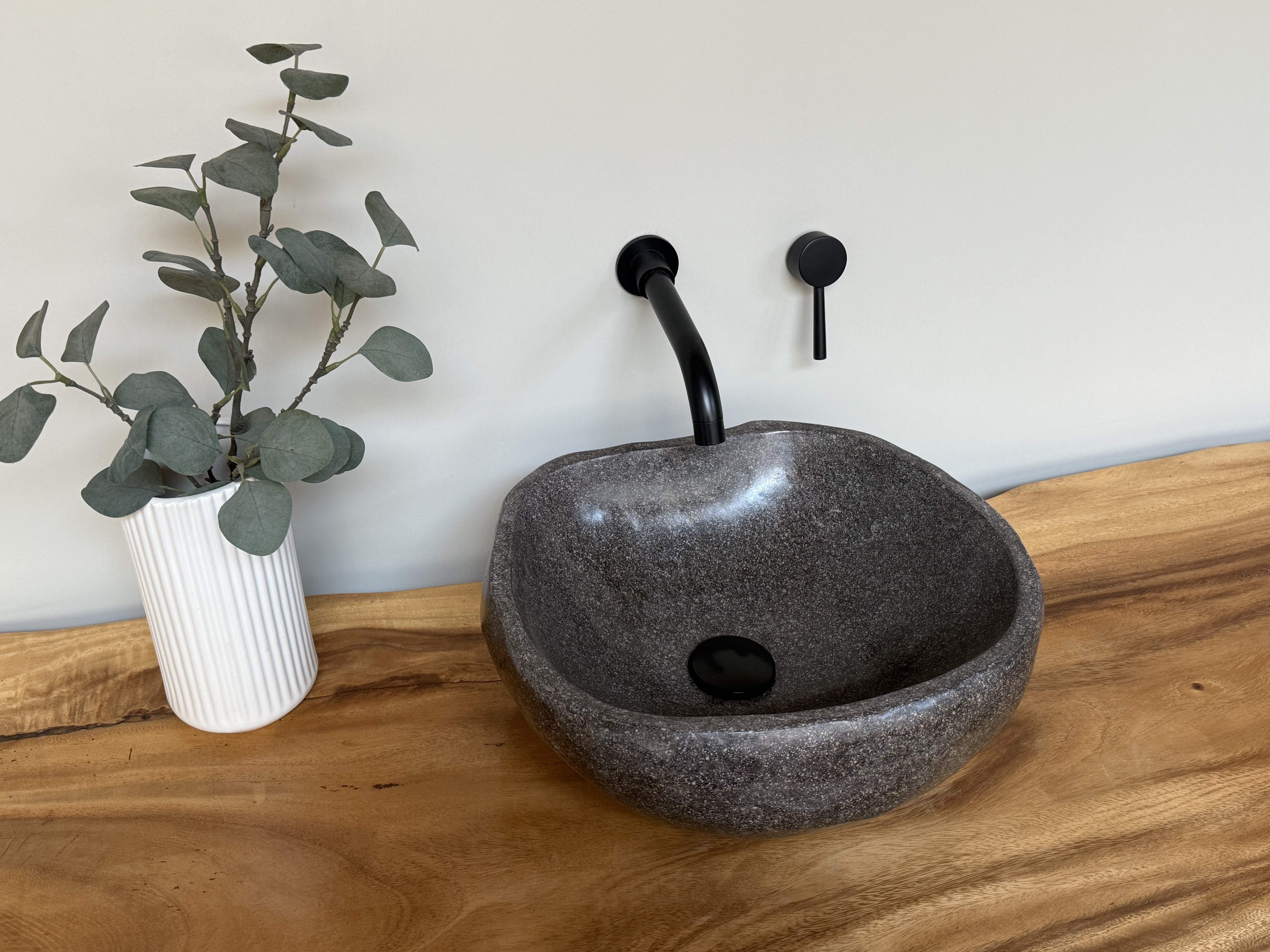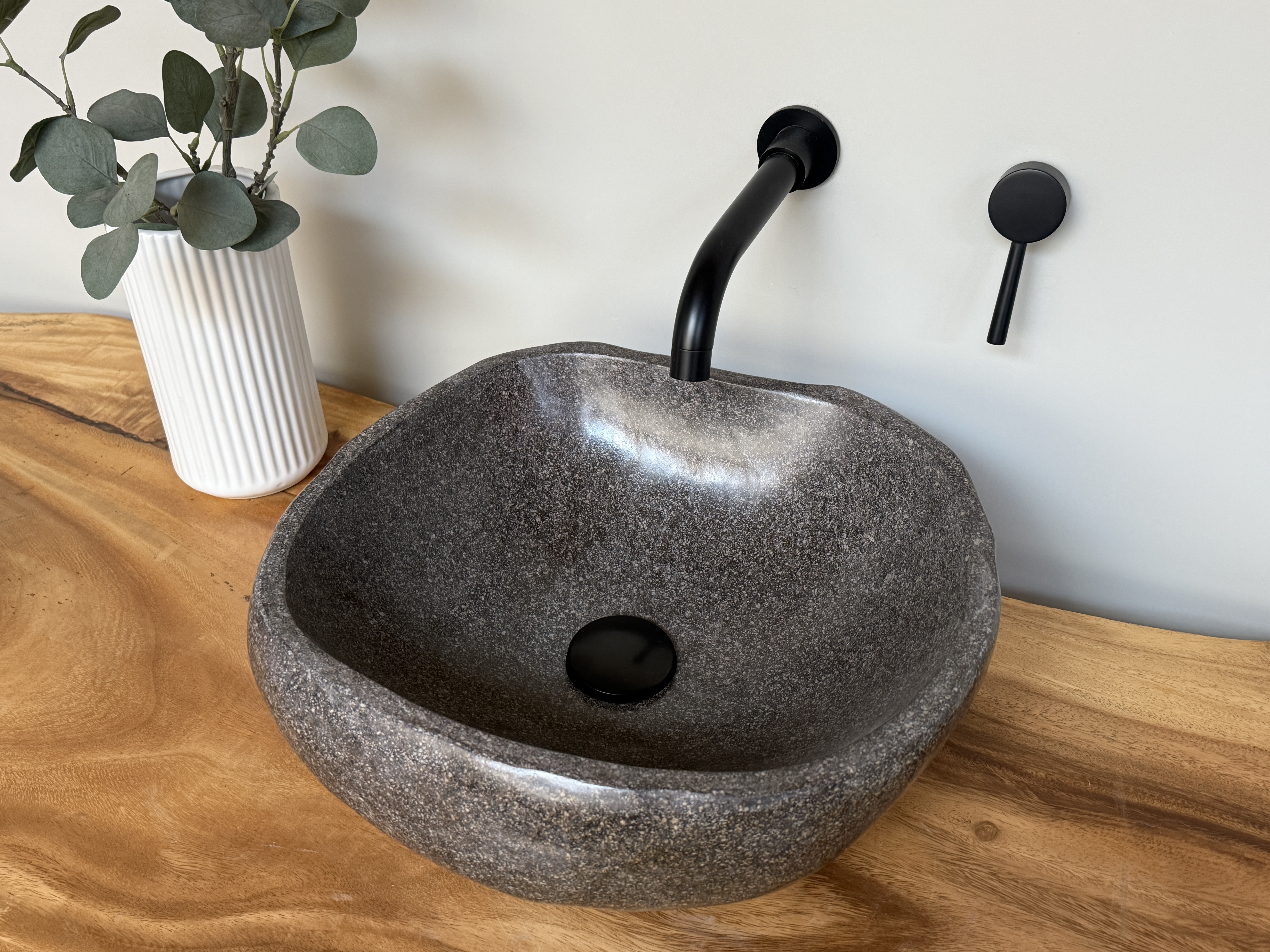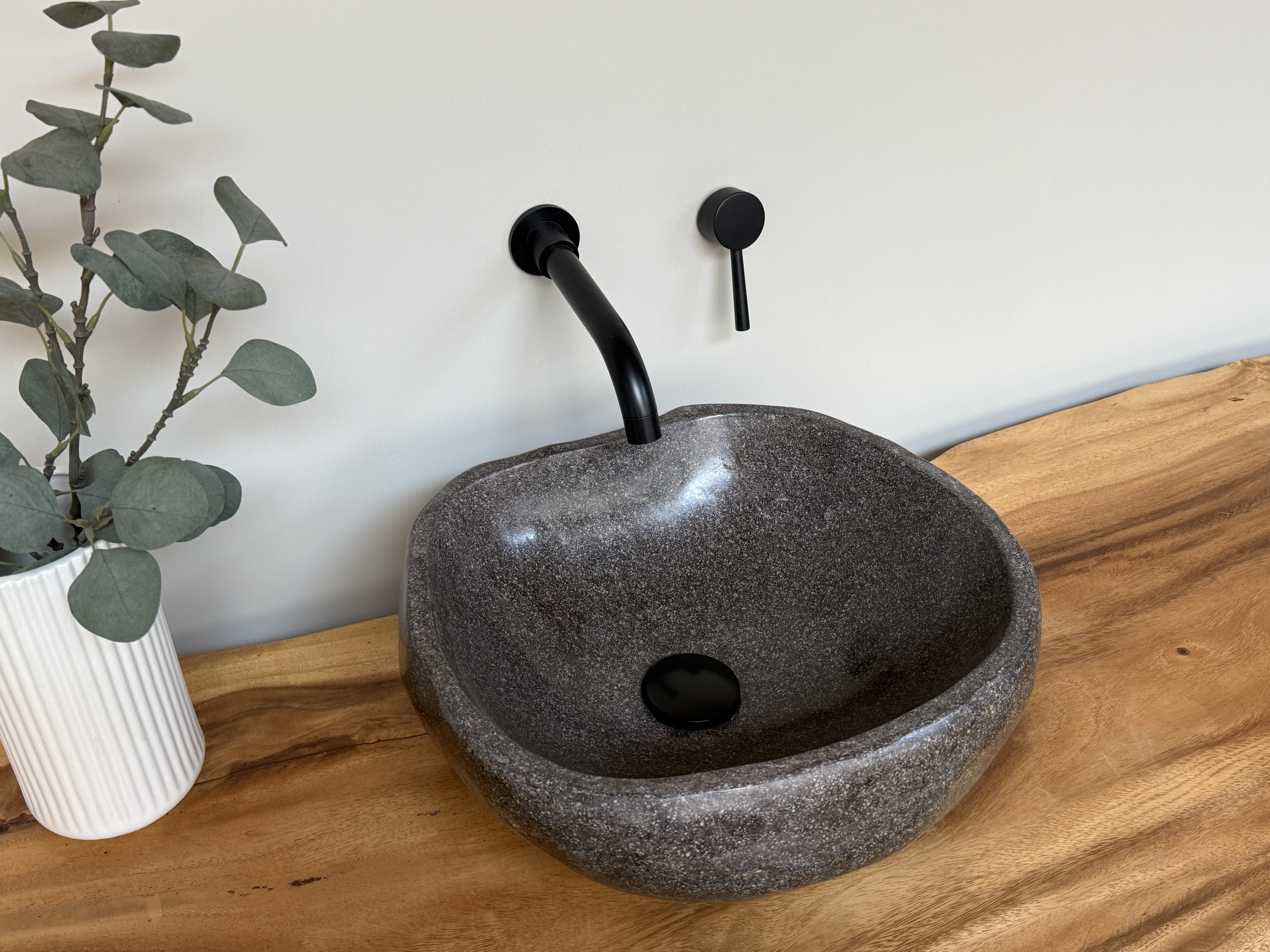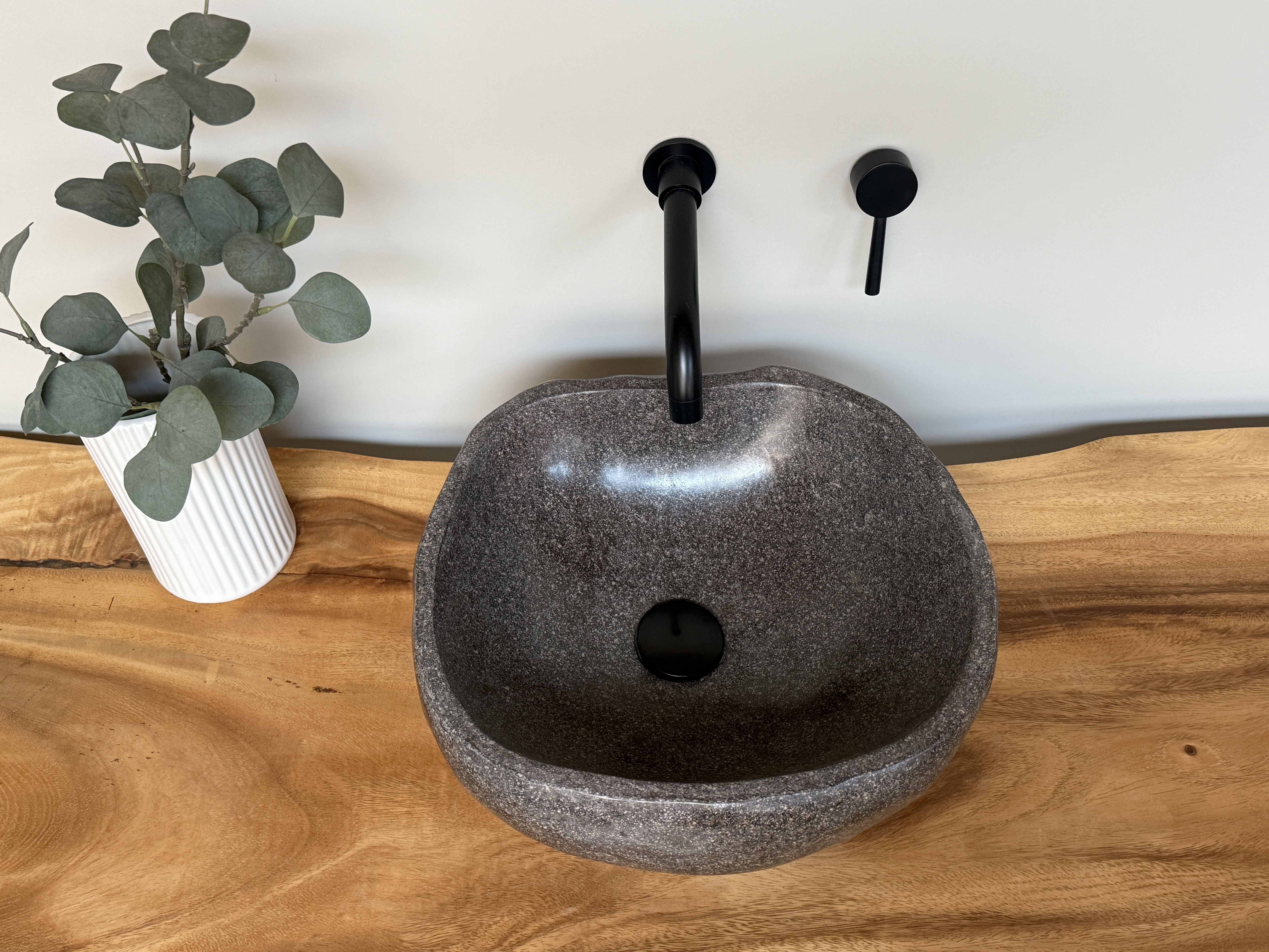 Nach einem Jahrzehnt langen Weg durch die Flüsse Indonesiens, rund gewaschen von der Strömung des Wassers, kommt es nun direkt zu dir in dein Badezimmer. Unterschiede in der Form, Farbgebung, Schattierung und Struktur sind Zeichen für die Individualität eines Waschbeckens aus Flussstein.