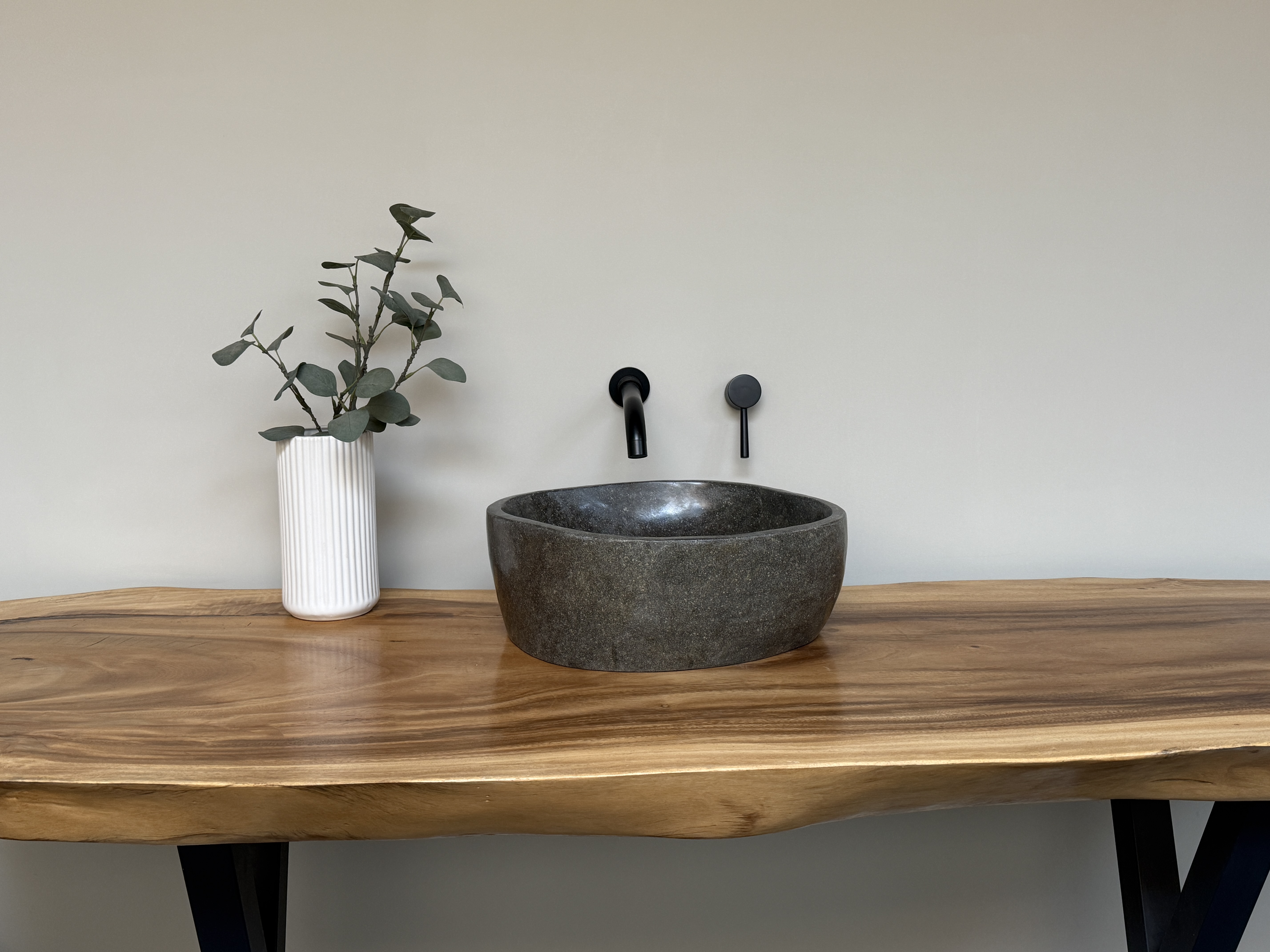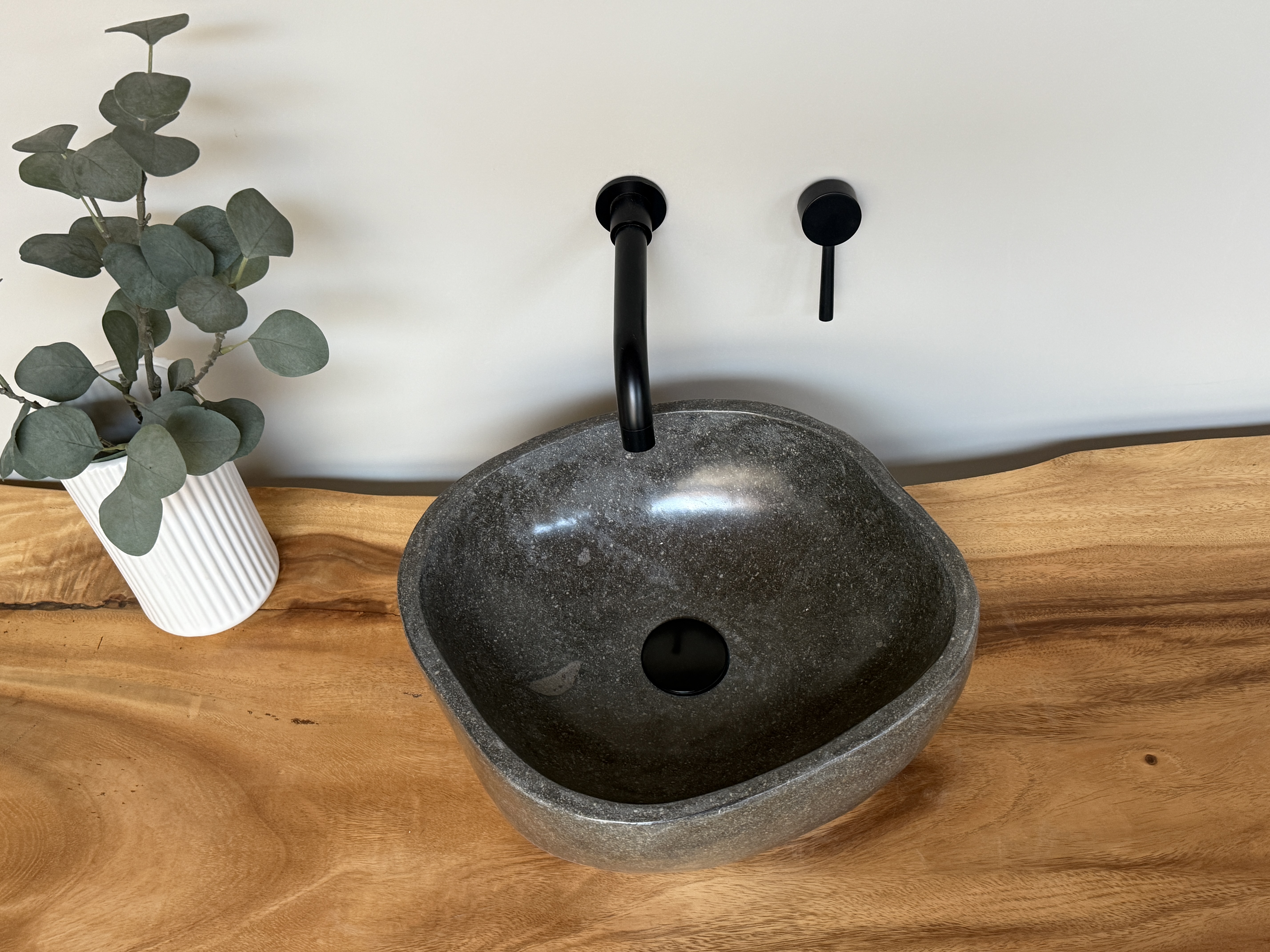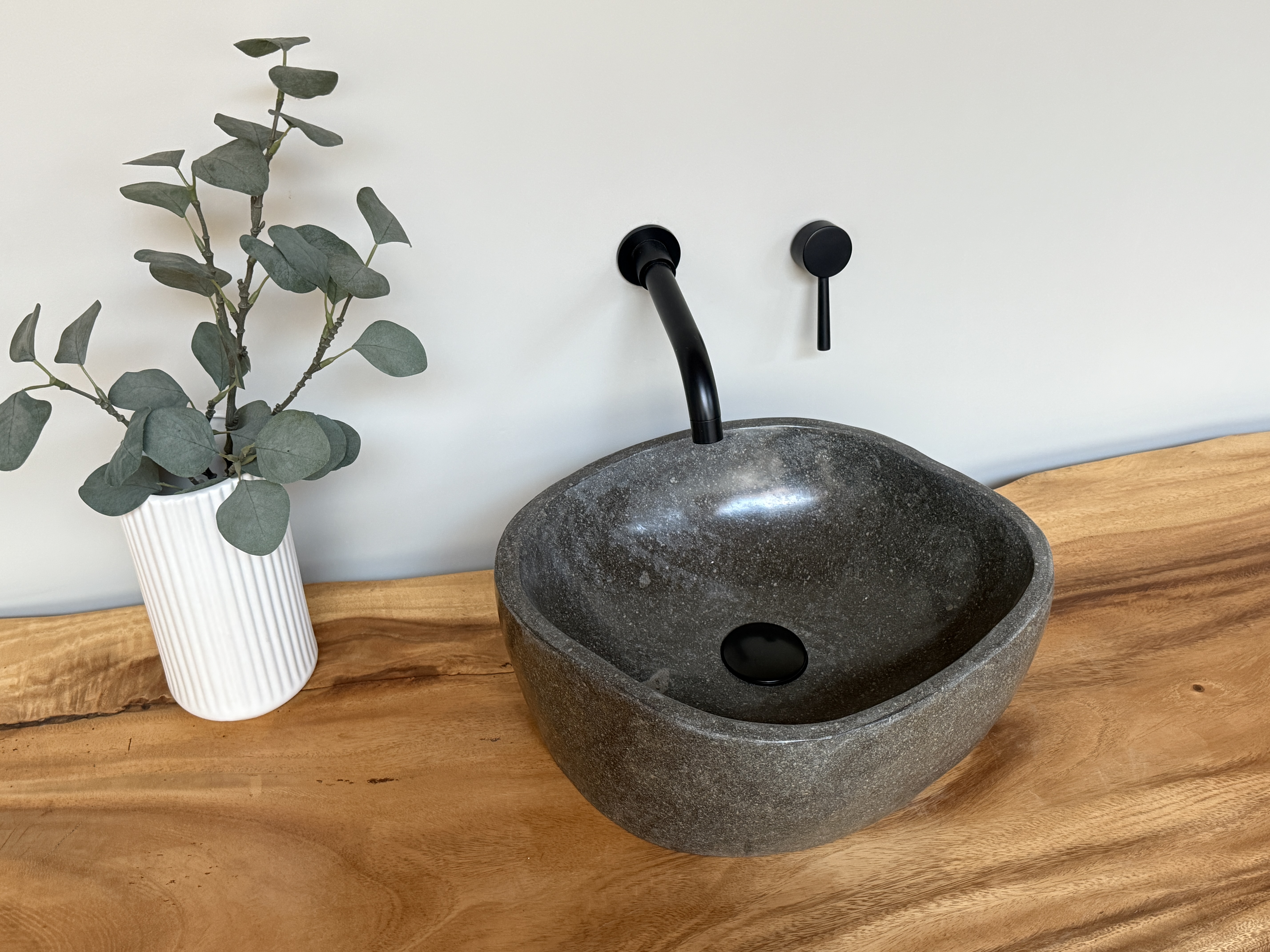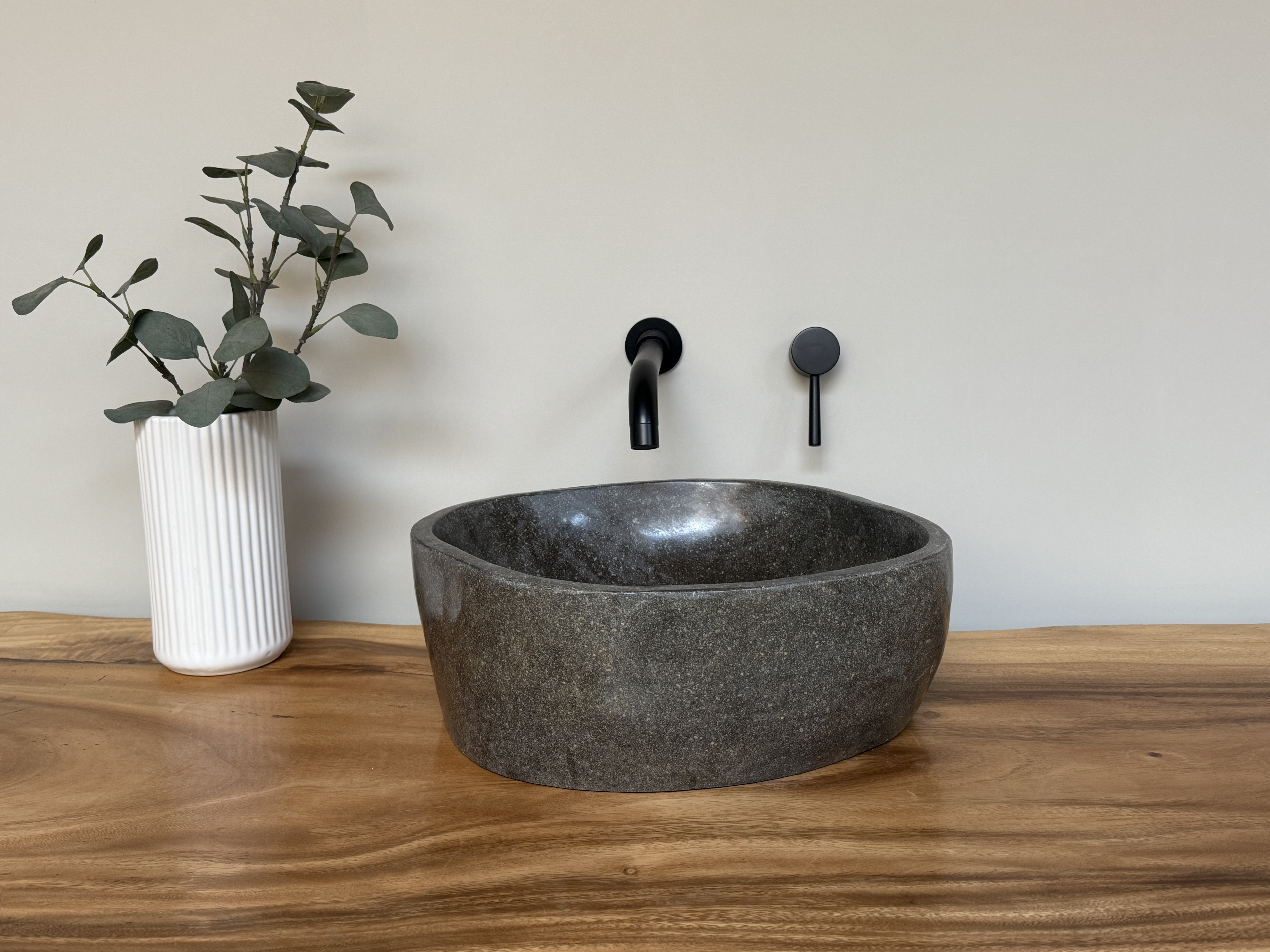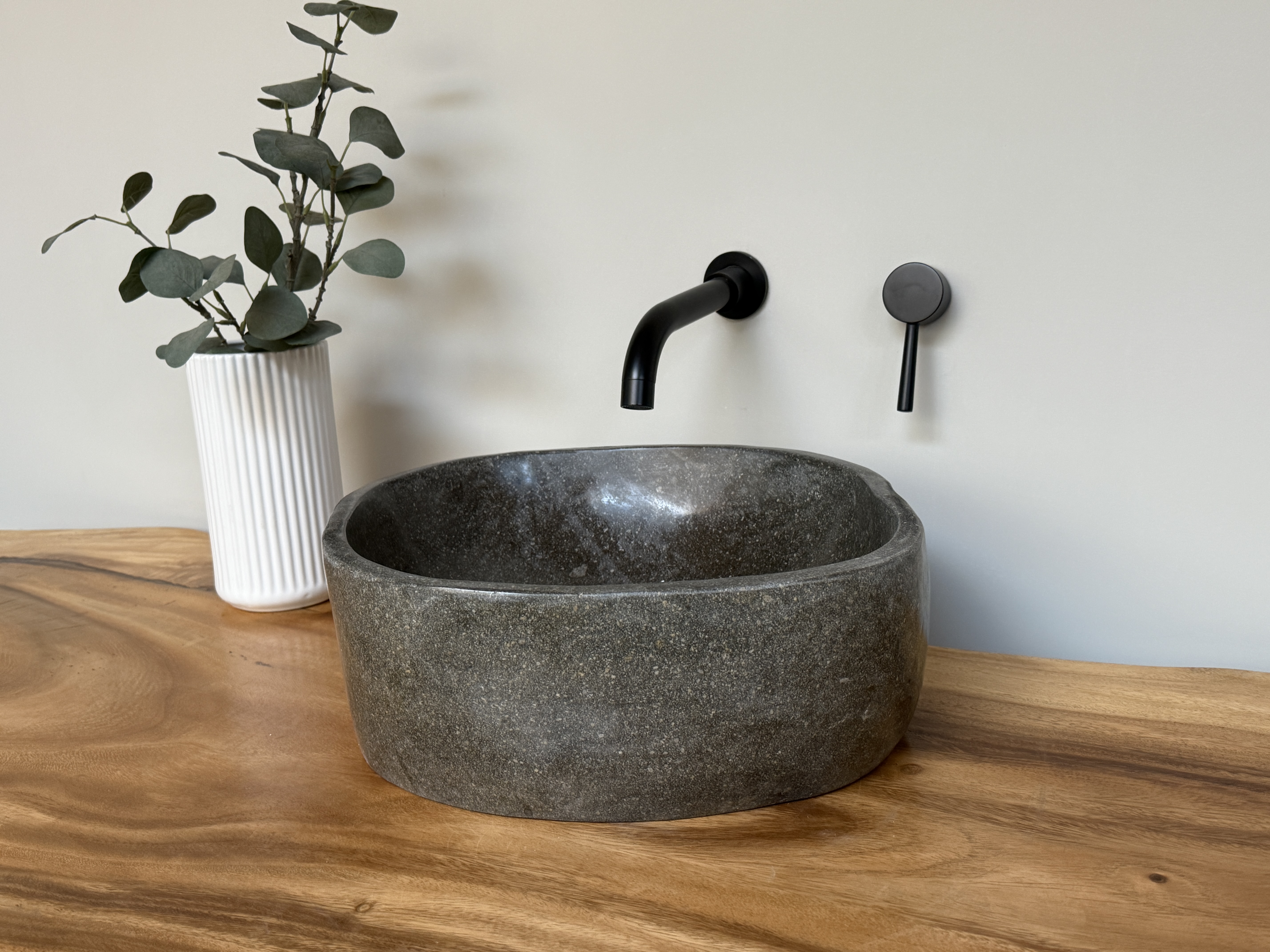 Nach einem Jahrzehnt langen Weg durch die Flüsse Indonesiens, rund gewaschen von der Strömung des Wassers, kommt es nun direkt zu dir in dein Badezimmer. Unterschiede in der Form, Farbgebung, Schattierung und Struktur sind Zeichen für die Individualität eines Waschbeckens aus Flussstein.