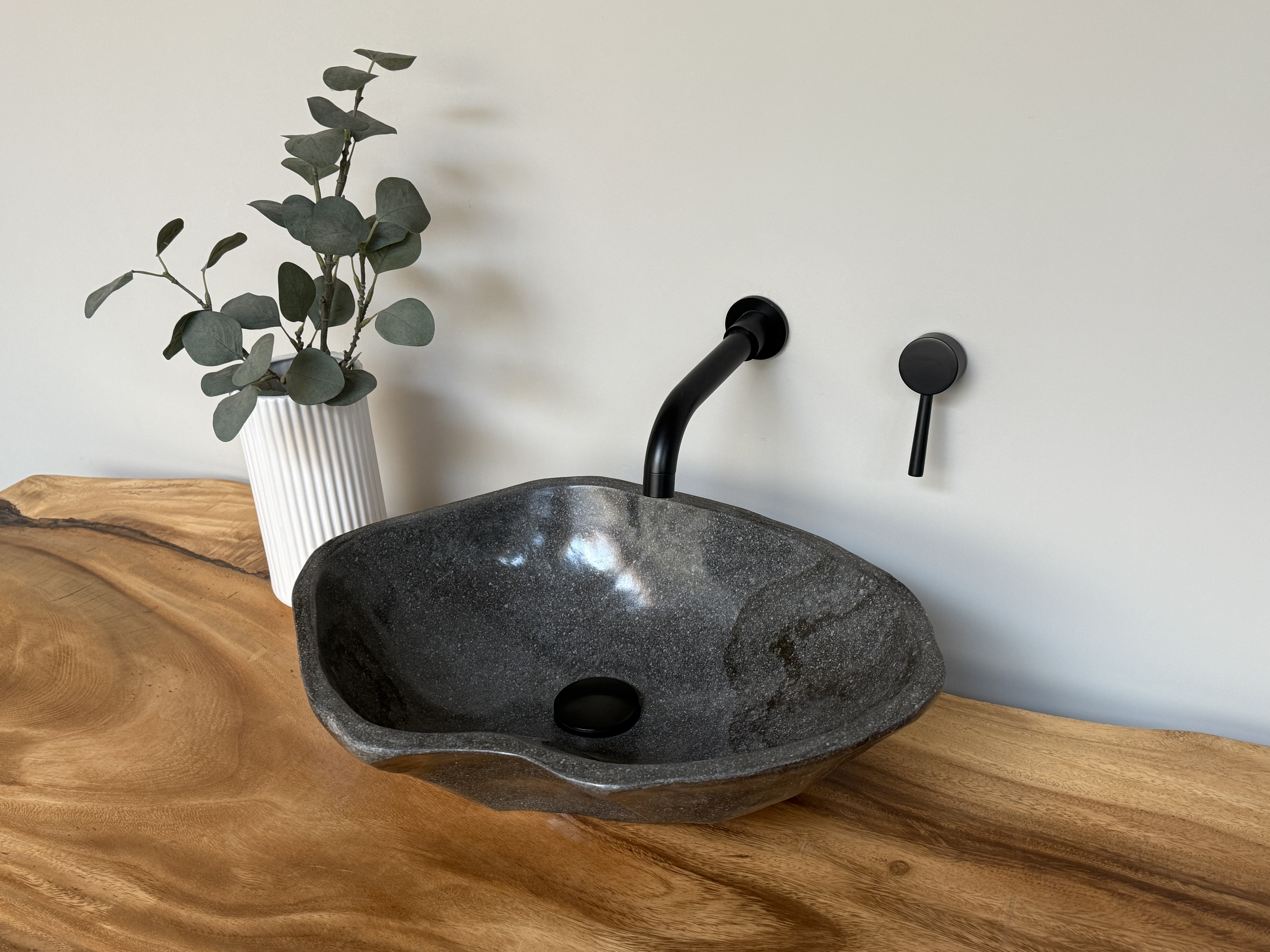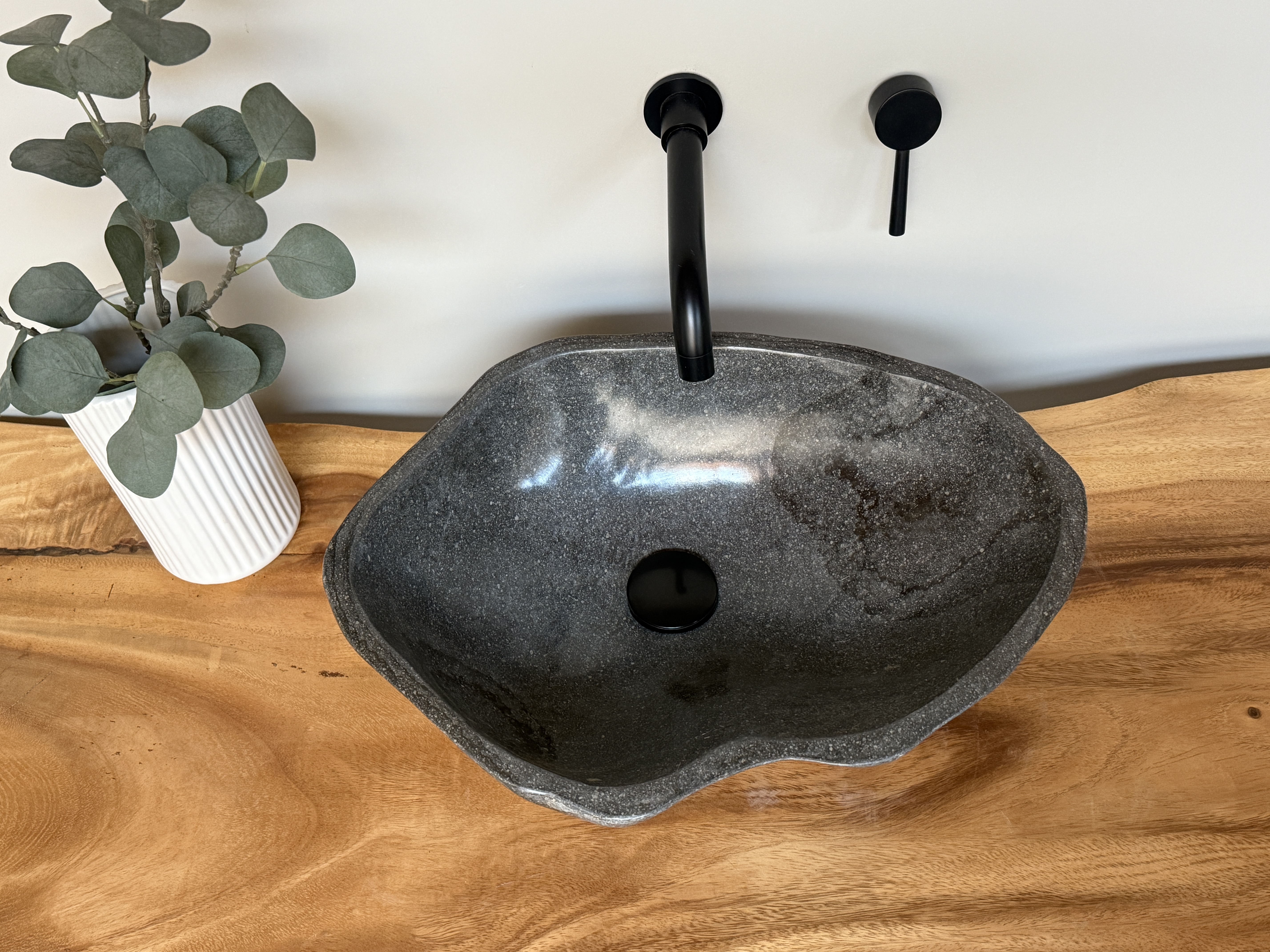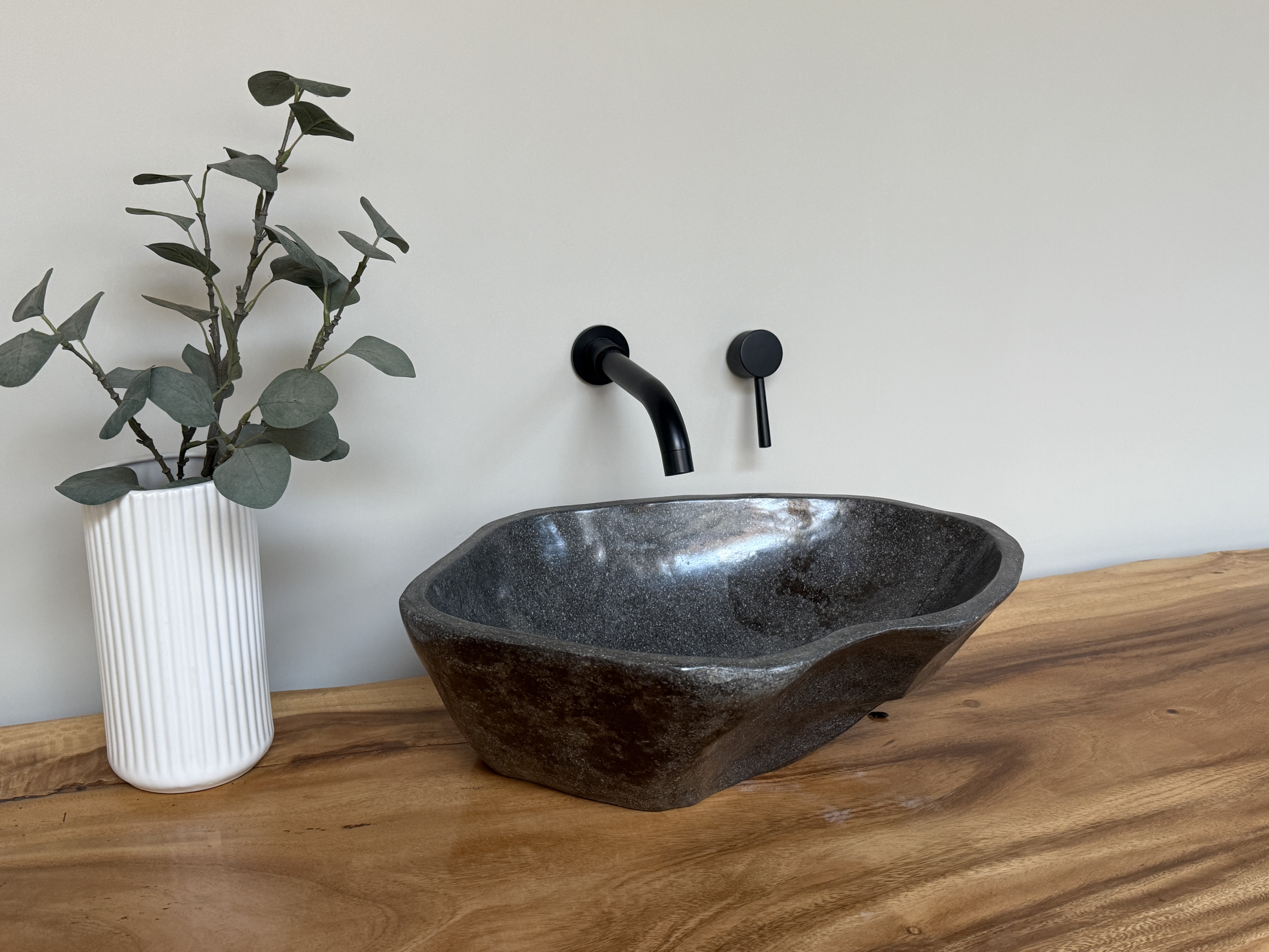Nach einem Jahrzehnt langen Weg durch die Flüsse Indonesiens, rund gewaschen von der Strömung des Wassers, kommt es nun direkt zu dir in dein Badezimmer. Unterschiede in der Form, Farbgebung, Schattierung und Struktur sind Zeichen für die Individualität eines Waschbeckens aus Flussstein.