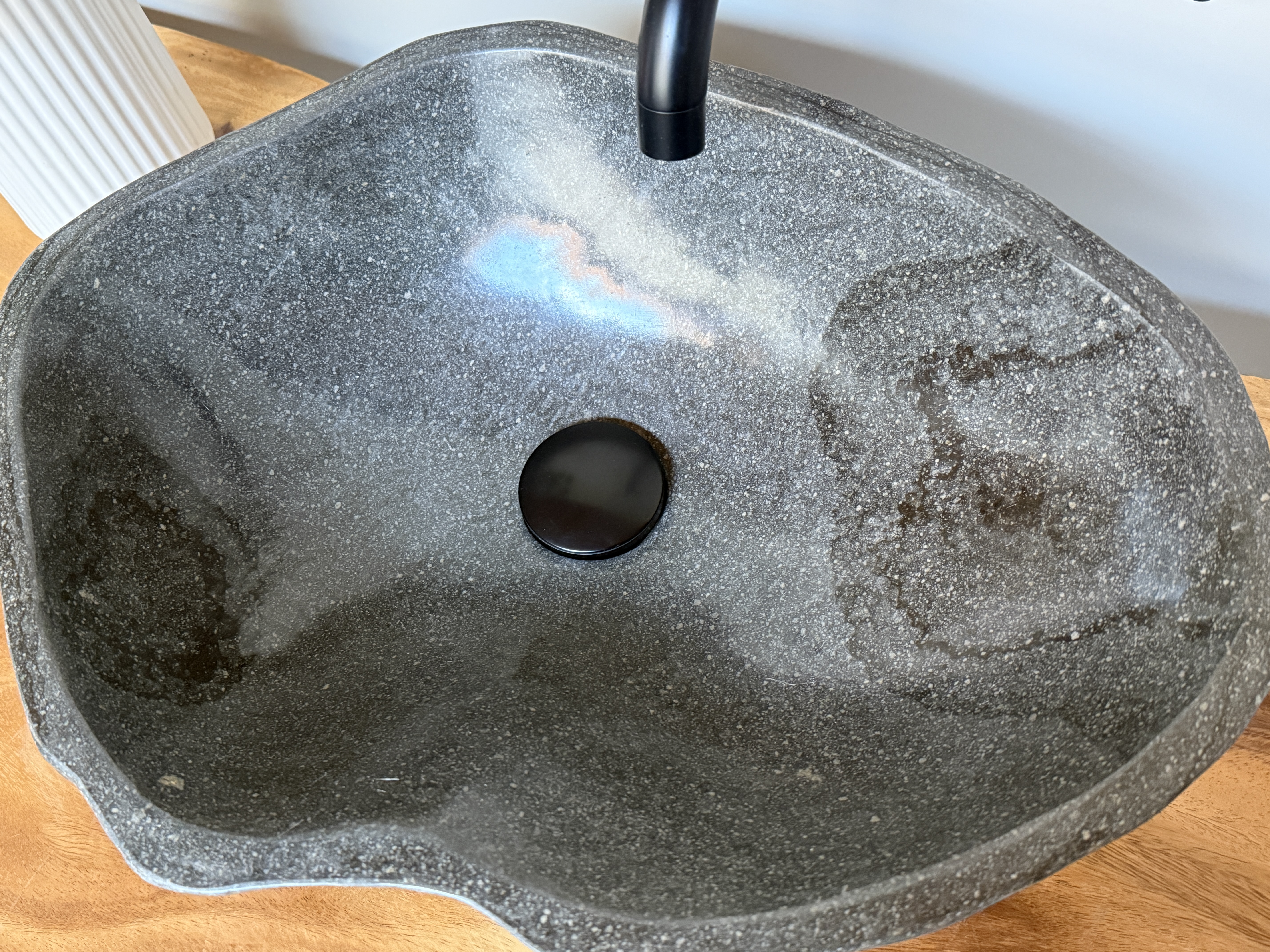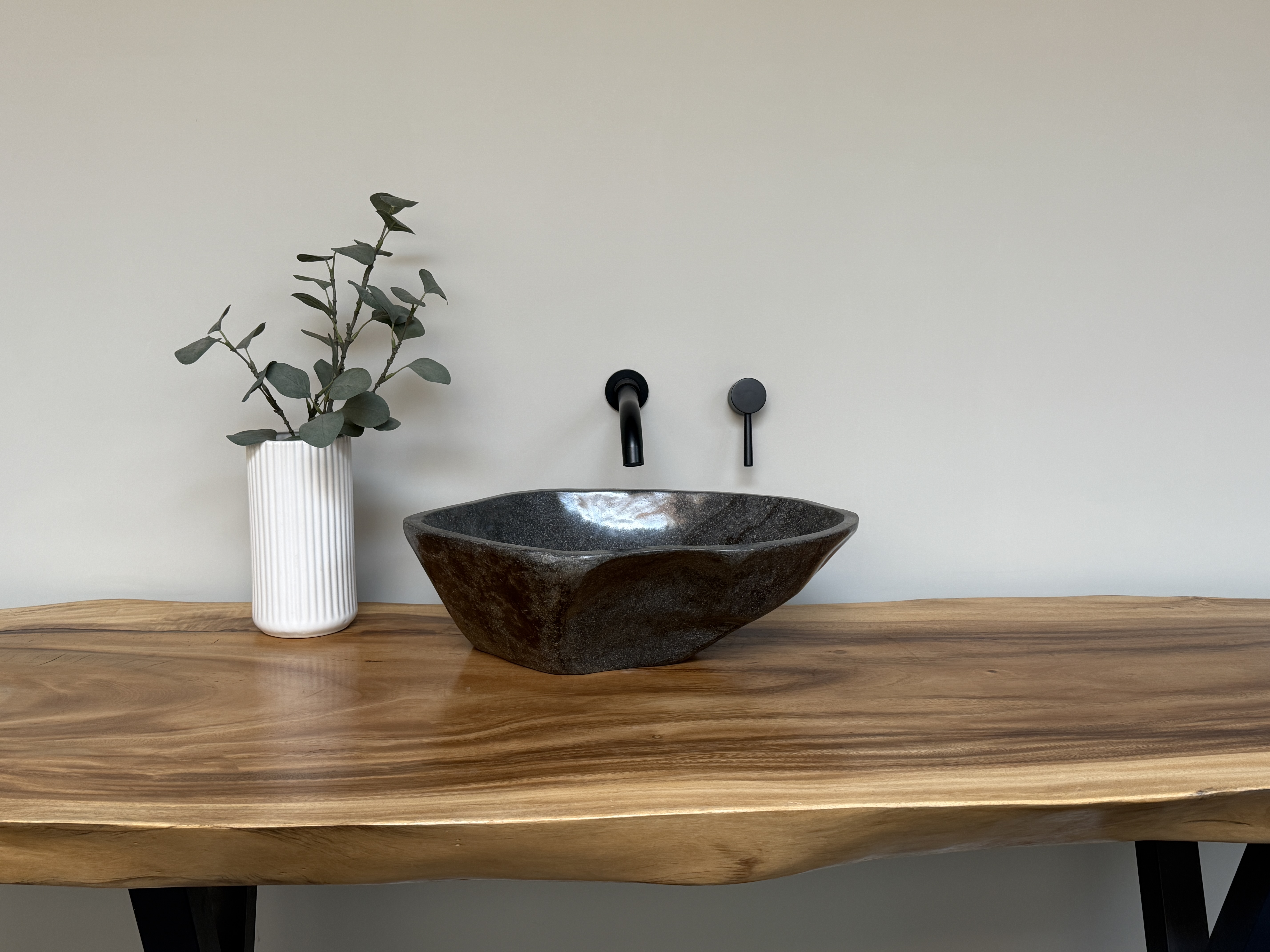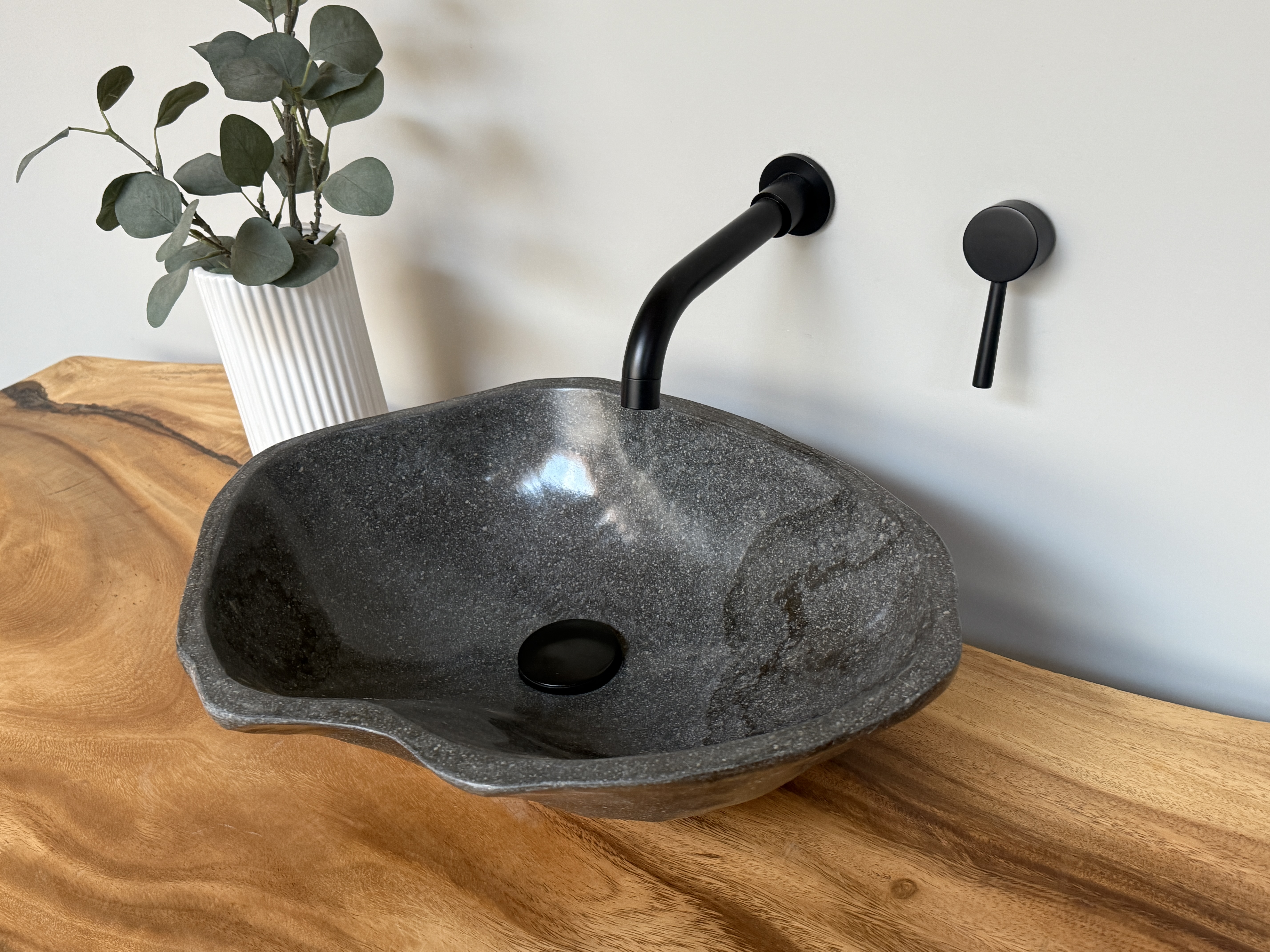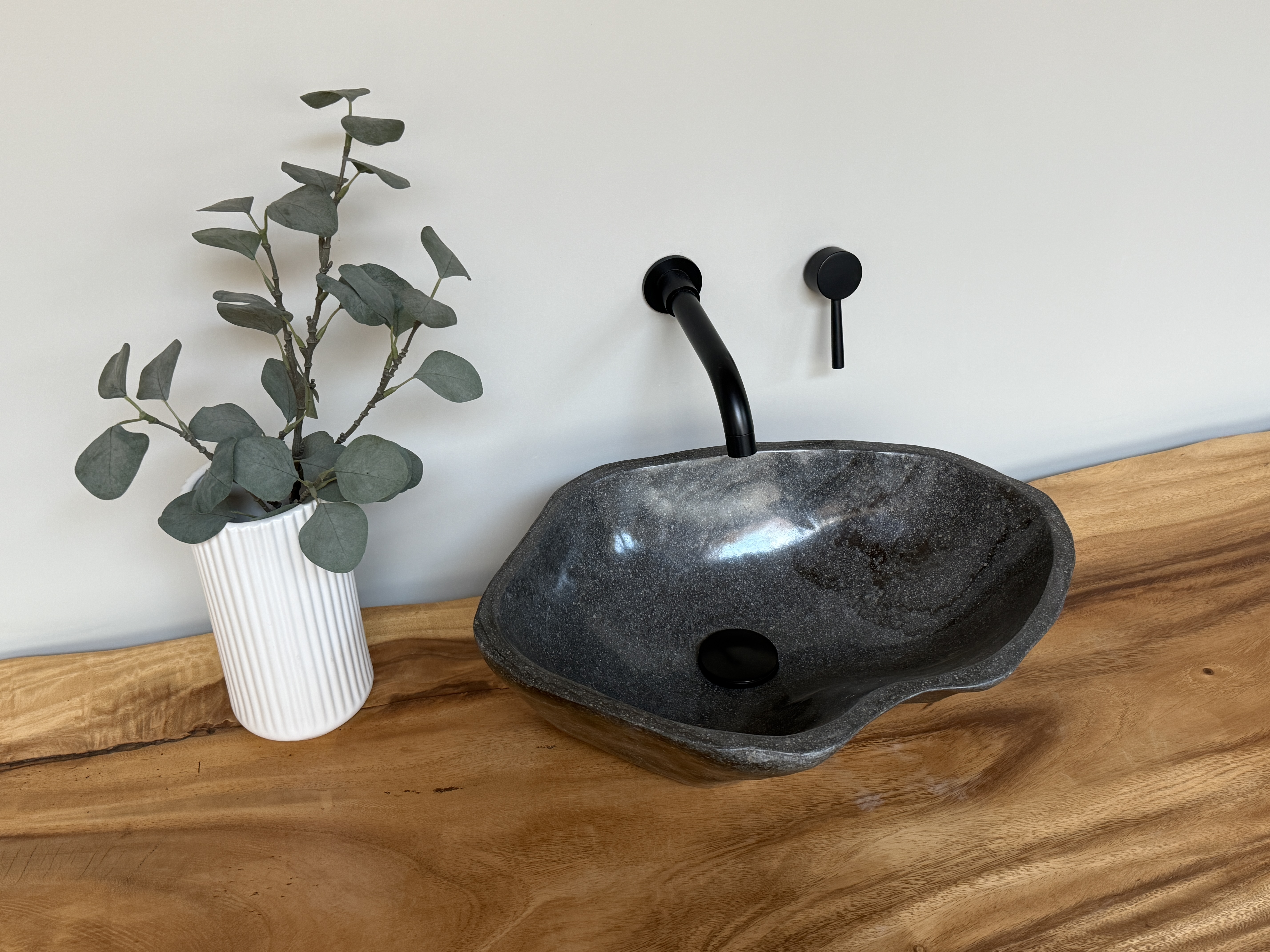 Nach einem Jahrzehnt langen Weg durch die Flüsse Indonesiens, rund gewaschen von der Strömung des Wassers, kommt es nun direkt zu dir in dein Badezimmer. Unterschiede in der Form, Farbgebung, Schattierung und Struktur sind Zeichen für die Individualität eines Waschbeckens aus Flussstein.