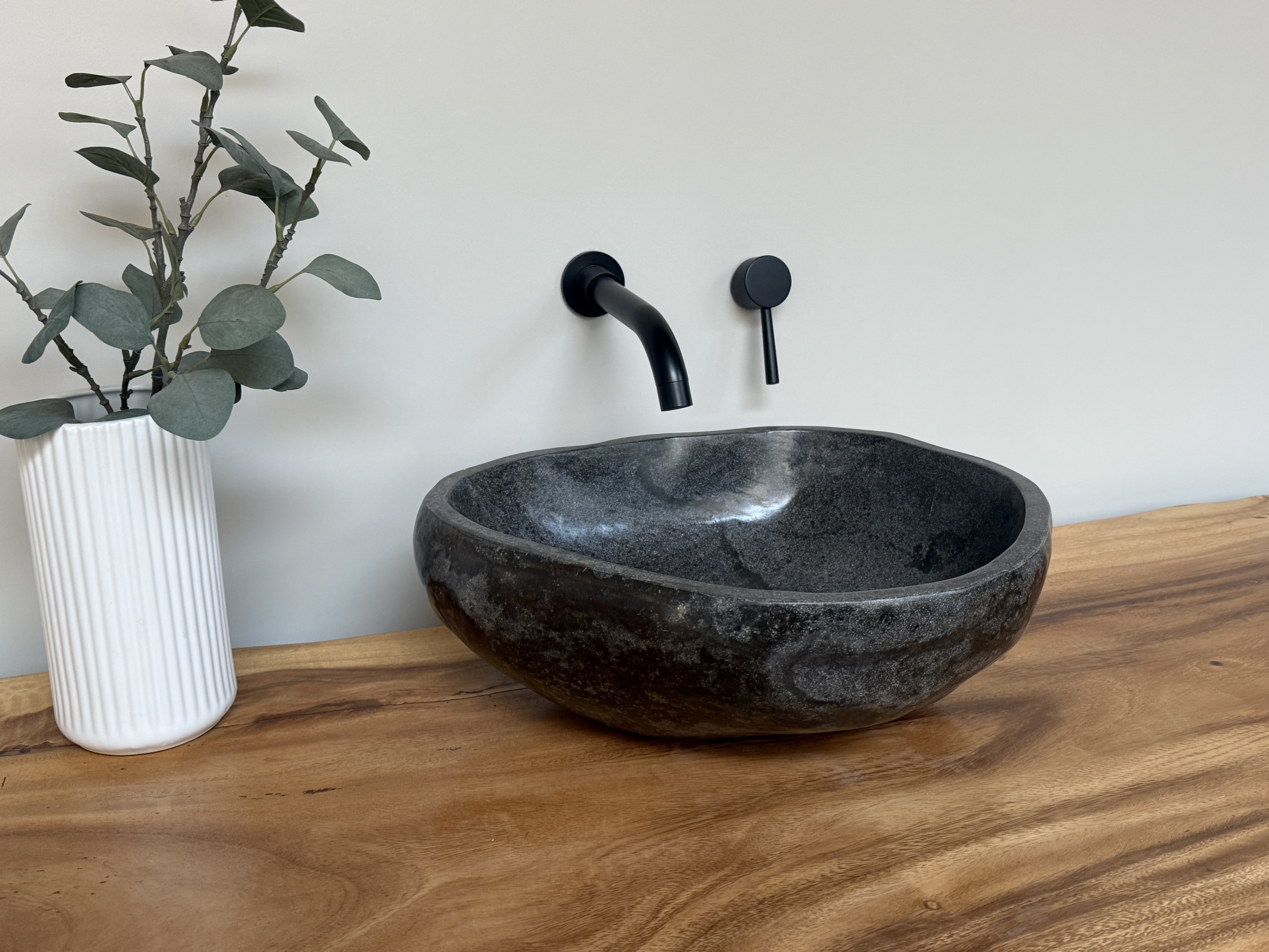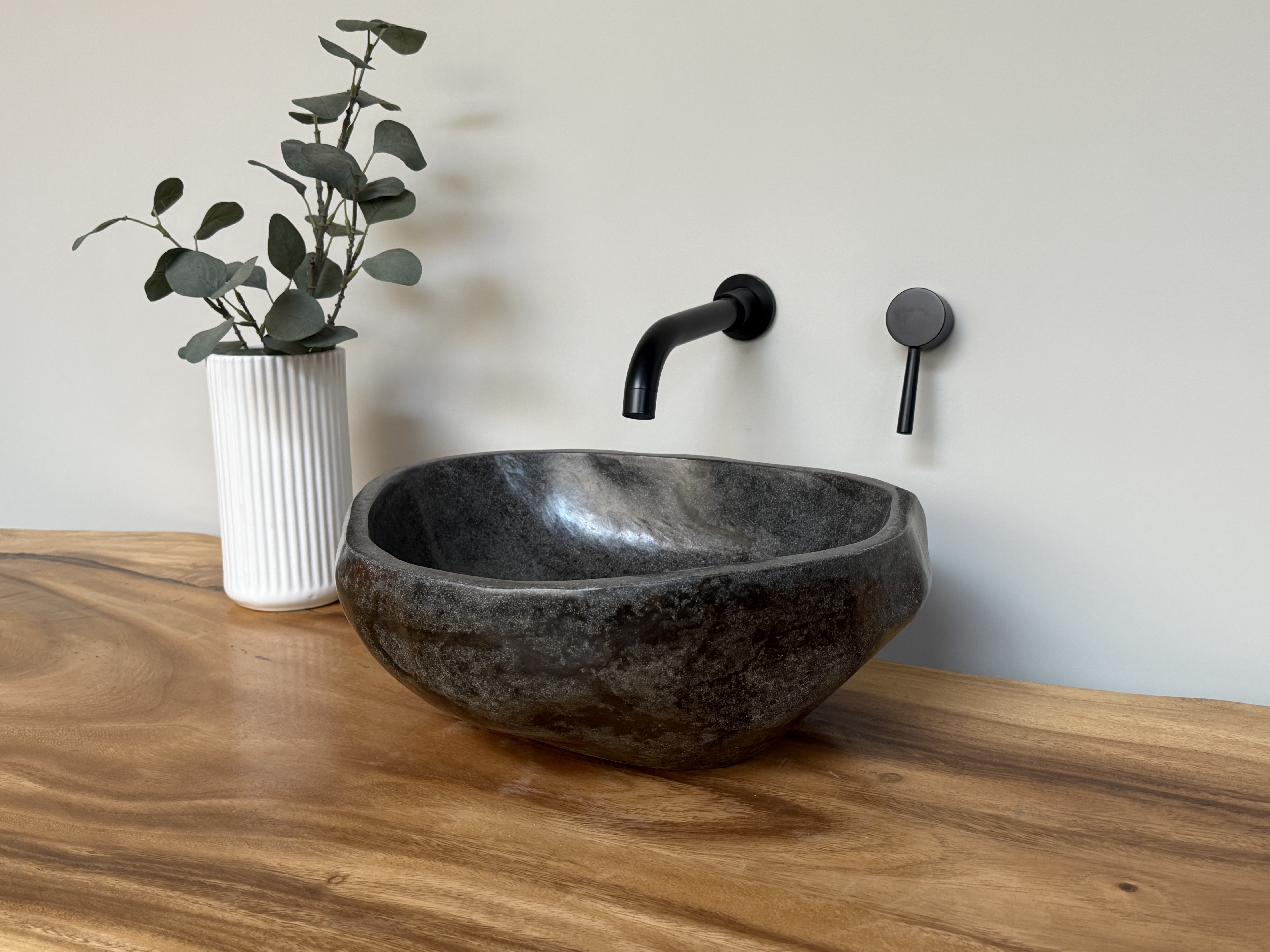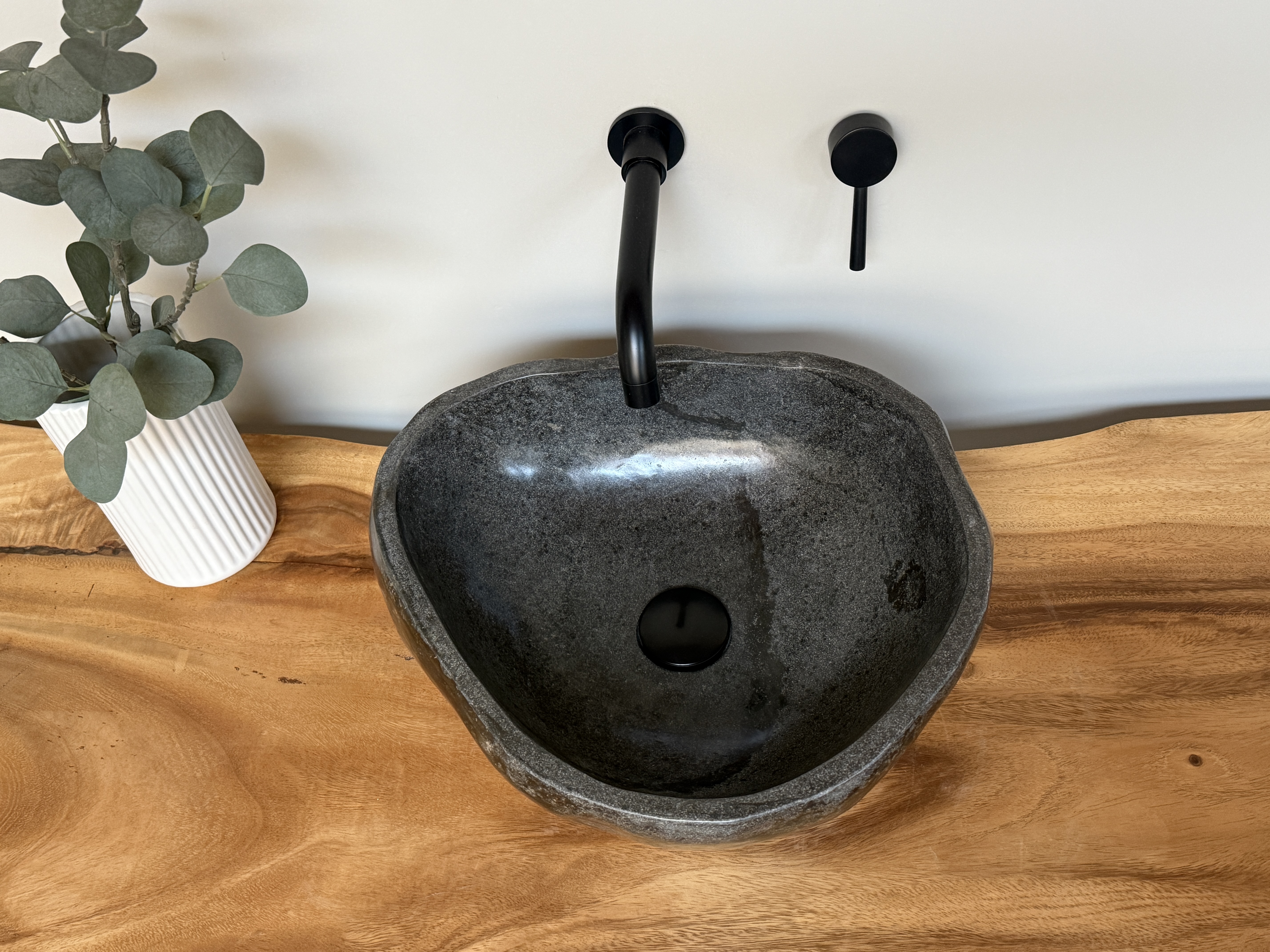 Nach einem Jahrzehnt langen Weg durch die Flüsse Indonesiens, rund gewaschen von der Strömung des Wassers, kommt es nun direkt zu dir in dein Badezimmer. Unterschiede in der Form, Farbgebung, Schattierung und Struktur sind Zeichen für die Individualität eines Waschbeckens aus Flussstein.