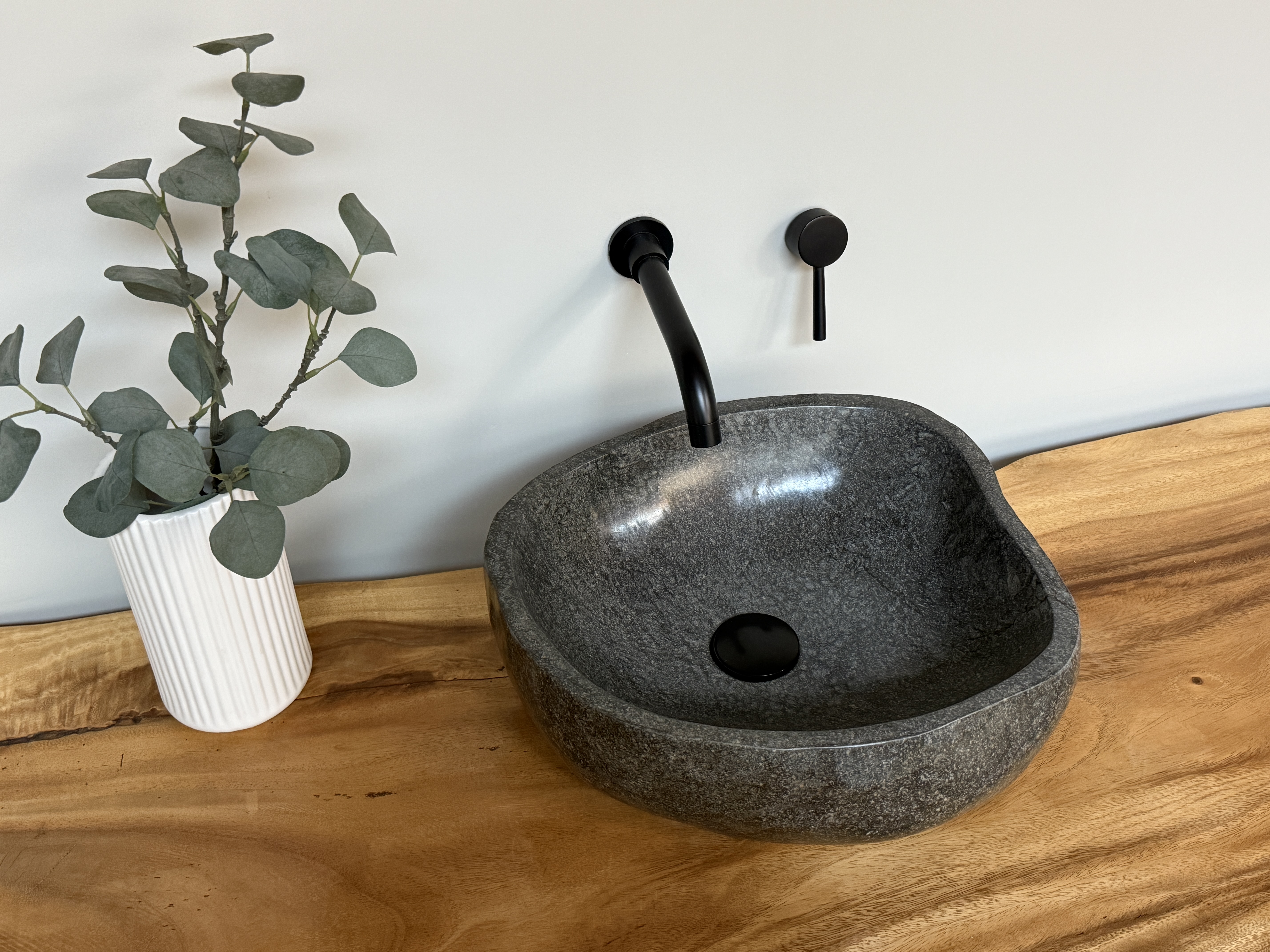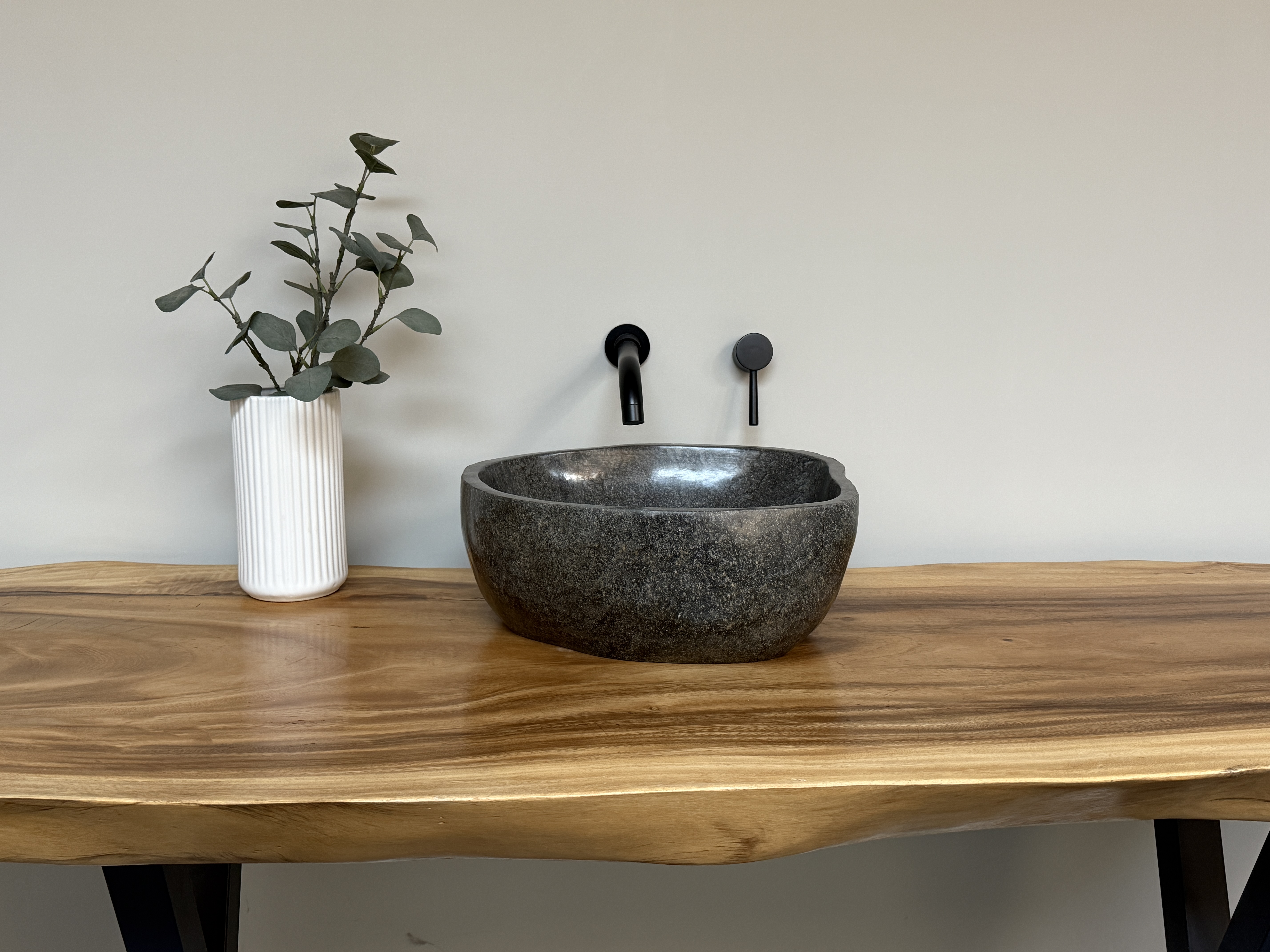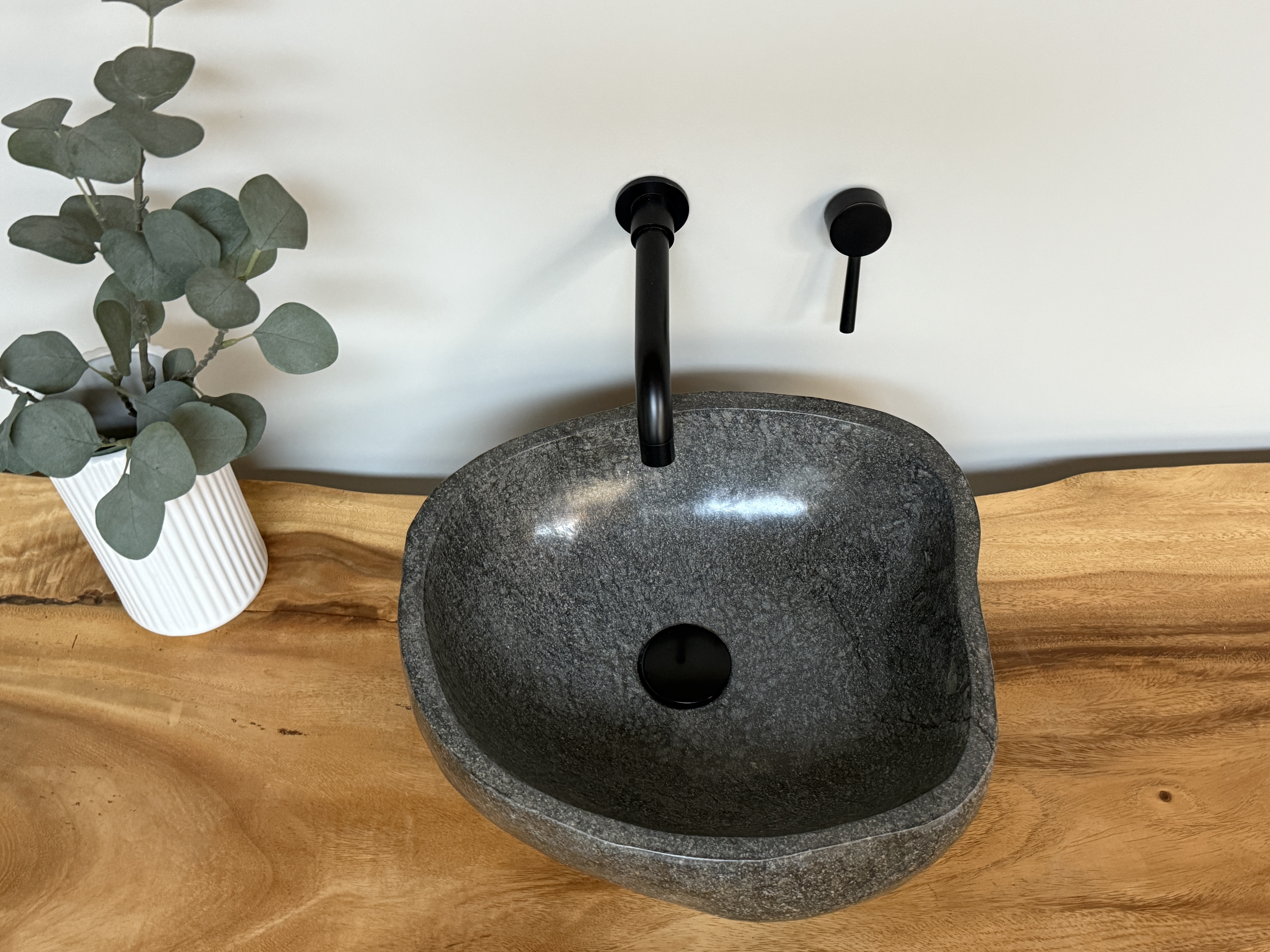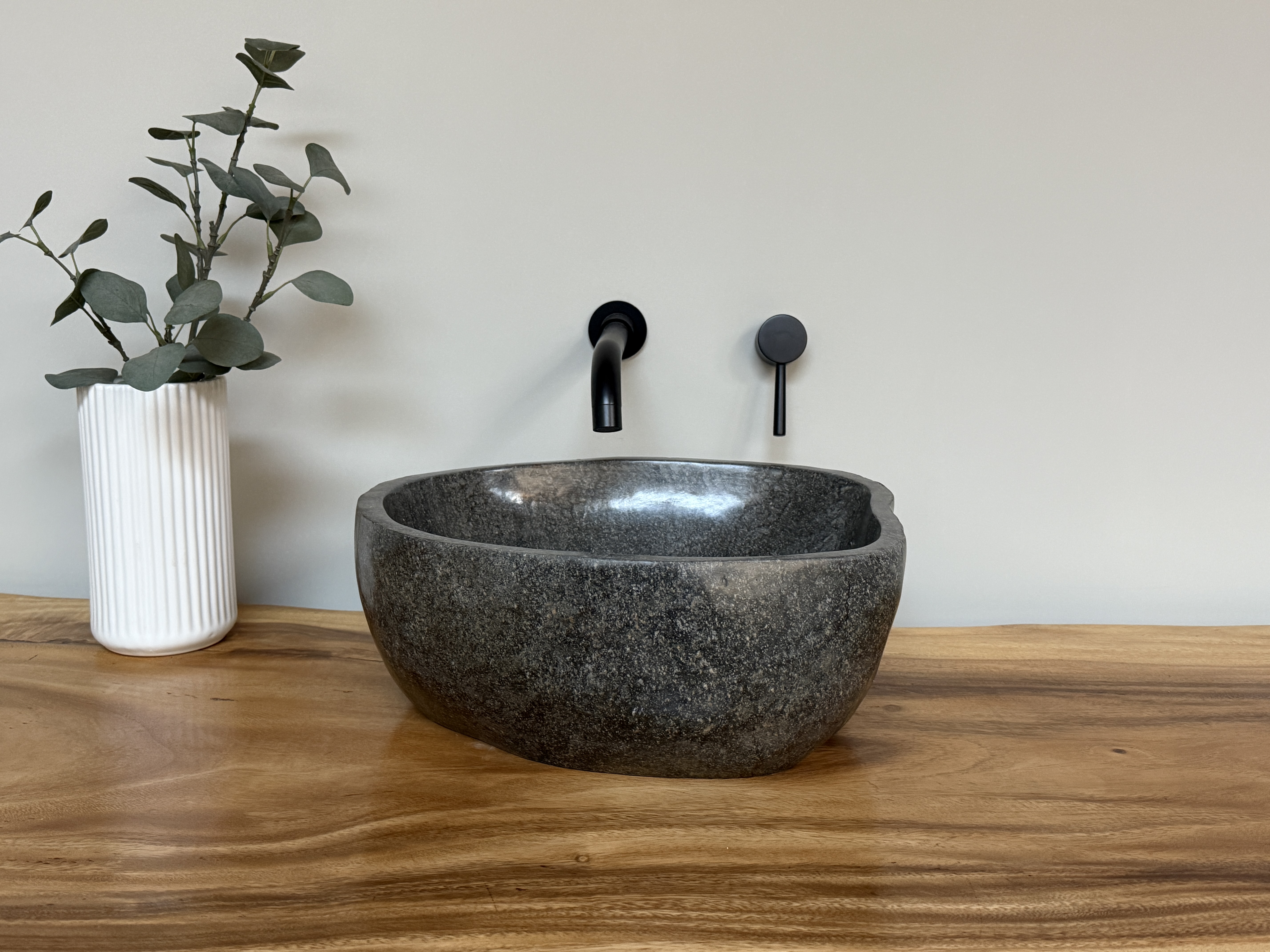 Nach einem Jahrzehnt langen Weg durch die Flüsse Indonesiens, rund gewaschen von der Strömung des Wassers, kommt es nun direkt zu dir in dein Badezimmer. Unterschiede in der Form, Farbgebung, Schattierung und Struktur sind Zeichen für die Individualität eines Waschbeckens aus Flussstein.