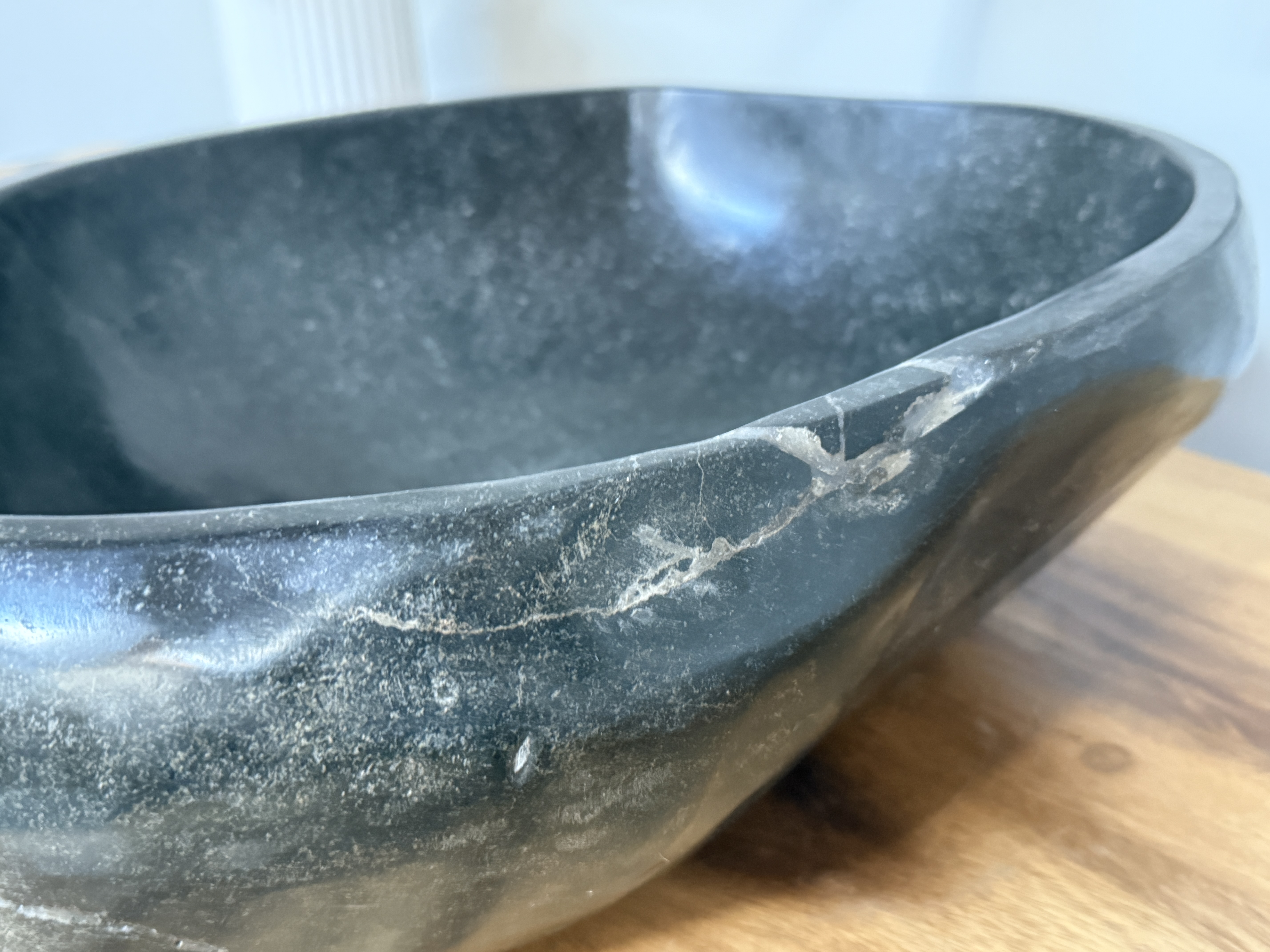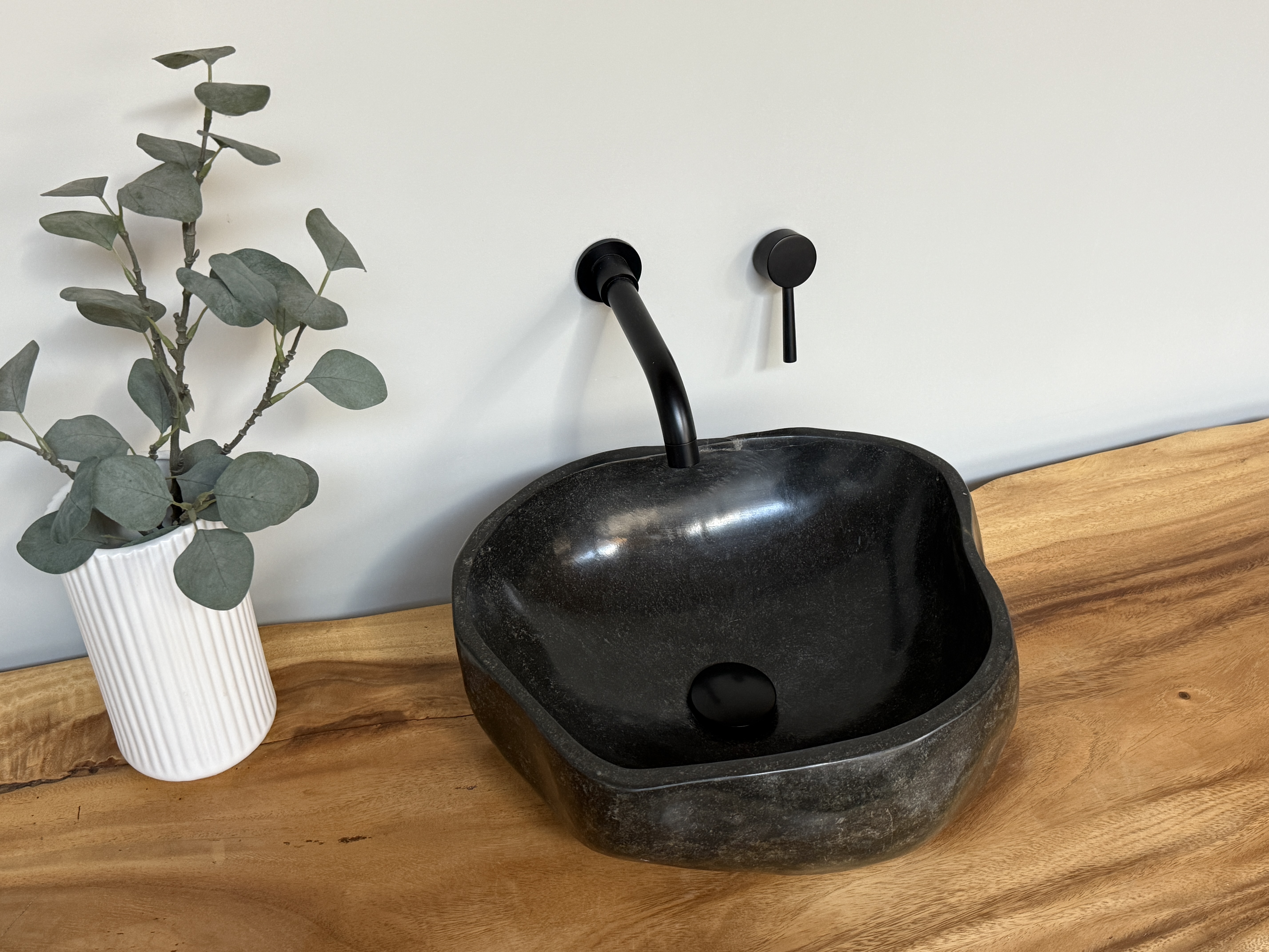 Nach einem Jahrzehnt langen Weg durch die Flüsse Indonesiens, rund gewaschen von der Strömung des Wassers, kommt es nun direkt zu dir in dein Badezimmer. Unterschiede in der Form, Farbgebung, Schattierung und Struktur sind Zeichen für die Individualität eines Waschbeckens aus Flussstein.