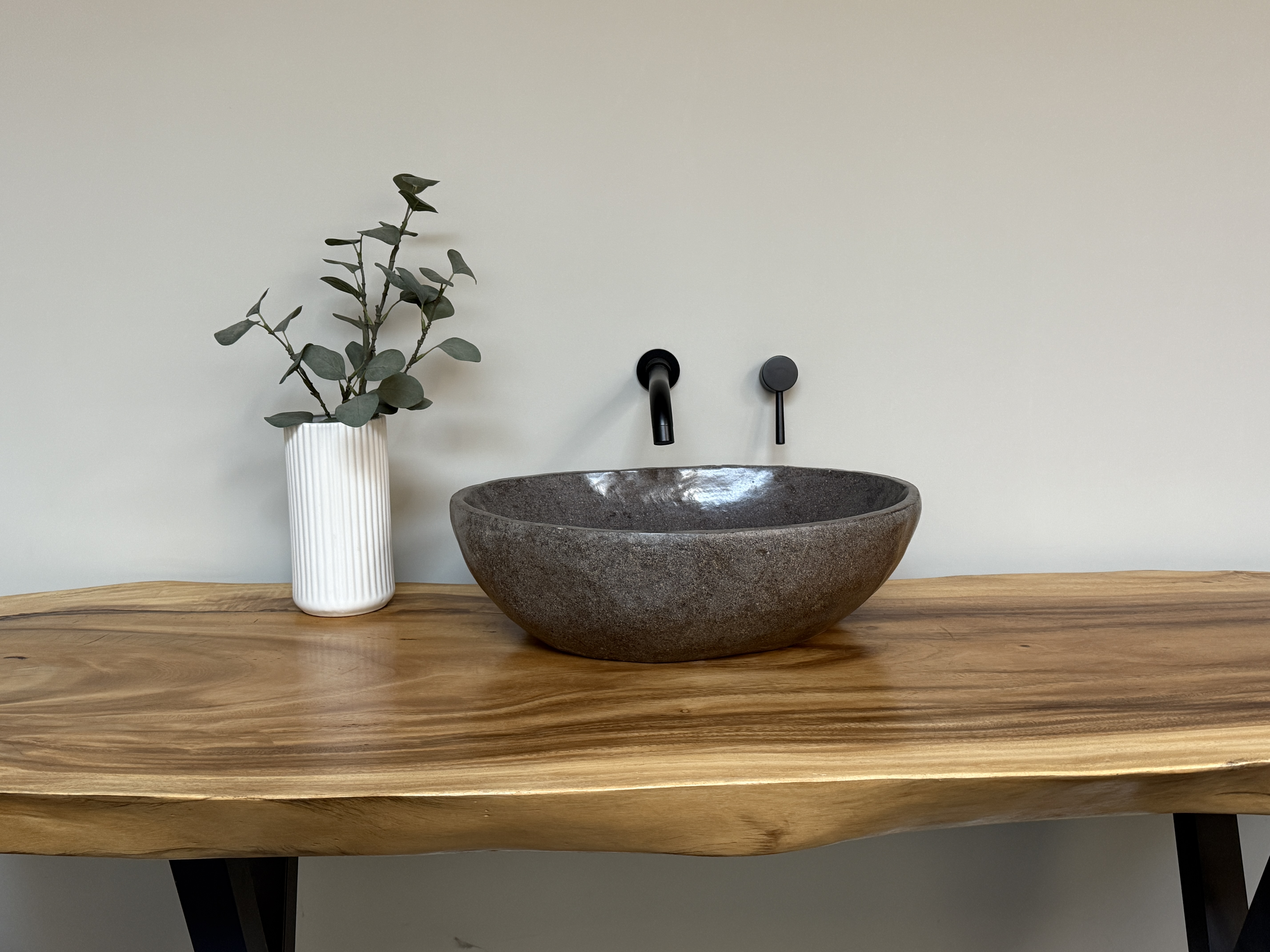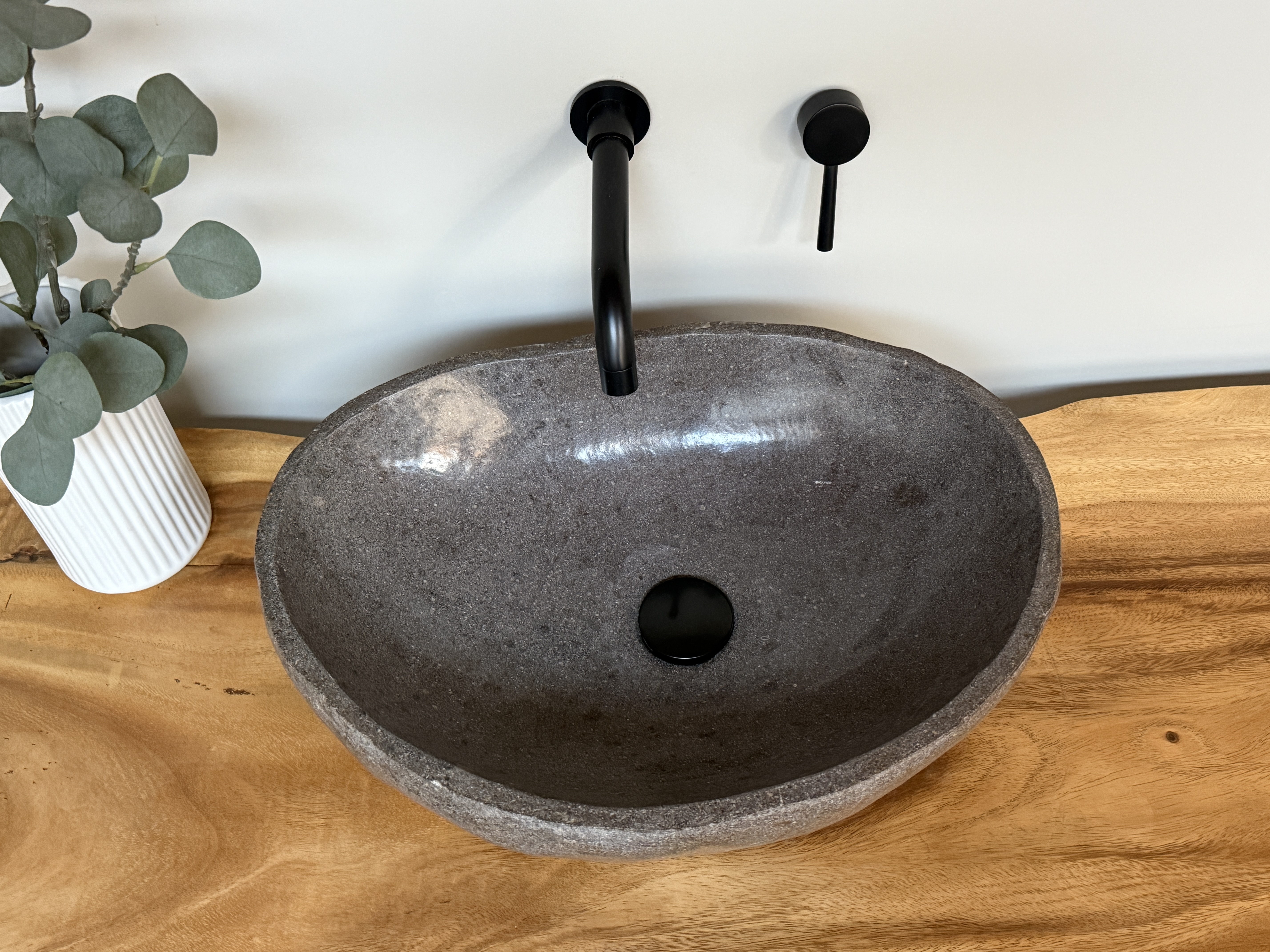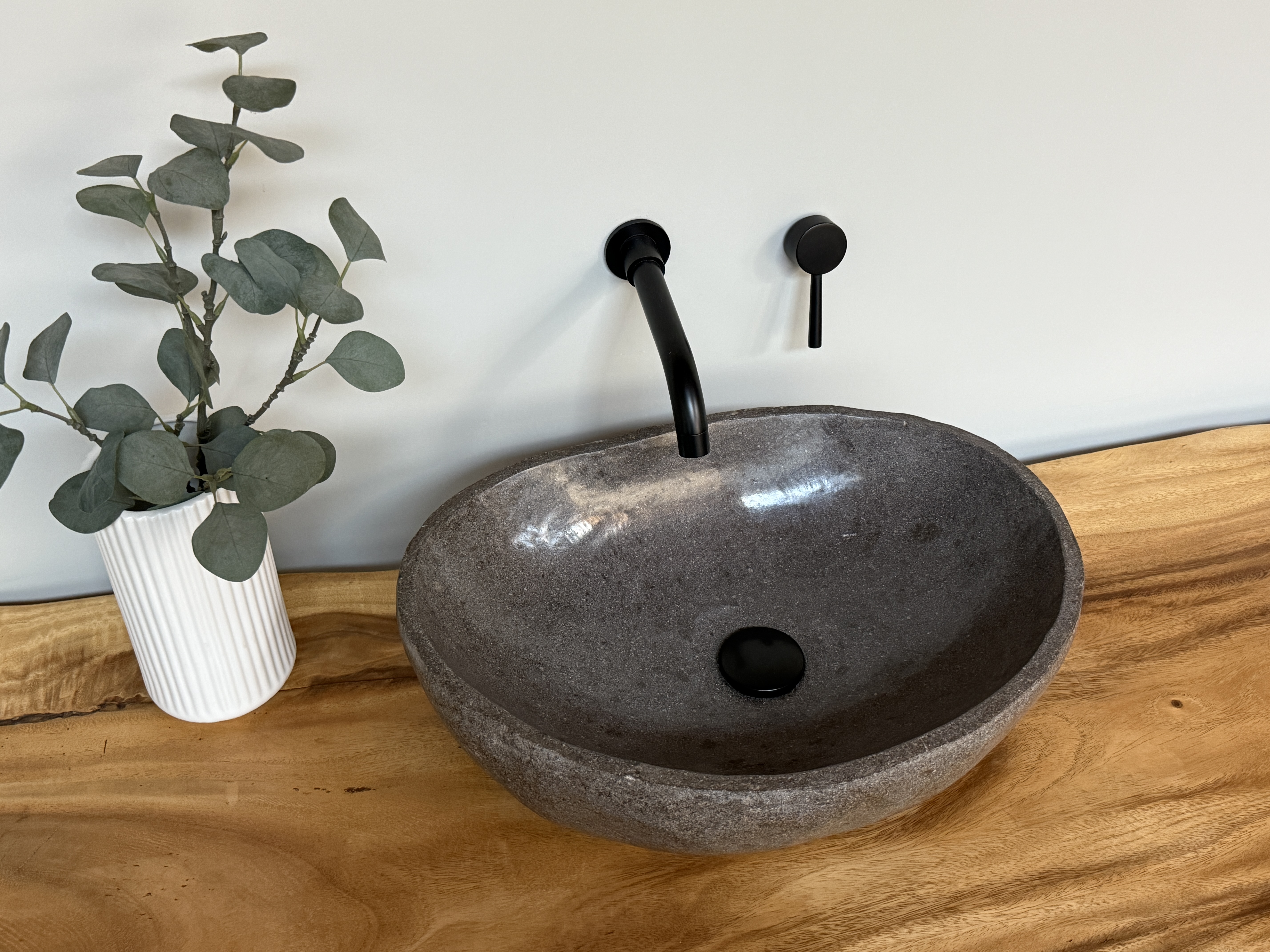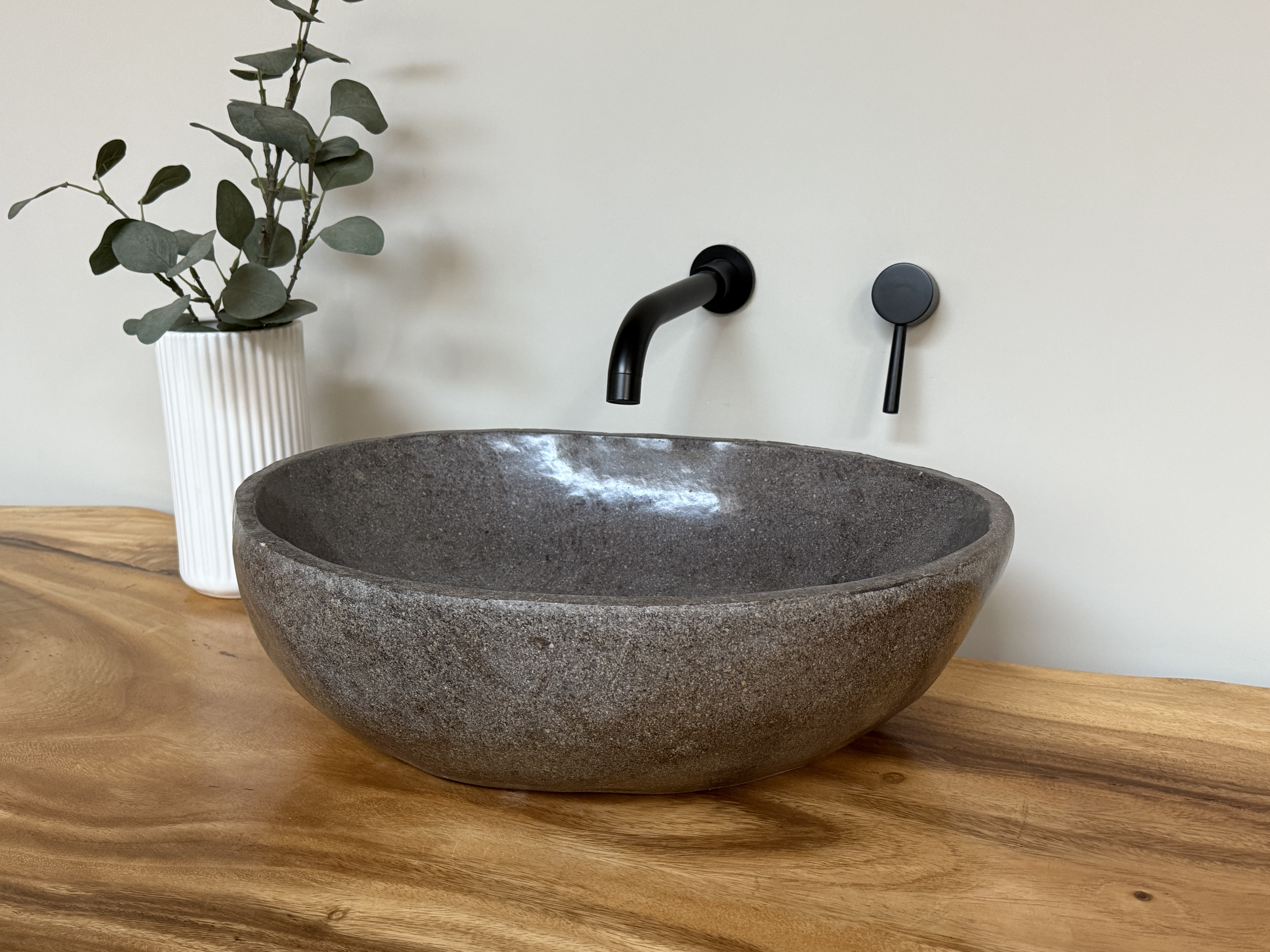 Nach einem Jahrzehnt langen Weg durch die Flüsse Indonesiens, rund gewaschen von der Strömung des Wassers, kommt es nun direkt zu dir in dein Badezimmer. Unterschiede in der Form, Farbgebung, Schattierung und Struktur sind Zeichen für die Individualität eines Waschbeckens aus Flussstein.