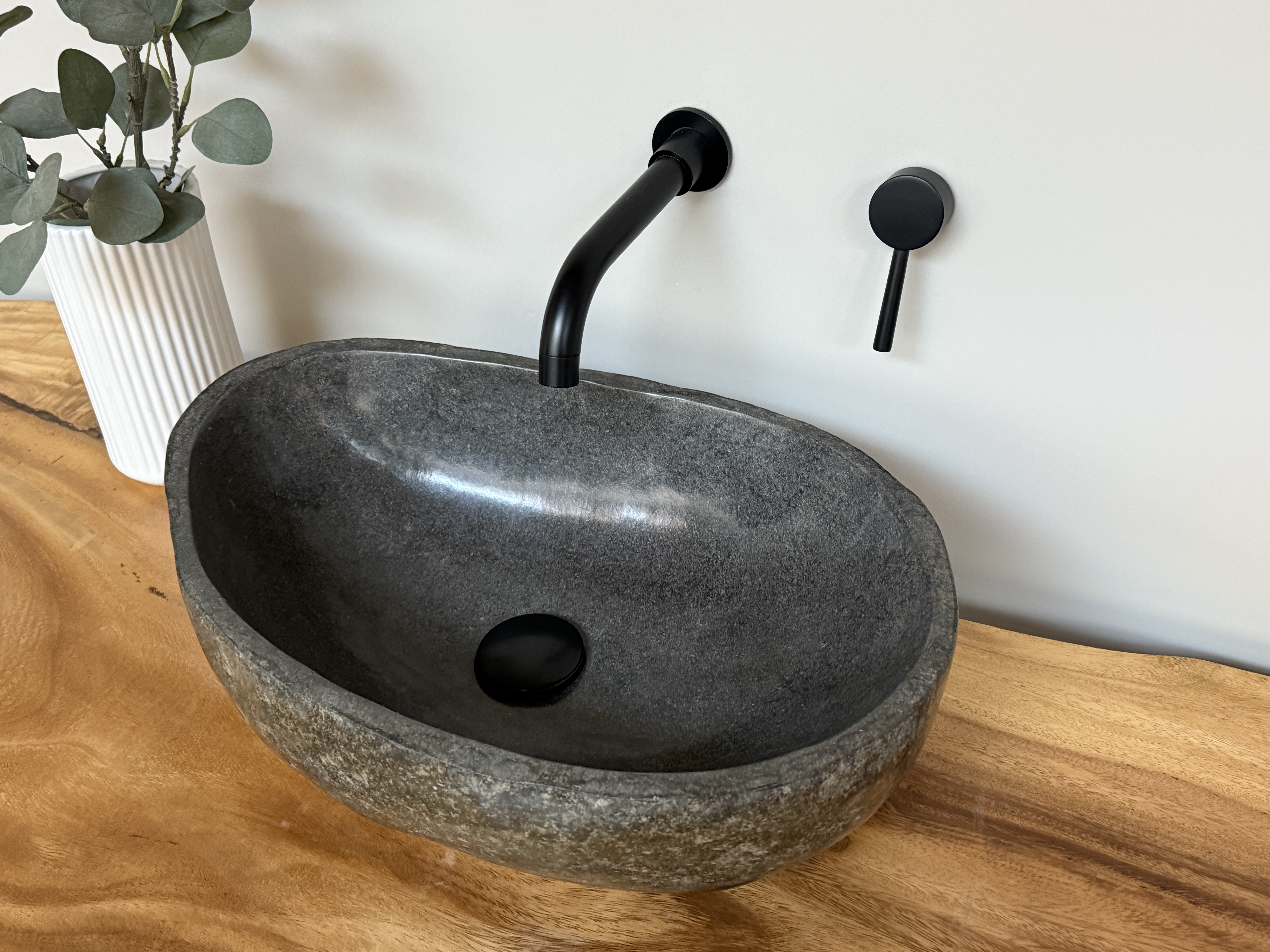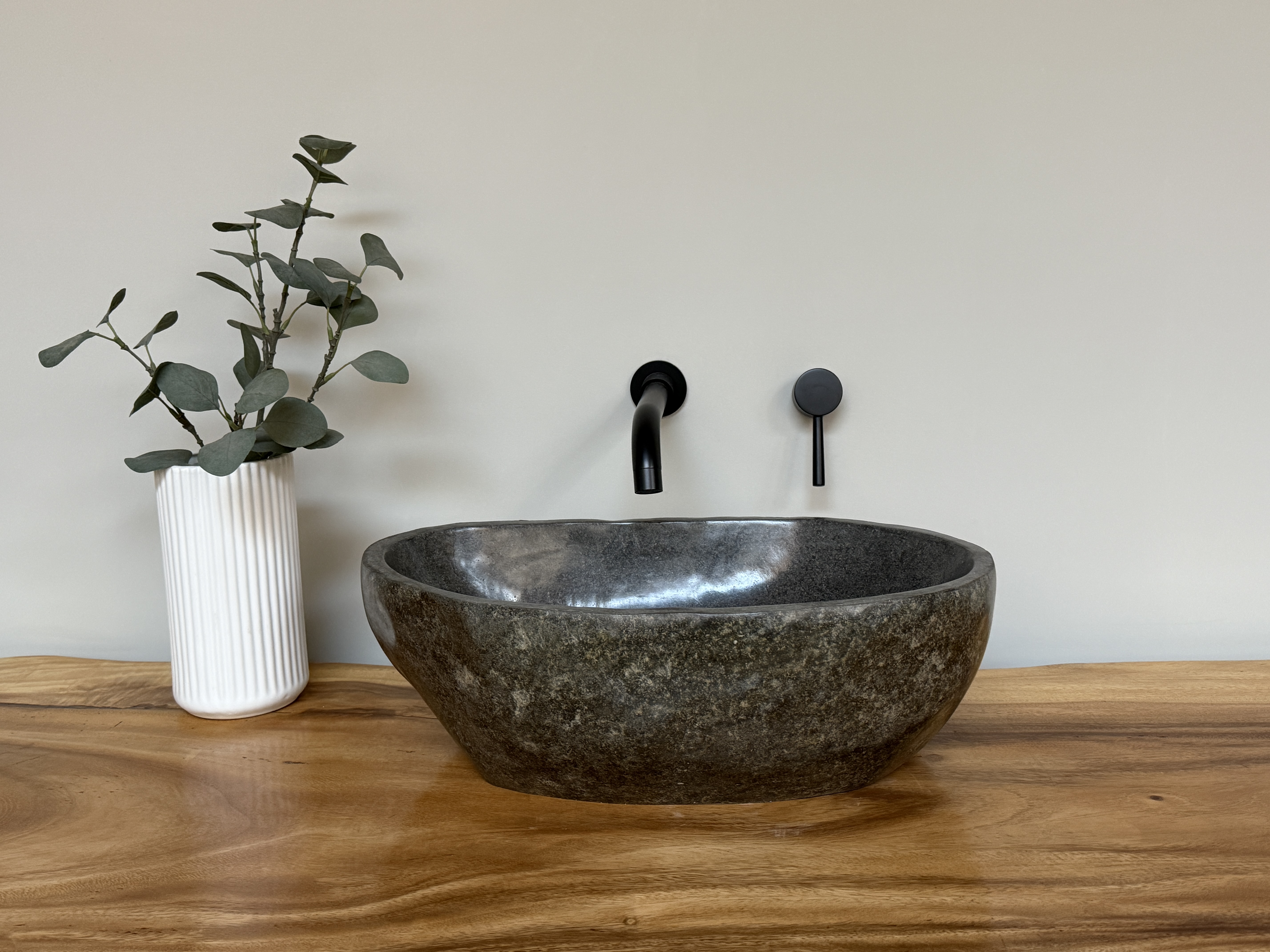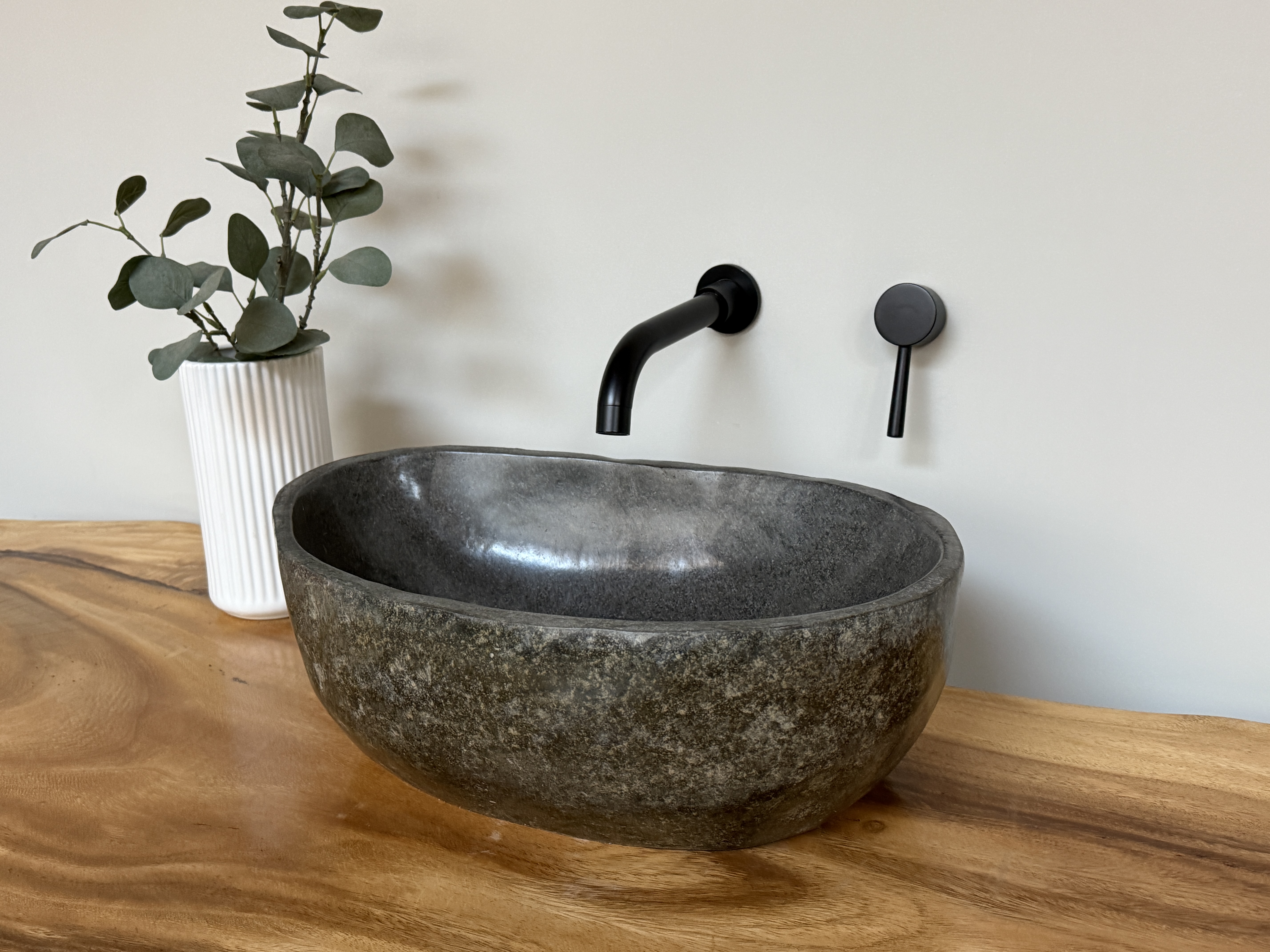 Nach einem Jahrzehnt langen Weg durch die Flüsse Indonesiens, rund gewaschen von der Strömung des Wassers, kommt es nun direkt zu dir in dein Badezimmer. Unterschiede in der Form, Farbgebung, Schattierung und Struktur sind Zeichen für die Individualität eines Waschbeckens aus Flussstein.