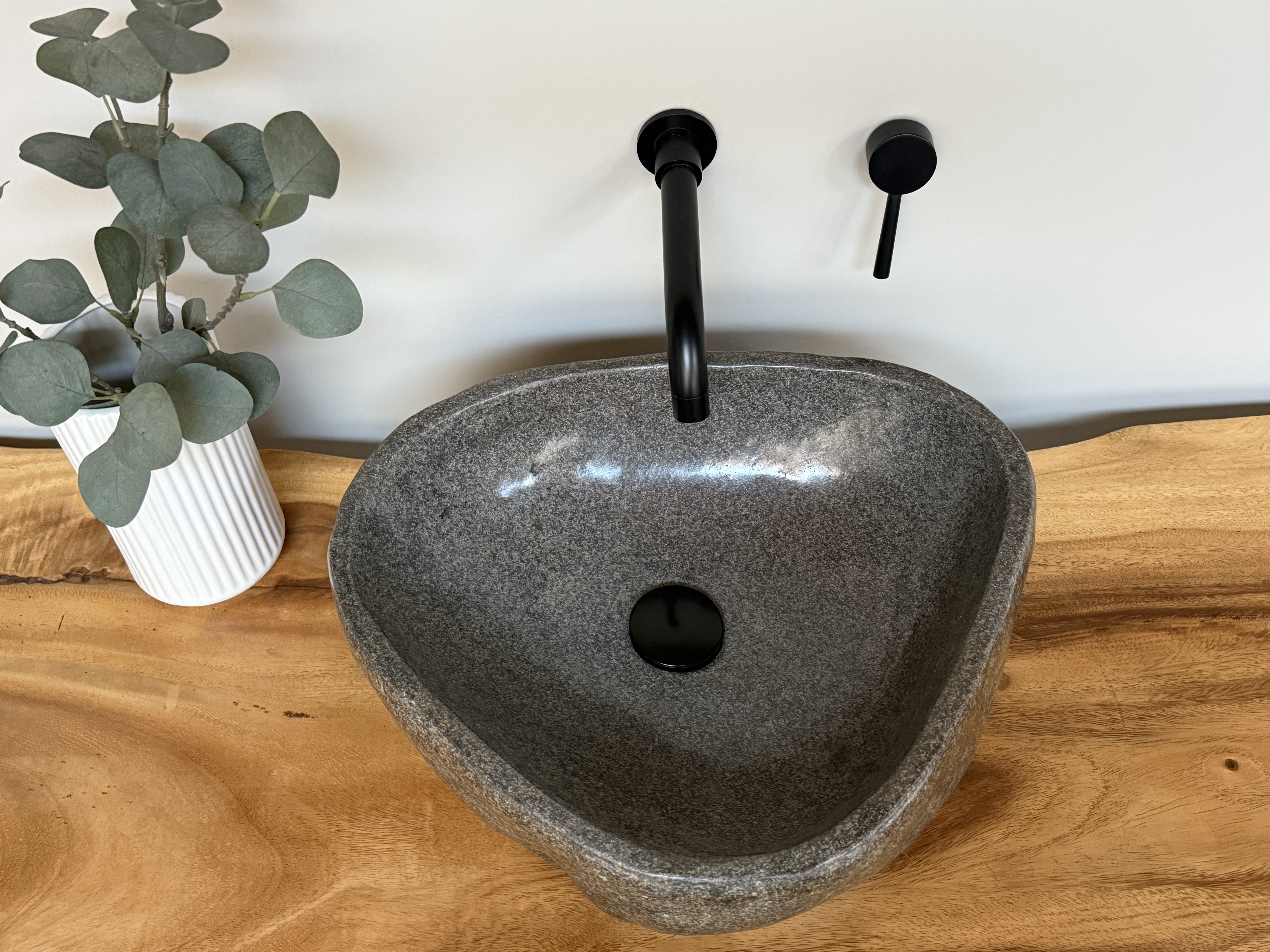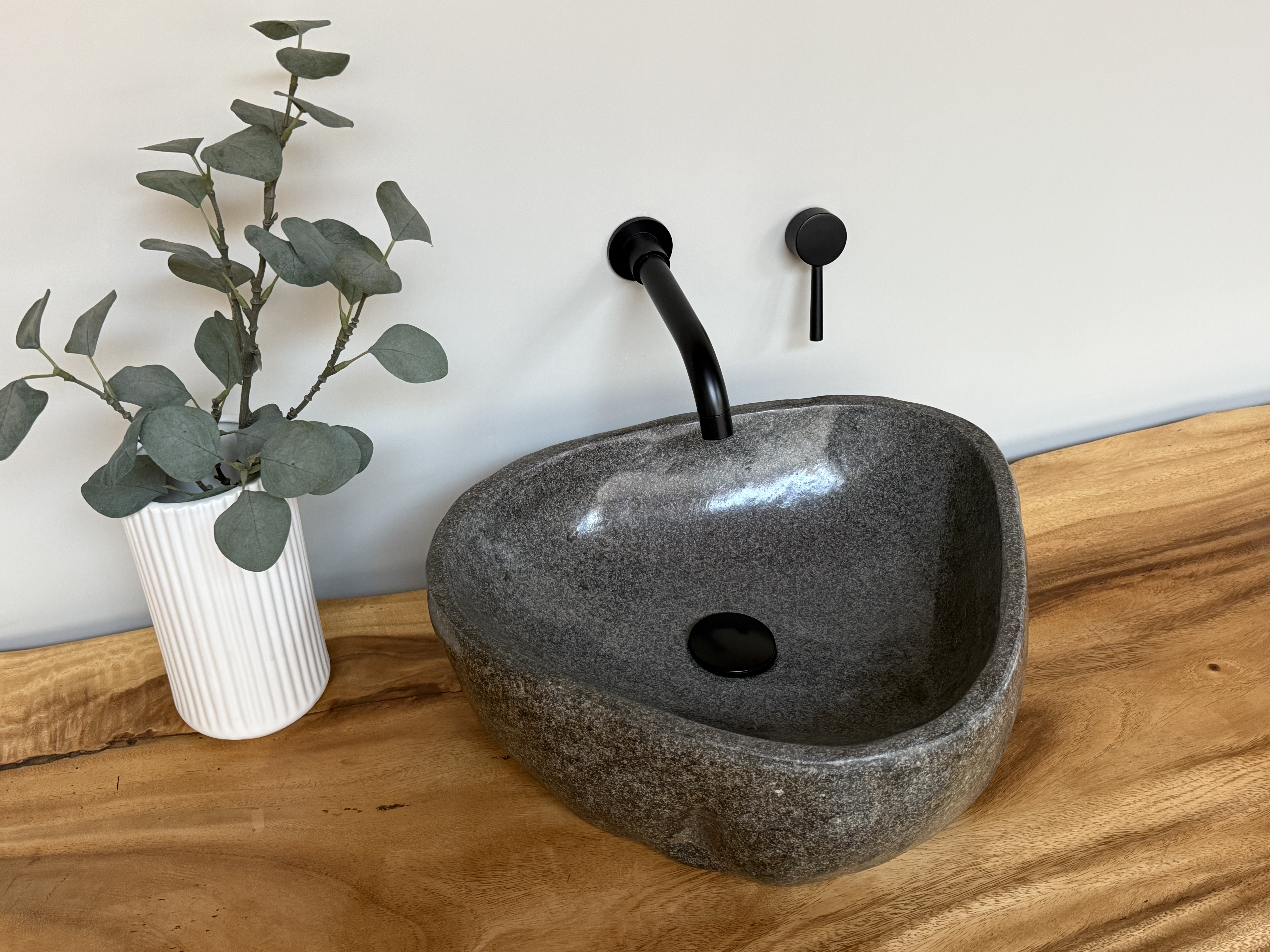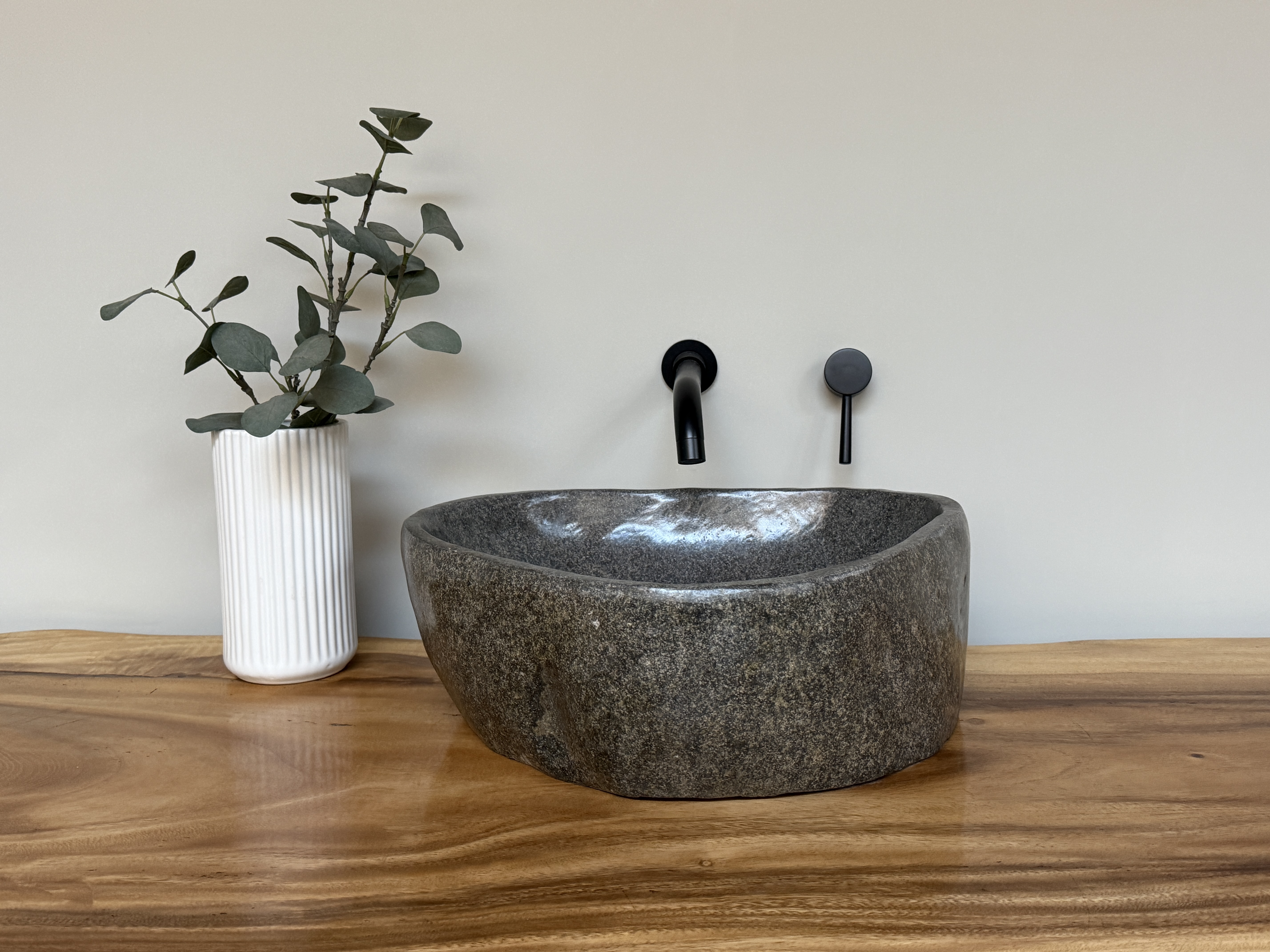 Nach einem Jahrzehnt langen Weg durch die Flüsse Indonesiens, rund gewaschen von der Strömung des Wassers, kommt es nun direkt zu dir in dein Badezimmer. Unterschiede in der Form, Farbgebung, Schattierung und Struktur sind Zeichen für die Individualität eines Waschbeckens aus Flussstein.