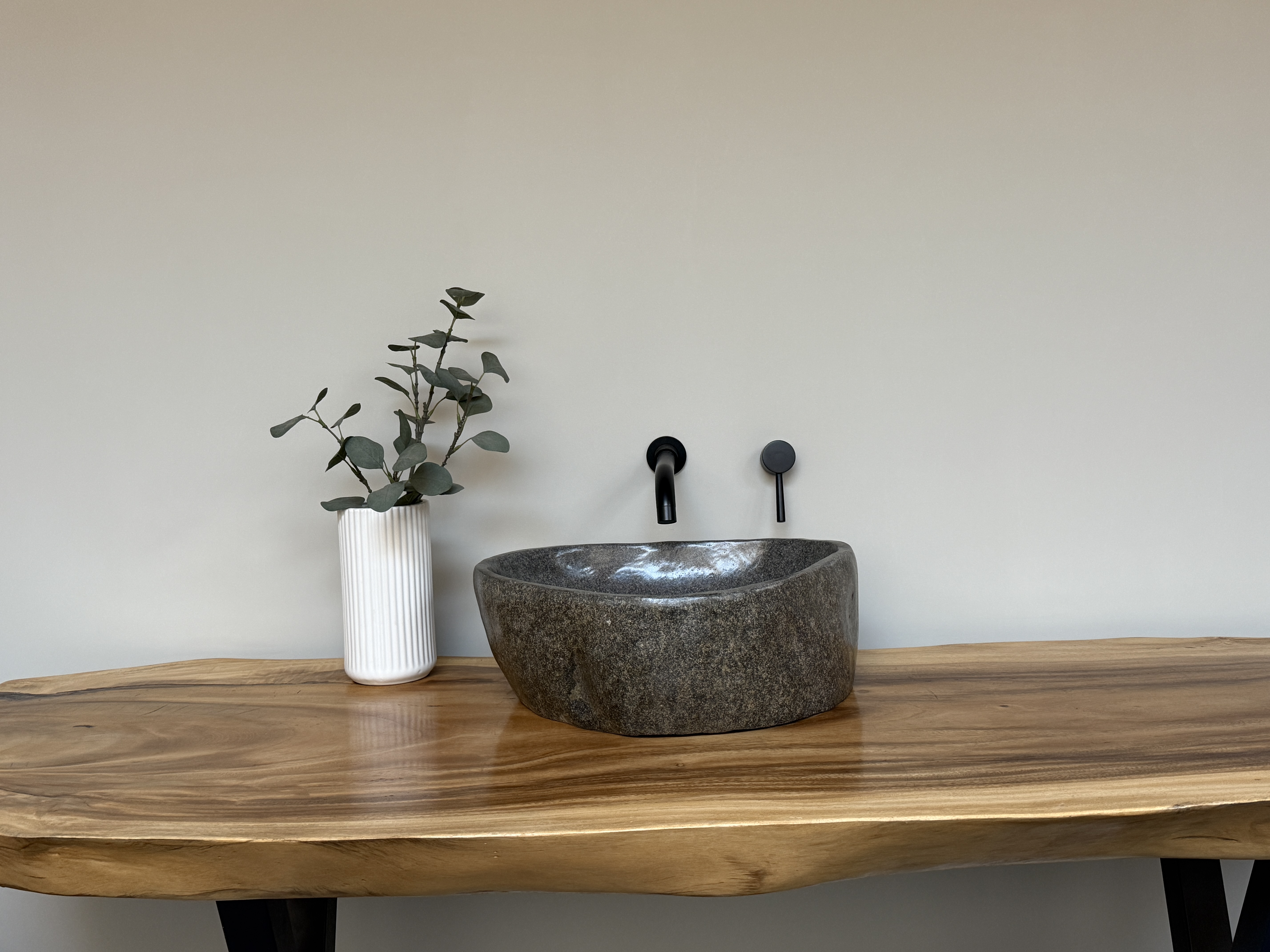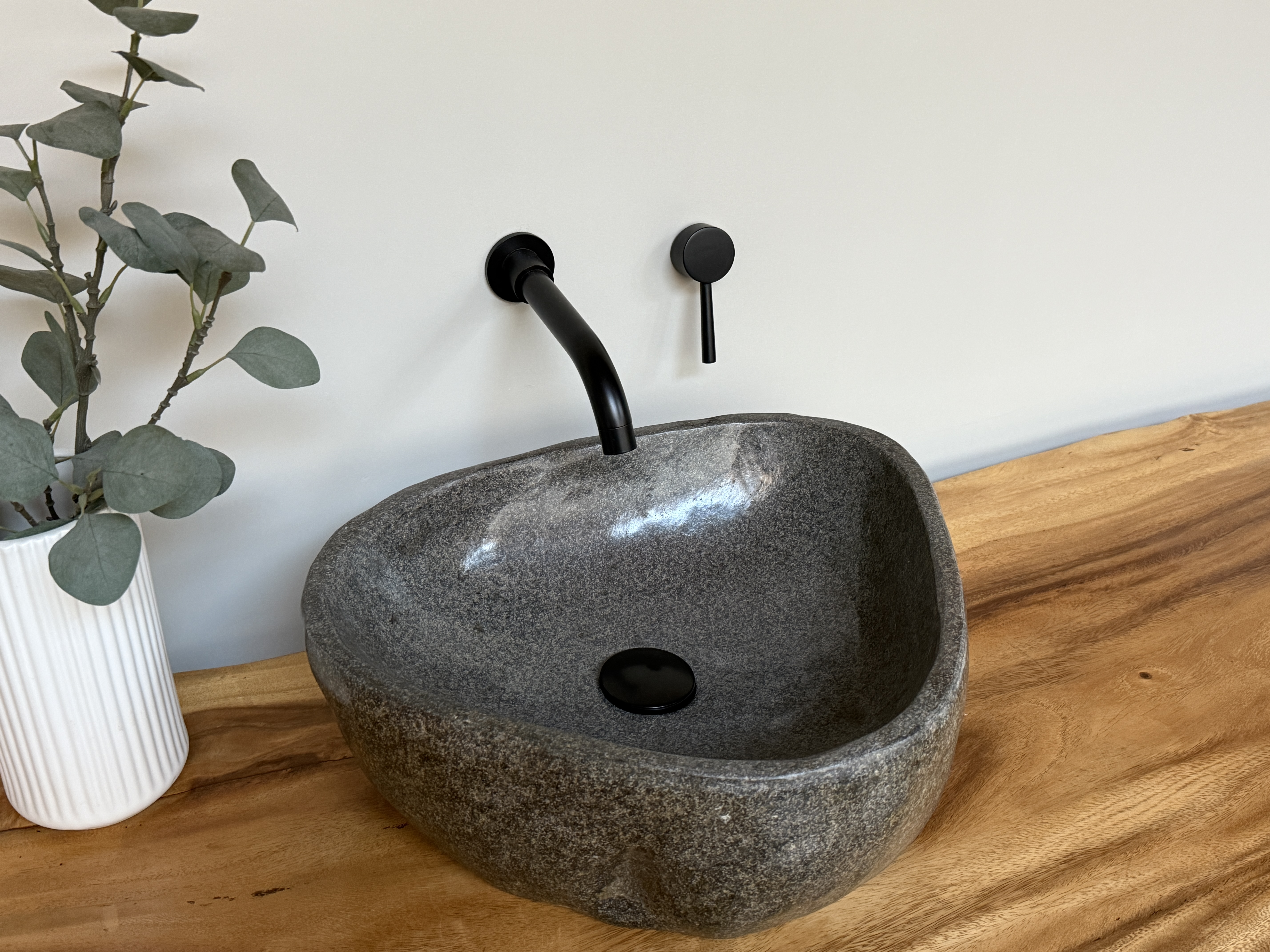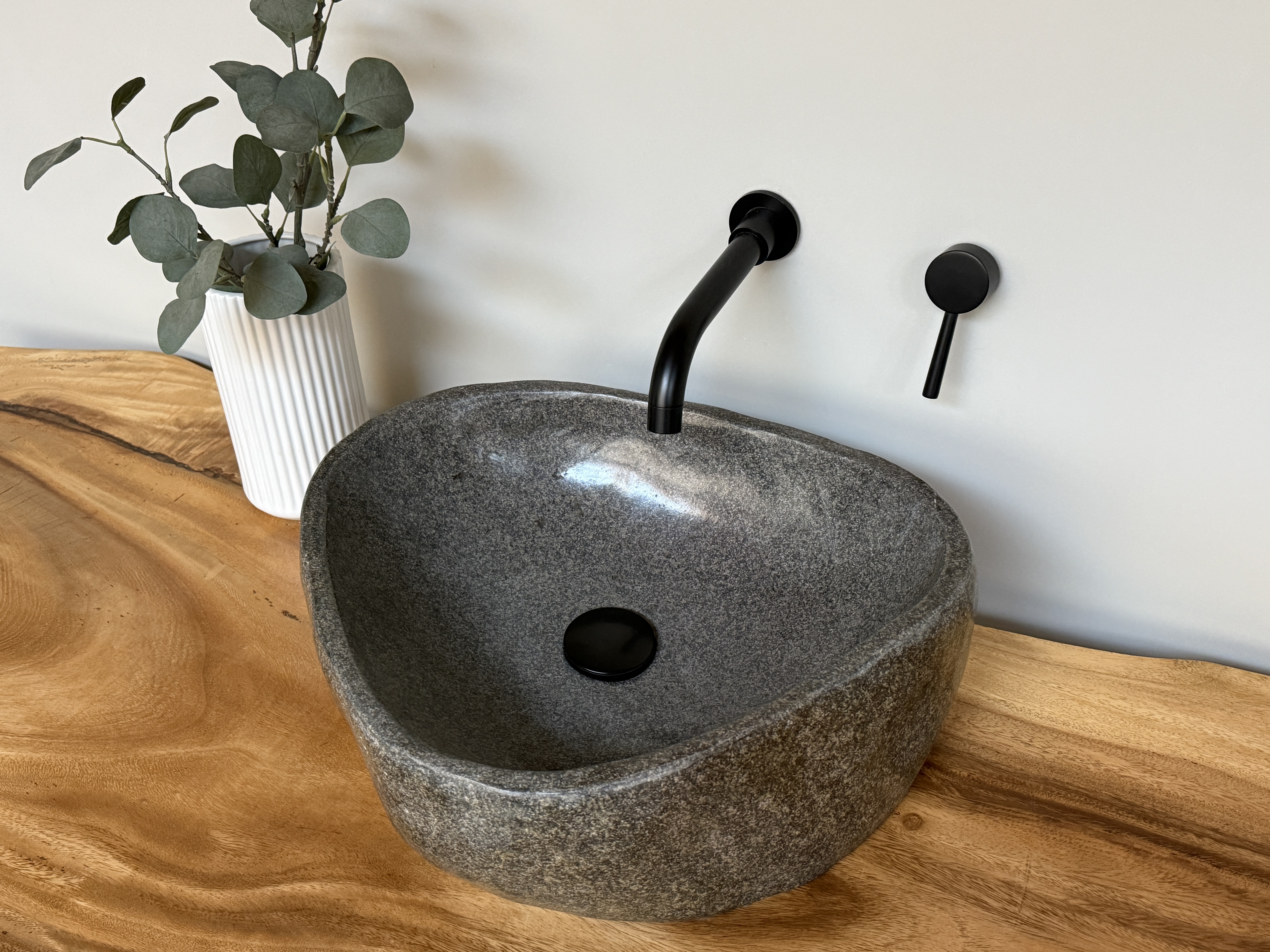 Nach einem Jahrzehnt langen Weg durch die Flüsse Indonesiens, rund gewaschen von der Strömung des Wassers, kommt es nun direkt zu dir in dein Badezimmer. Unterschiede in der Form, Farbgebung, Schattierung und Struktur sind Zeichen für die Individualität eines Waschbeckens aus Flussstein.