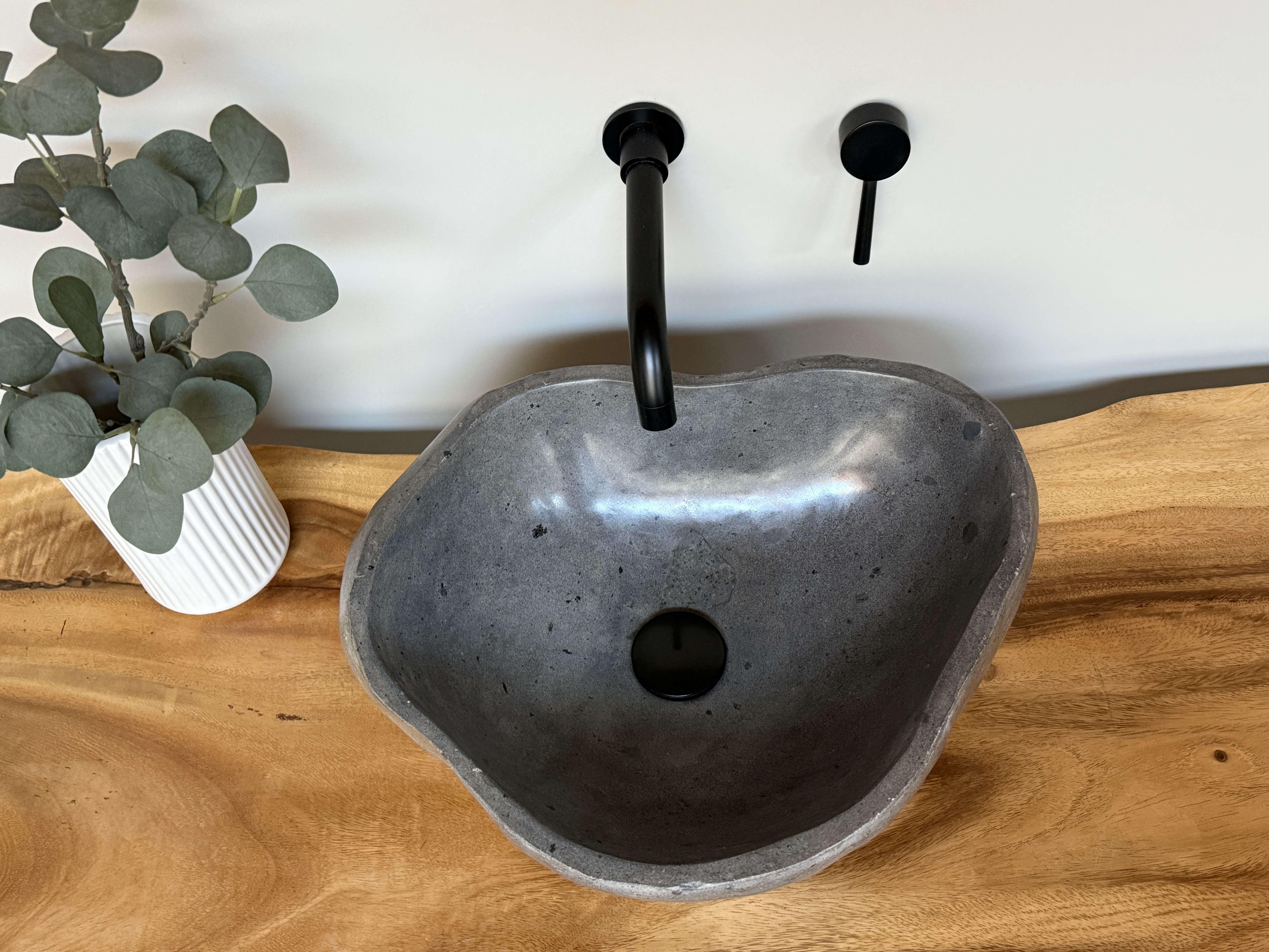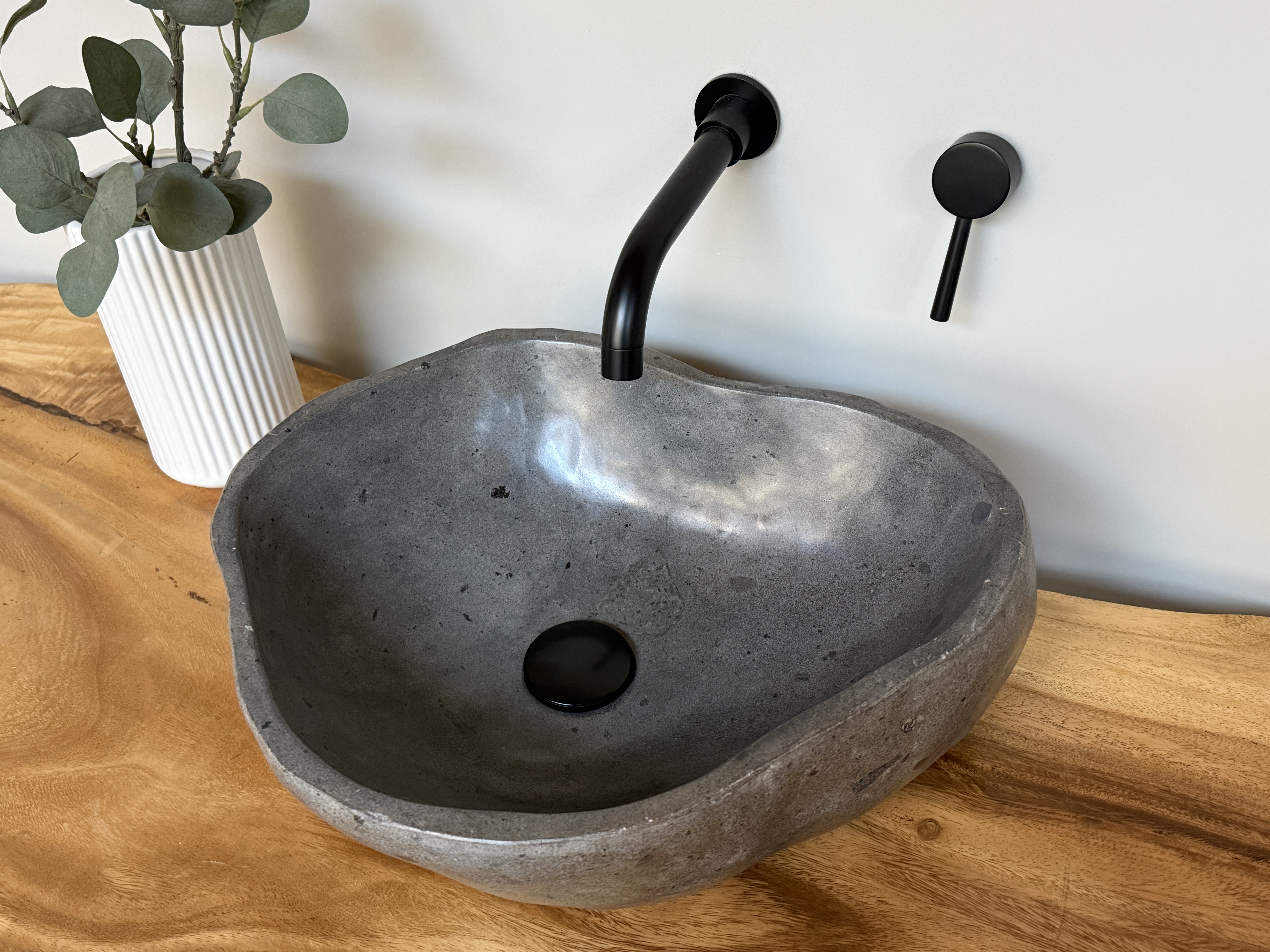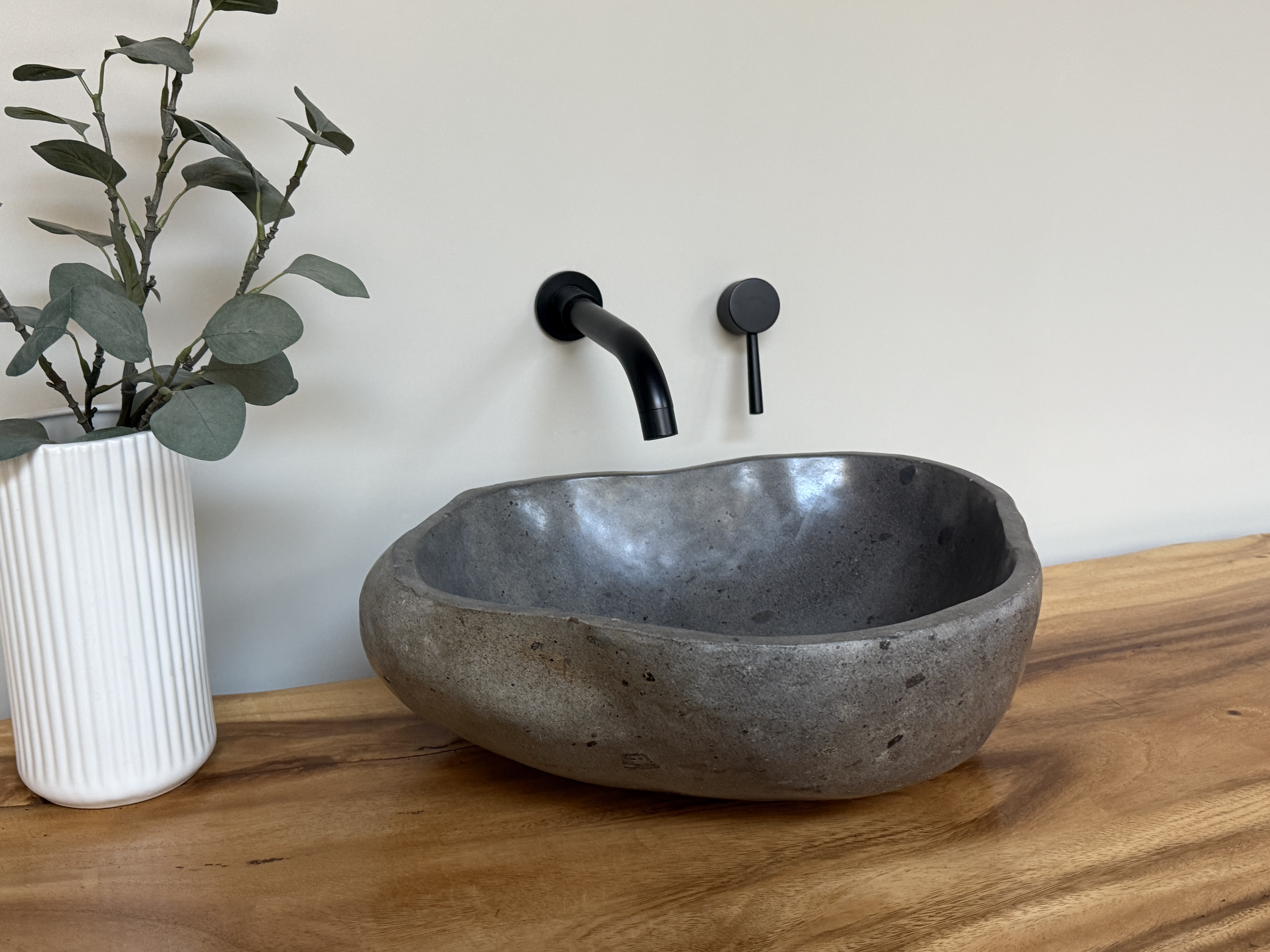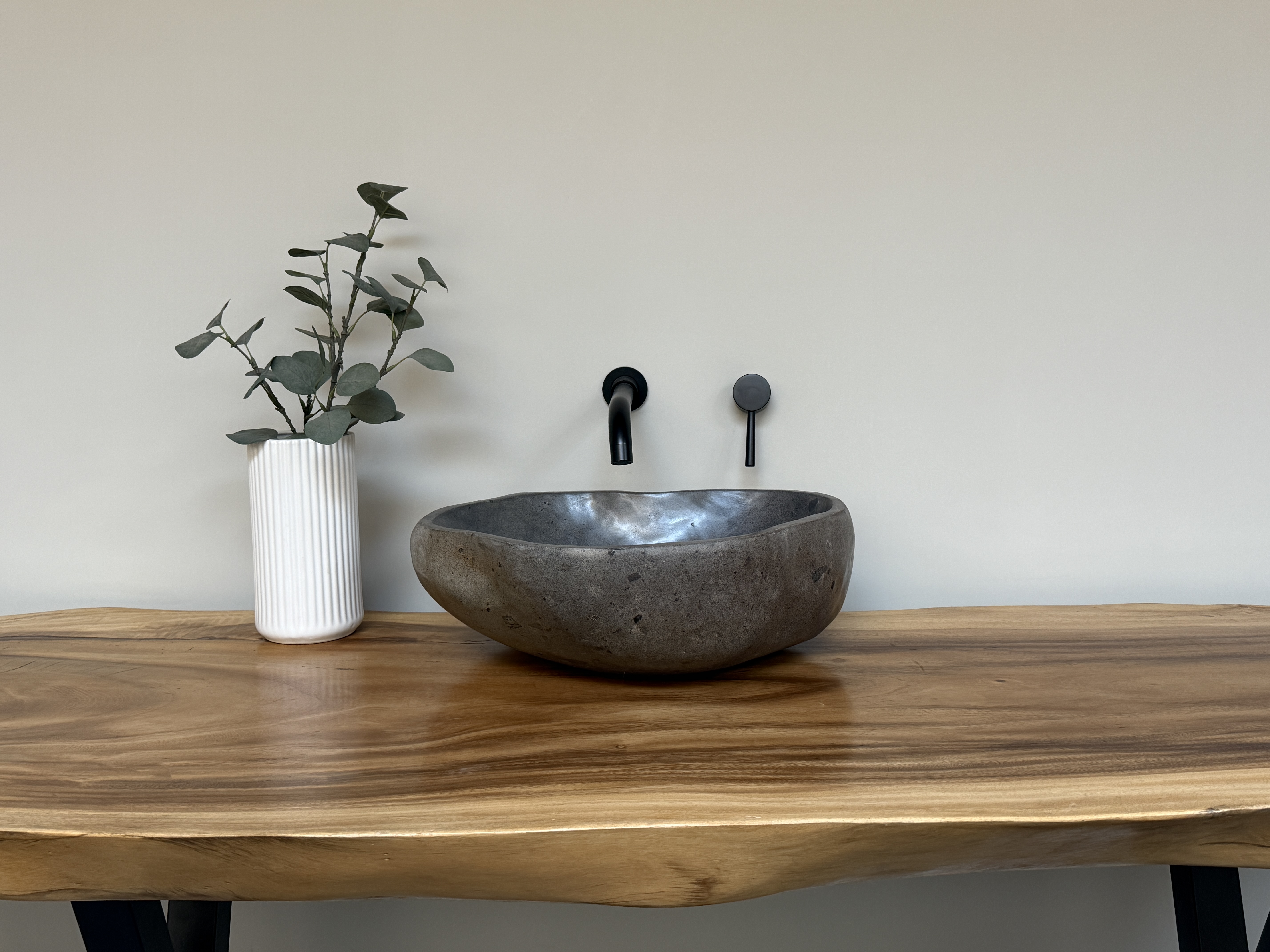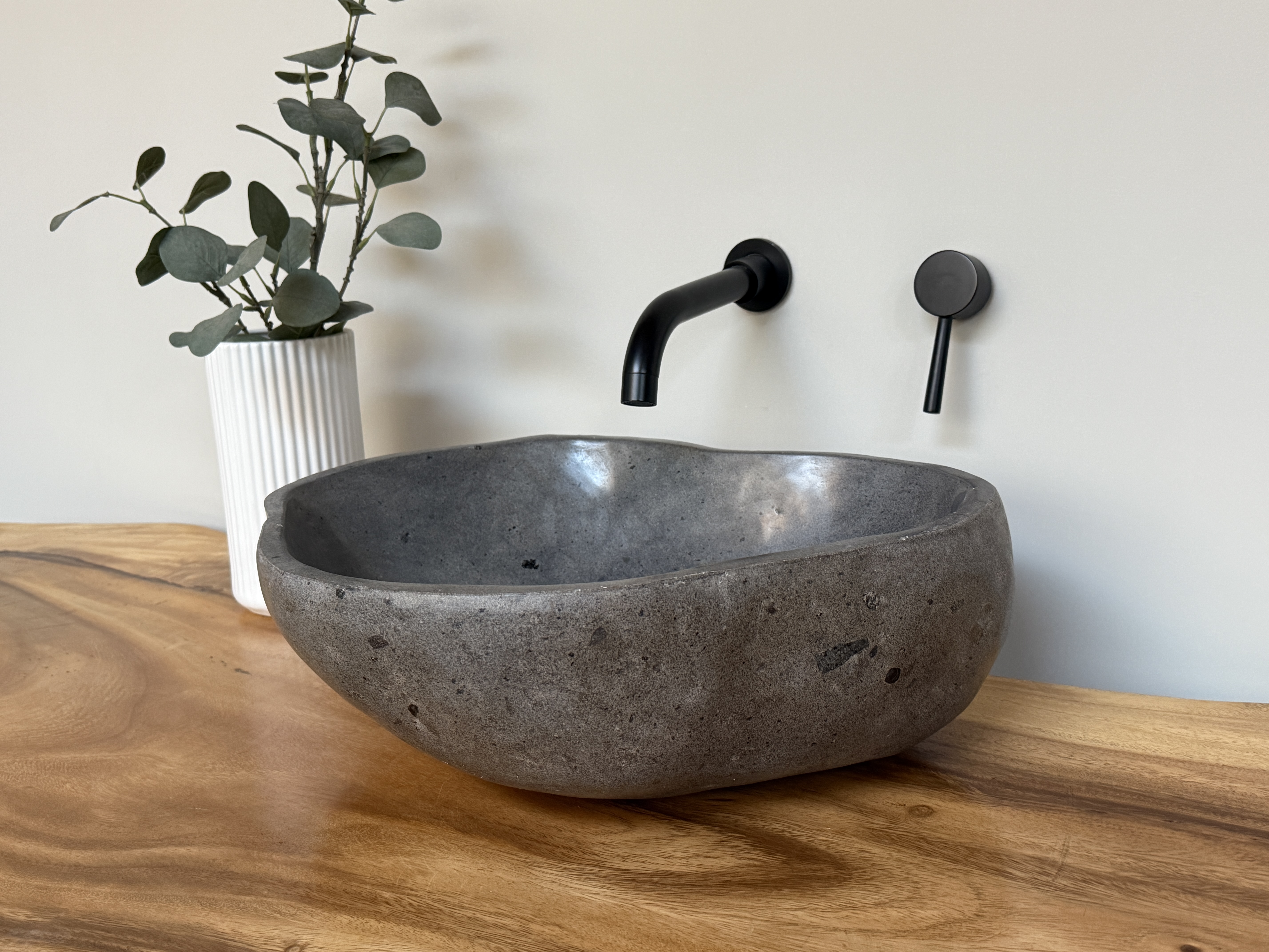 Nach einem Jahrzehnt langen Weg durch die Flüsse Indonesiens, rund gewaschen von der Strömung des Wassers, kommt es nun direkt zu dir in dein Badezimmer. Unterschiede in der Form, Farbgebung, Schattierung und Struktur sind Zeichen für die Individualität eines Waschbeckens aus Flussstein.